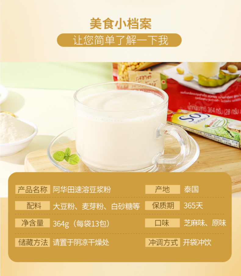 泰国阿华田豆浆(原味)/芝麻味/364g(28g*13)025758/025759家用小袋装即食