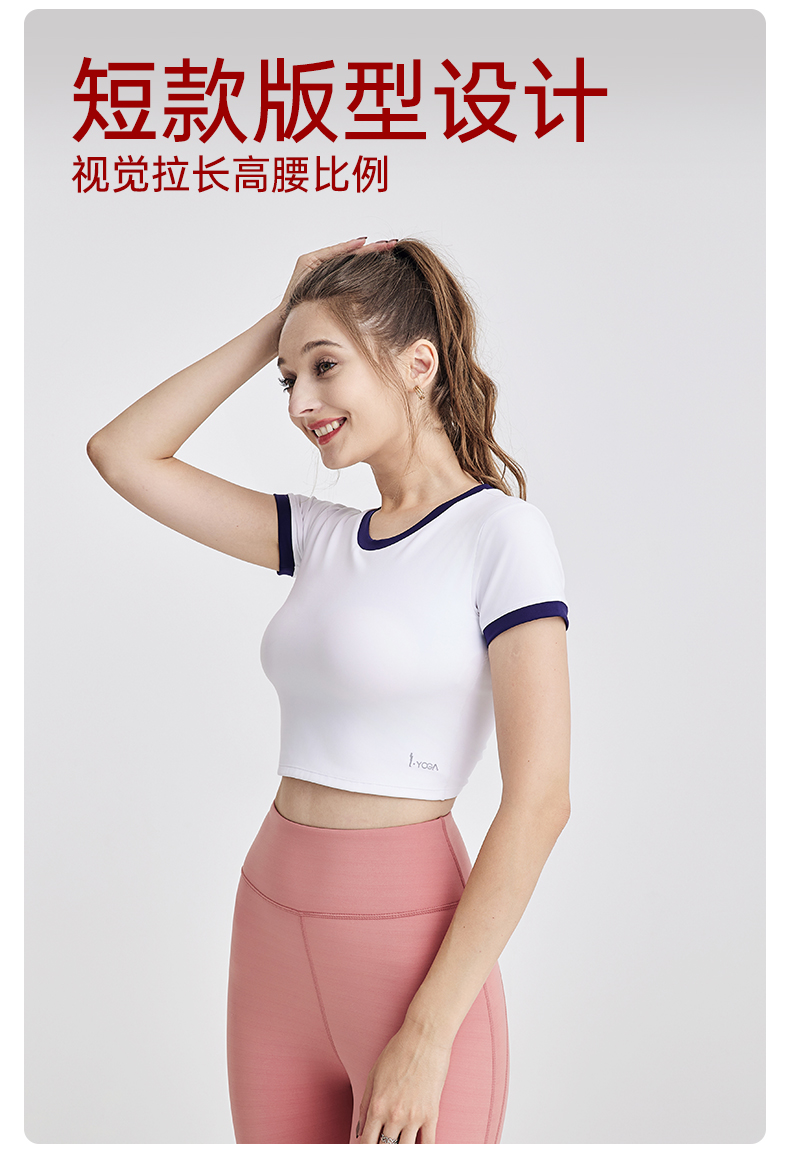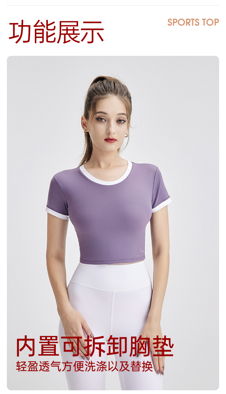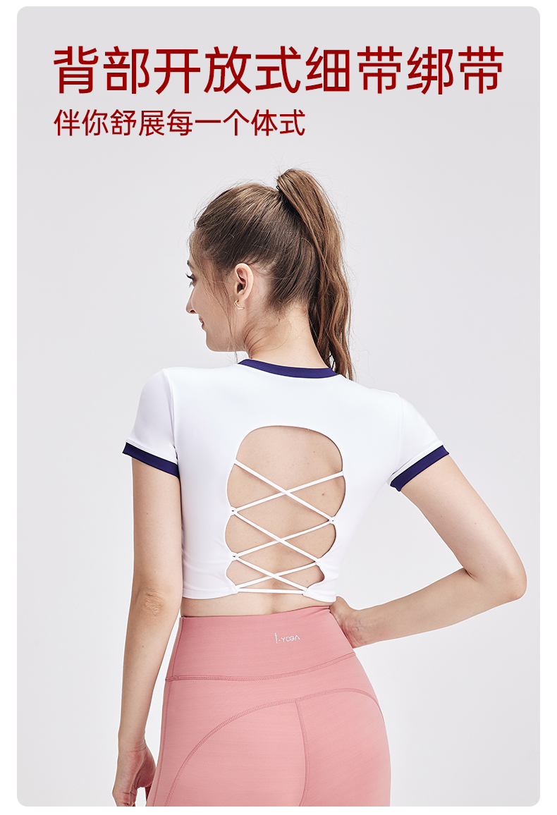 IYOGA短款绑带设计款瑜伽短袖带垫垫T061