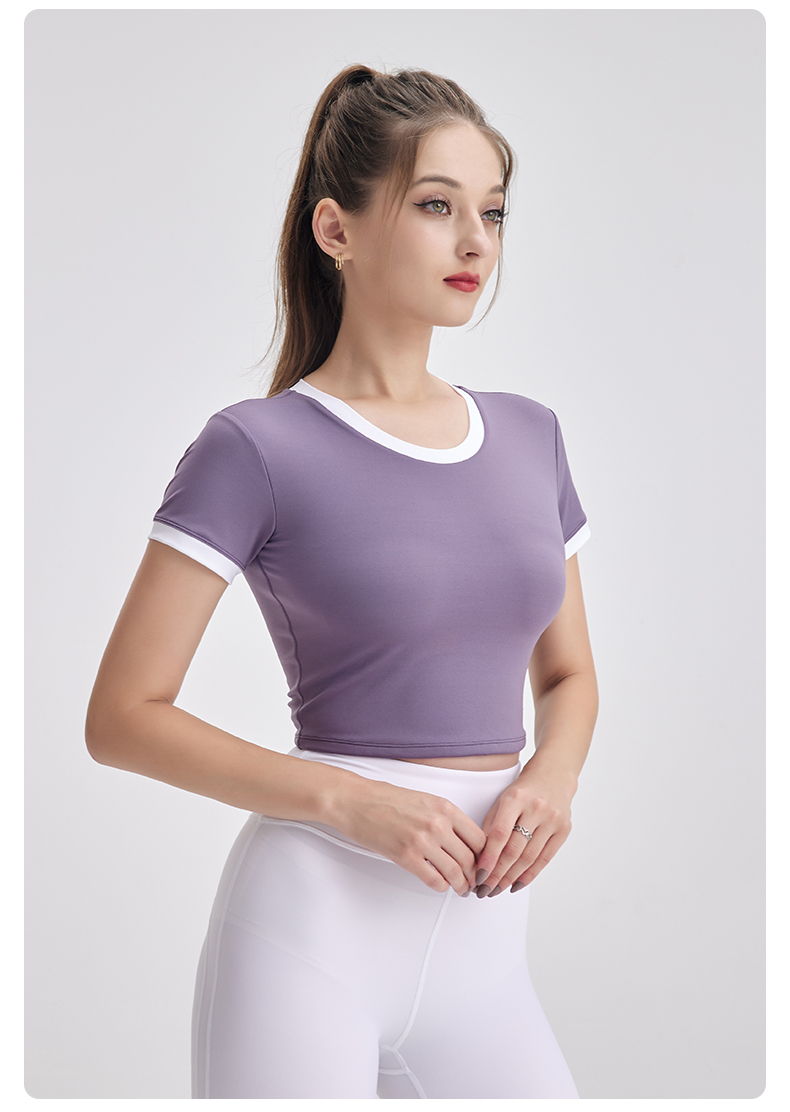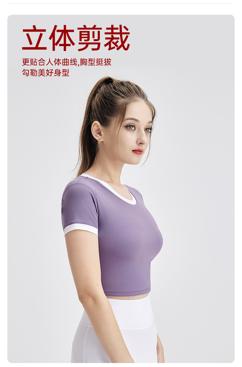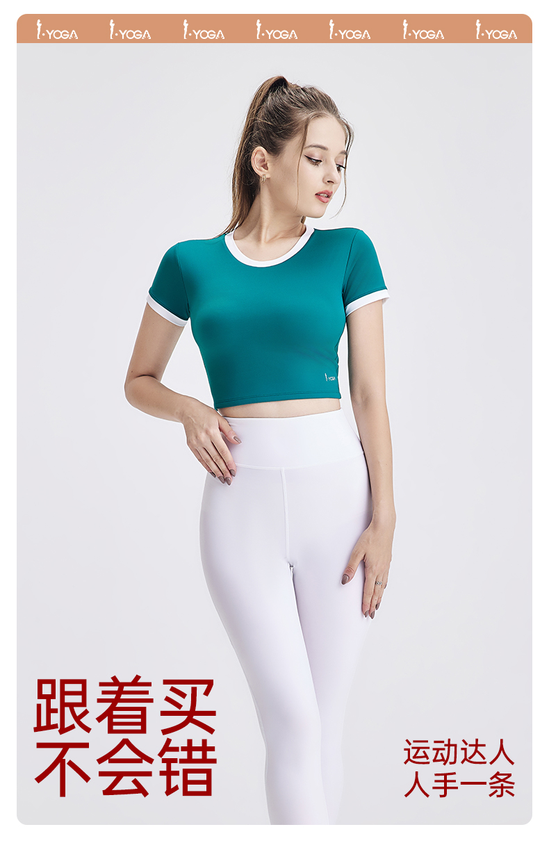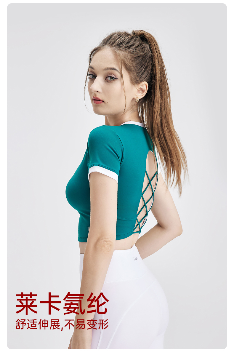 IYOGA短款绑带设计款瑜伽短袖带垫垫T061