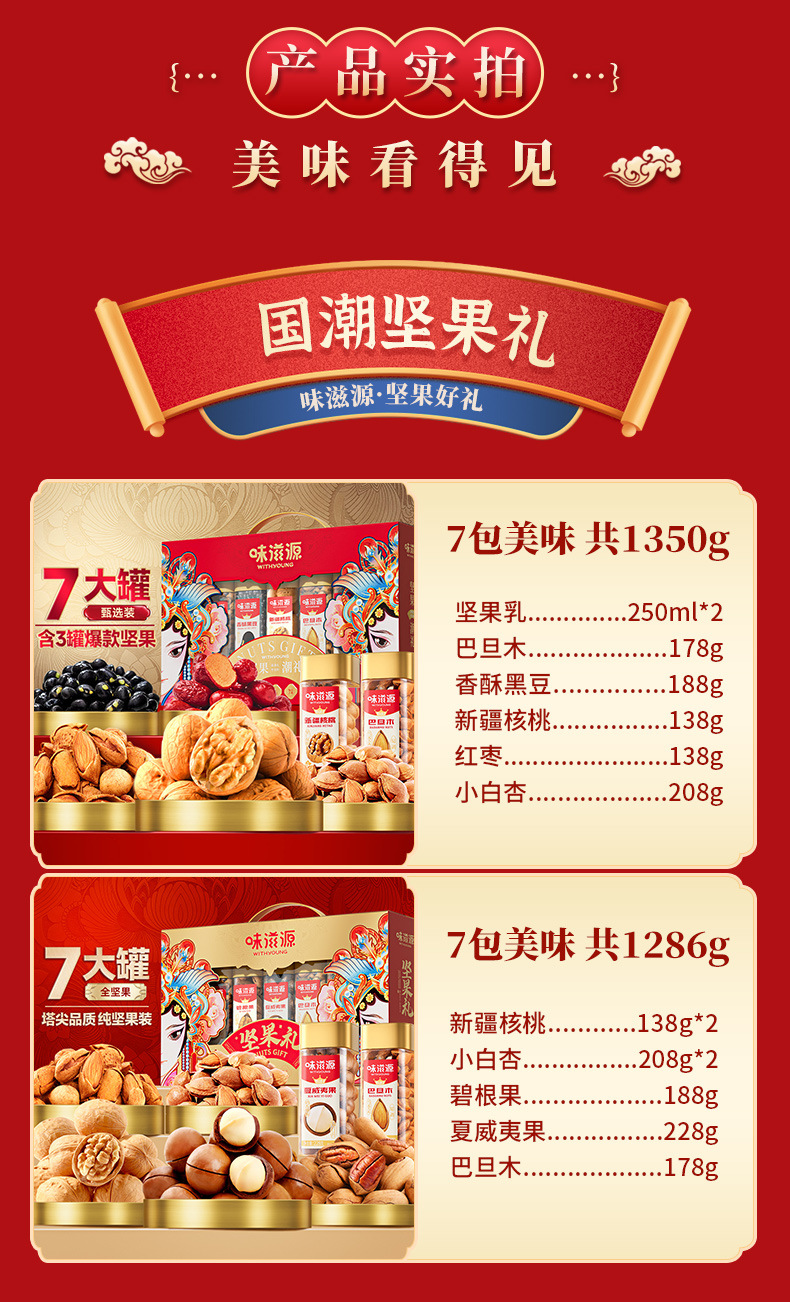【甄选坚果礼盒!多种美味】好吃不腻,中秋新年味滋源坚果礼盒年货夏威夷果独立包装零食过年送人走亲戚。rb