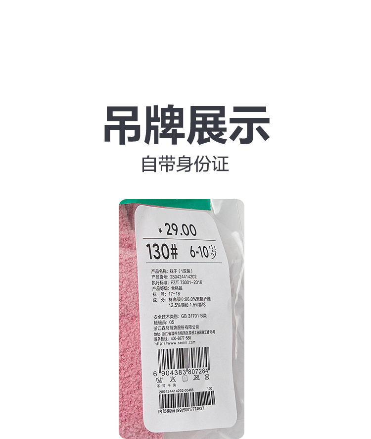 森马儿童童装袜子年新款男童女童春季保暖毛绒中筒袜可爱卡通