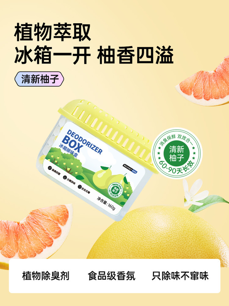 两款香味可选 ✅绿茶香味 ✅柚子香味 既能吸附除臭去异味 又能抑jun长效循环保鲜~