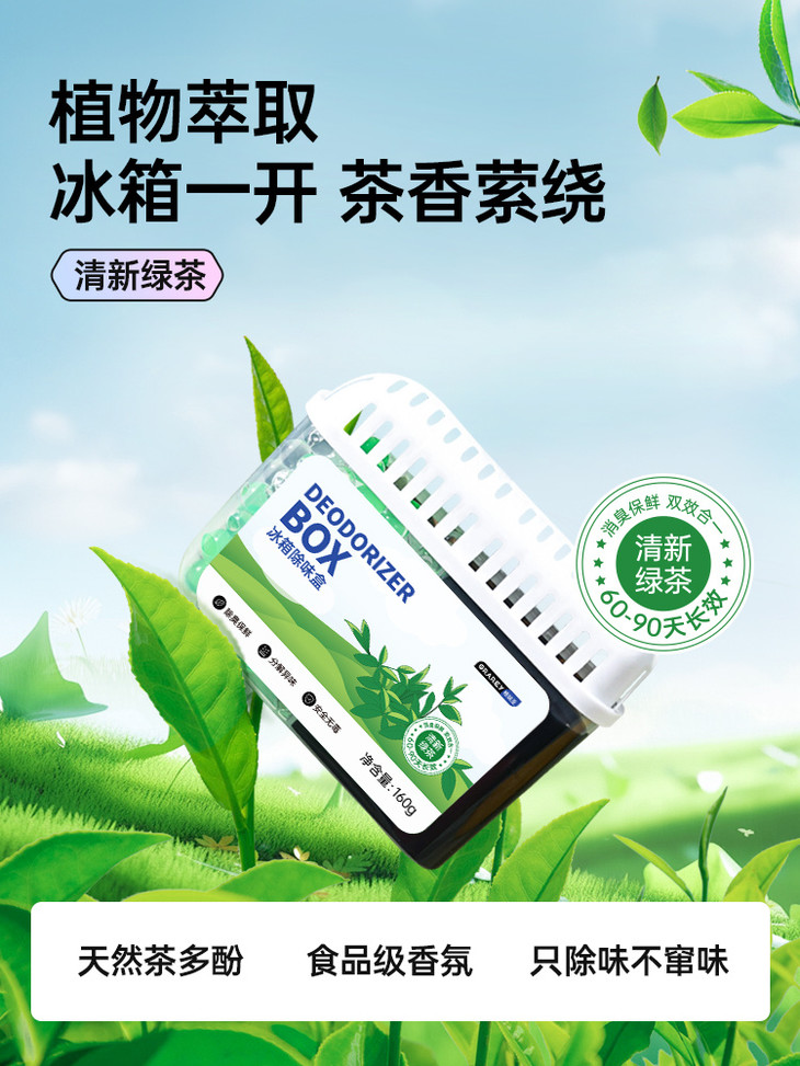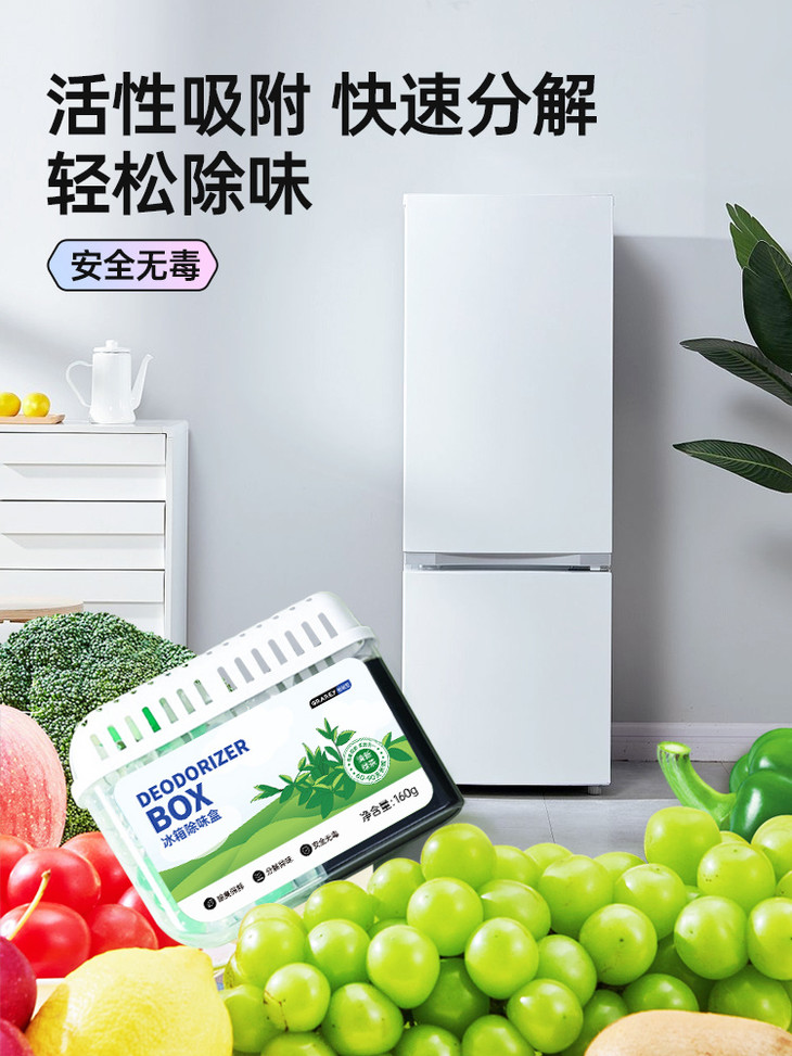植物提取的除味成分 无任何添加 不仅仅是简单的掩盖异味 而是根源分解冰箱异味,减少臭味串味 延长食物保鲜期