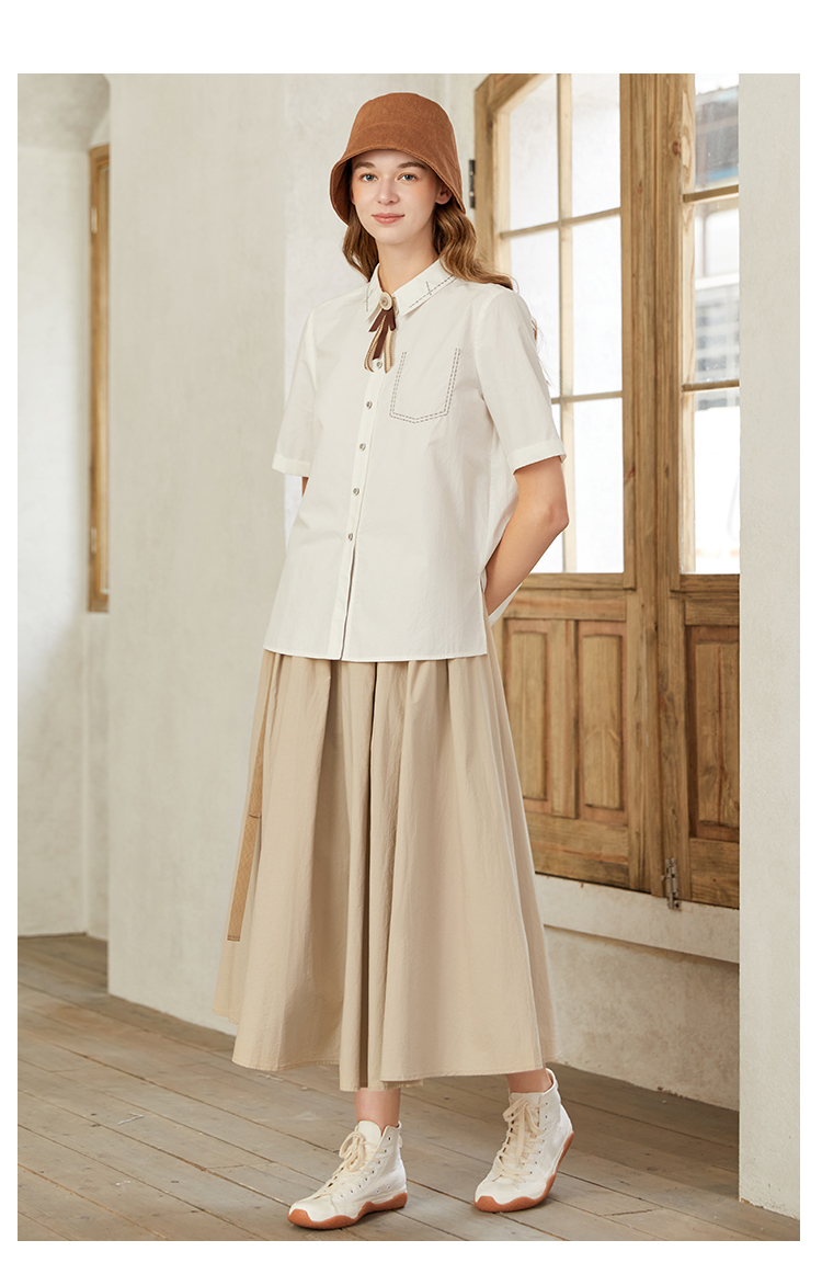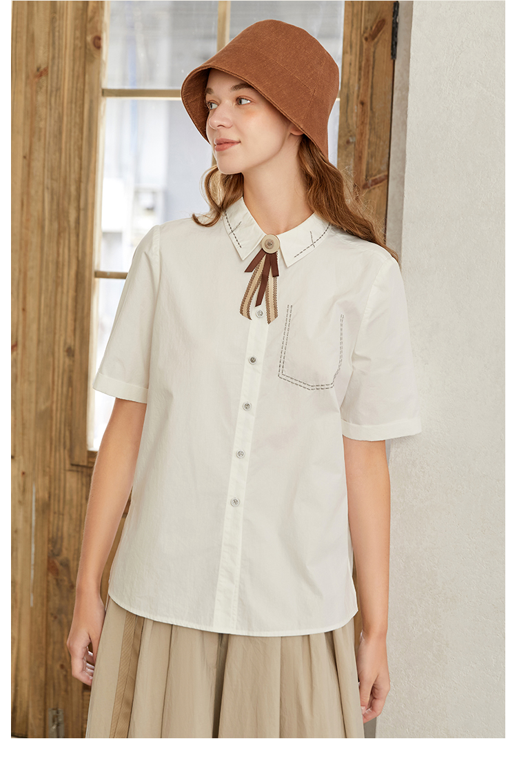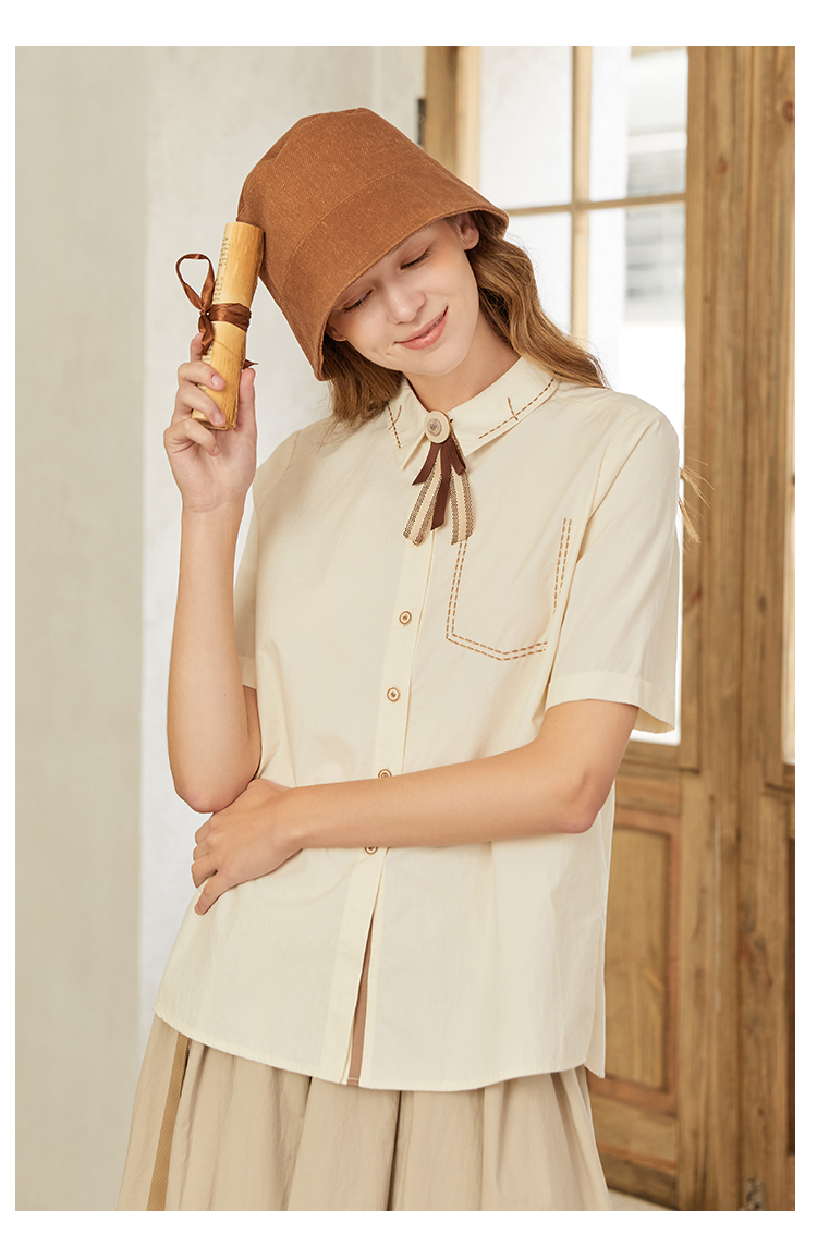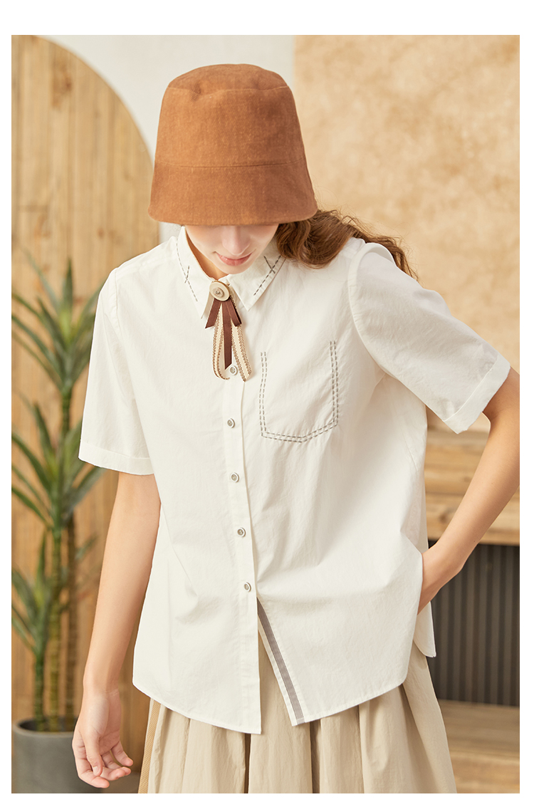 famecoco范可儿甜飒风女装衬衫夏季轻奢小众炸街上衣纯棉通勤F223BA005