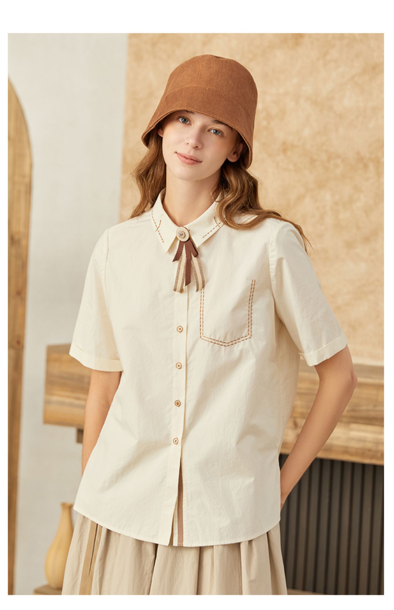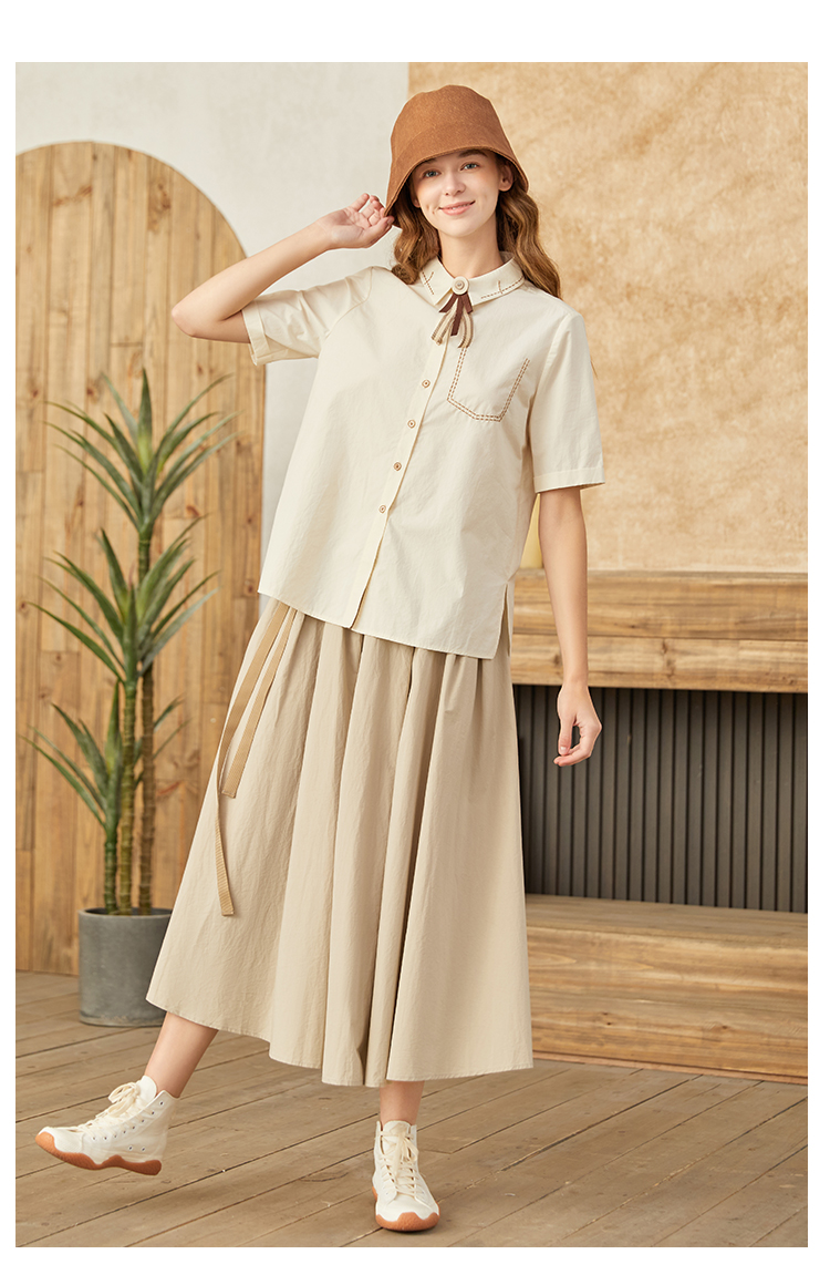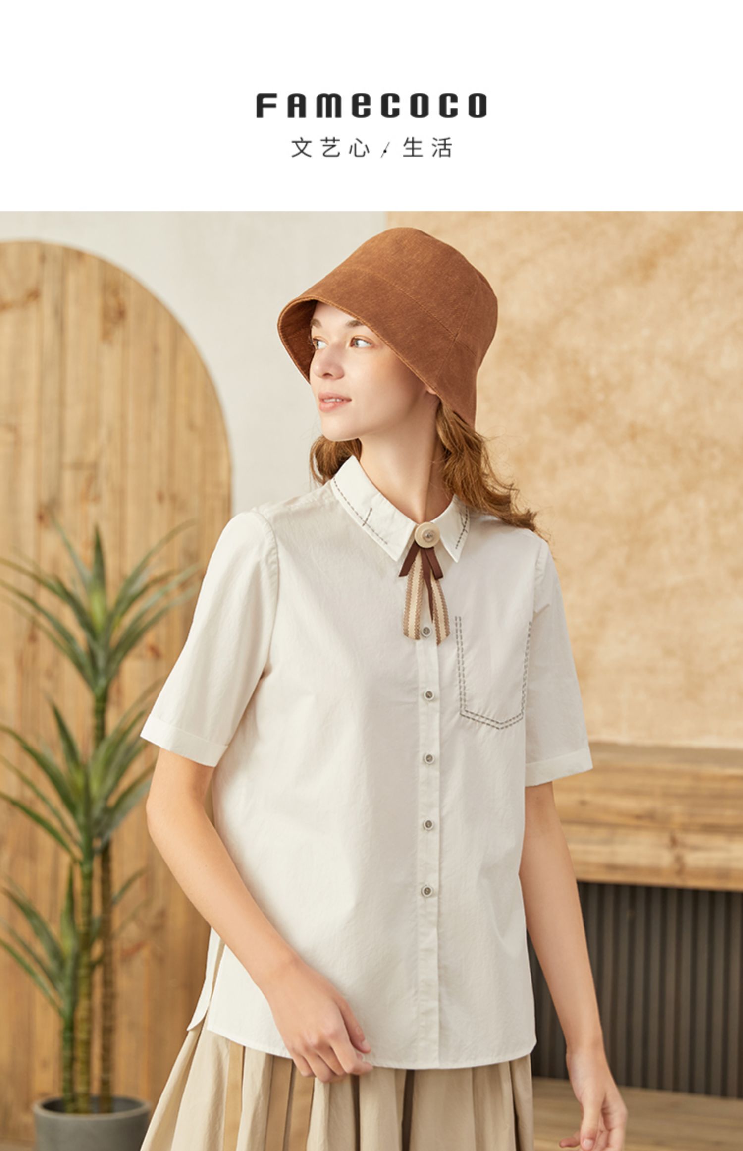 famecoco范可儿甜飒风女装衬衫夏季轻奢小众炸街上衣纯棉通勤F223BA005
