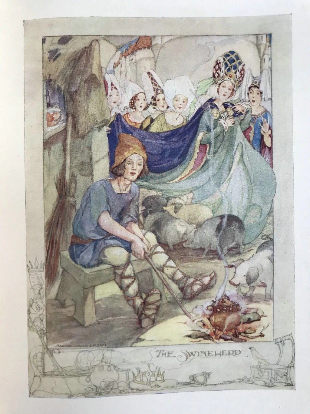 约1920年代 安徒生童话 安妮·安德森8幅彩色手工贴图与大量黑白插图 布面精装16开