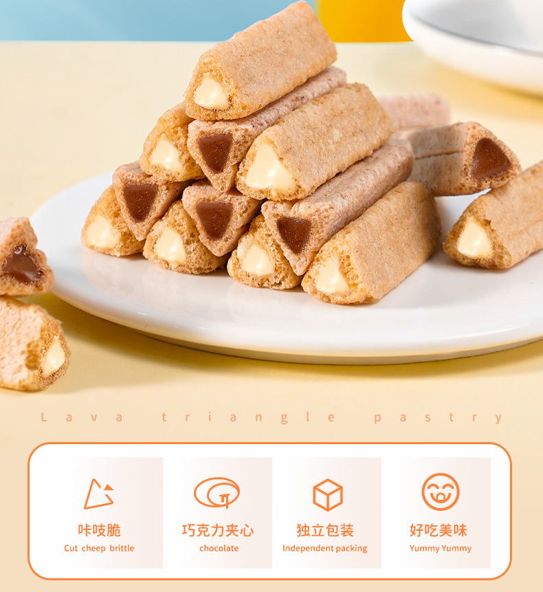 【幸福的味道就在咔嚓脆!熔岩三角酥】网红巧克力牛奶夹心威化饼干,甜而不腻 酥脆可口,办公休闲零食小吃年货Y