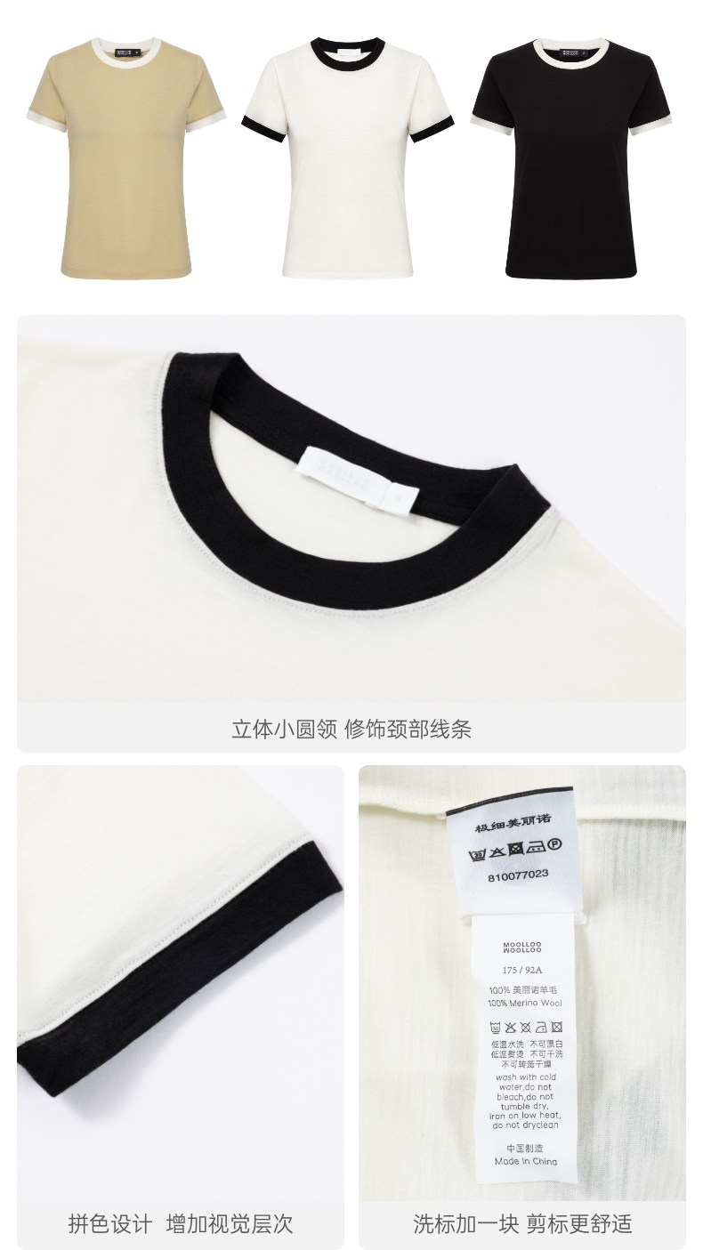 moolloo woolloo新一代夏季呼吸T恤女款圆领短袖