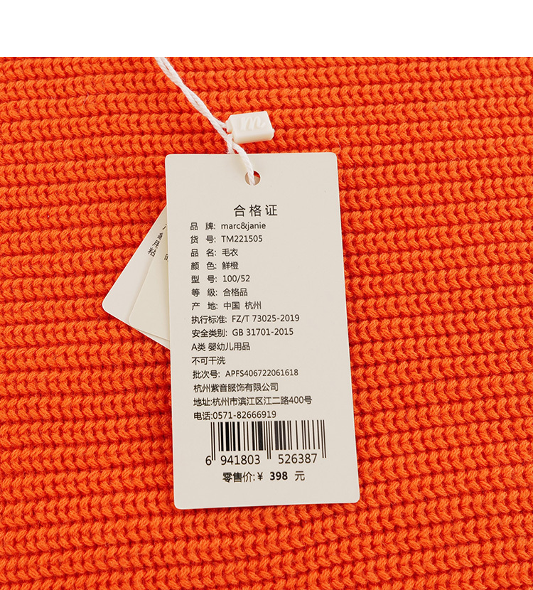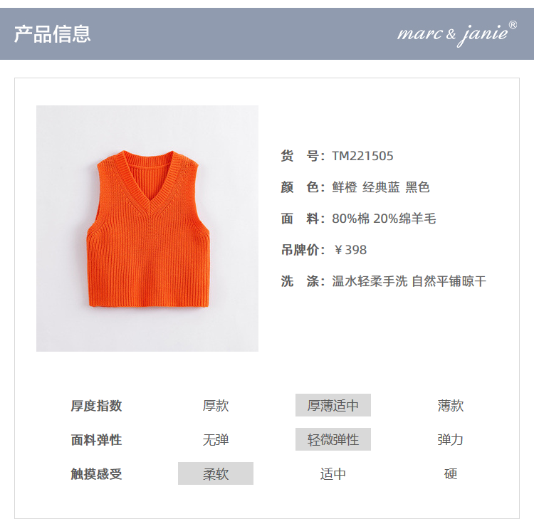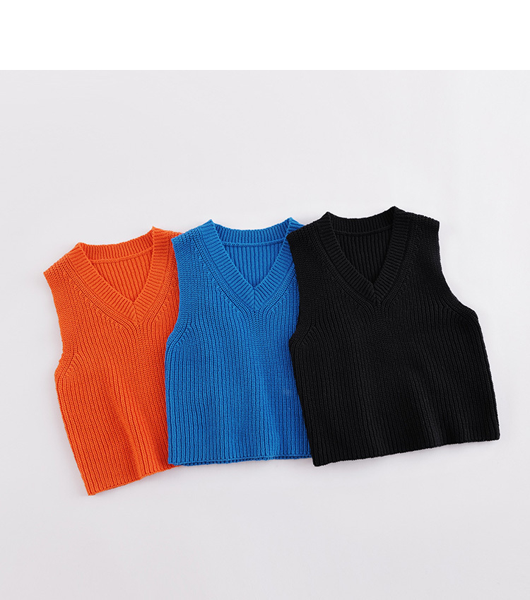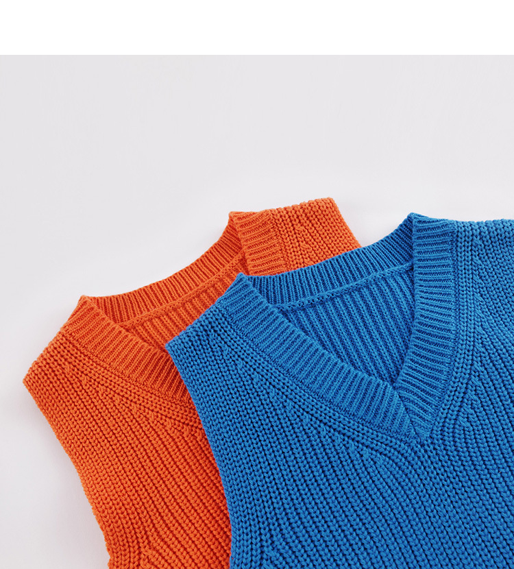 马克珍妮秋装新款 男女童棉羊毛V领针织马甲221505