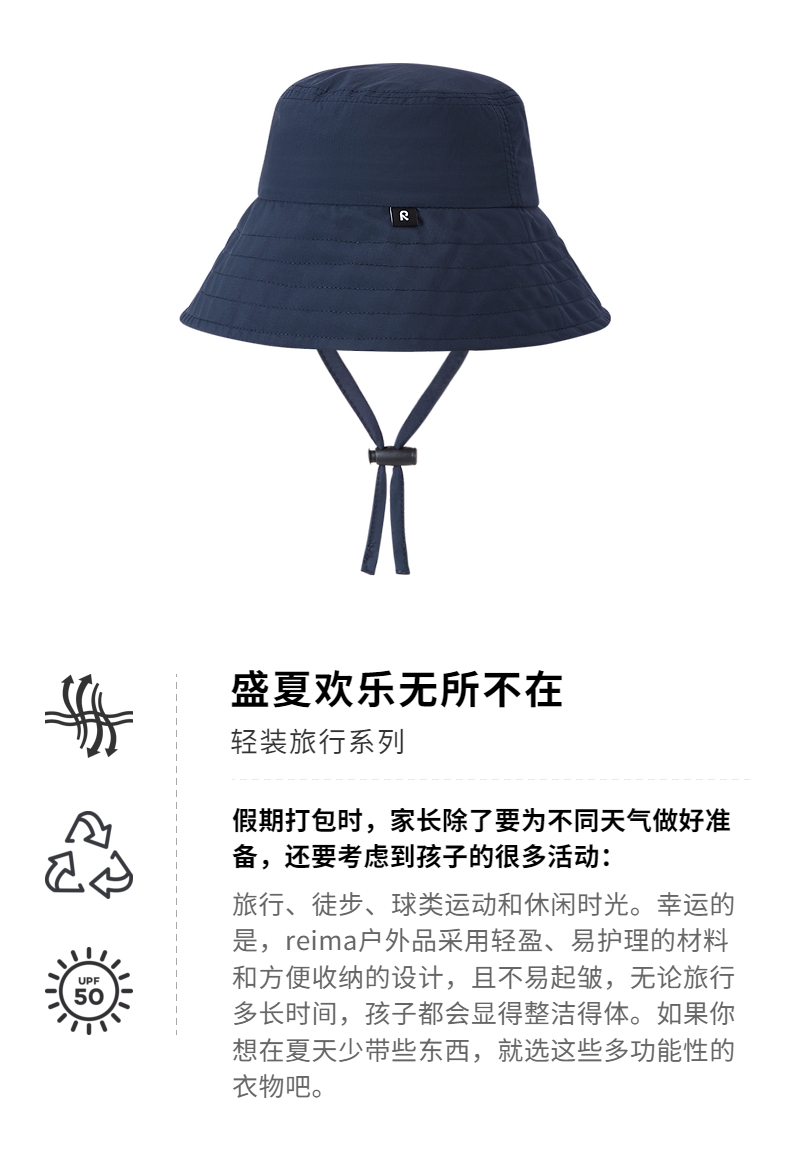reima男女儿童大童帽子春夏新款户外休闲防晒遮阳帽防紫外线
