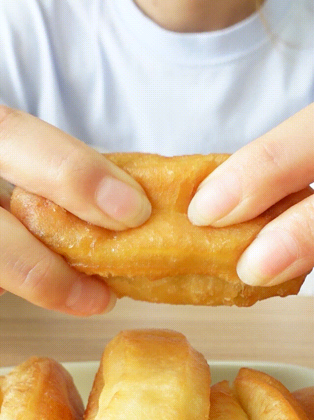 刚炸出的油条是最好吃的,牙齿一碰酥脆的外皮,马上听到让人心情愉悦的嘎吱声。