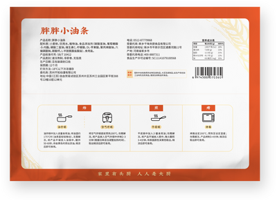 胖胖小油条:小麦粉、饮用水、植物油、食品添加剂(碳酸氢钠、葡萄糖酸-δ-内脂、磷酸二氢钠、维生素C、柠檬酸、DL-苹果酸、聚丙烯酸钠、六偏磷酸钠、碳酸钙、L-半胱氨酸盐酸盐)、食用盐