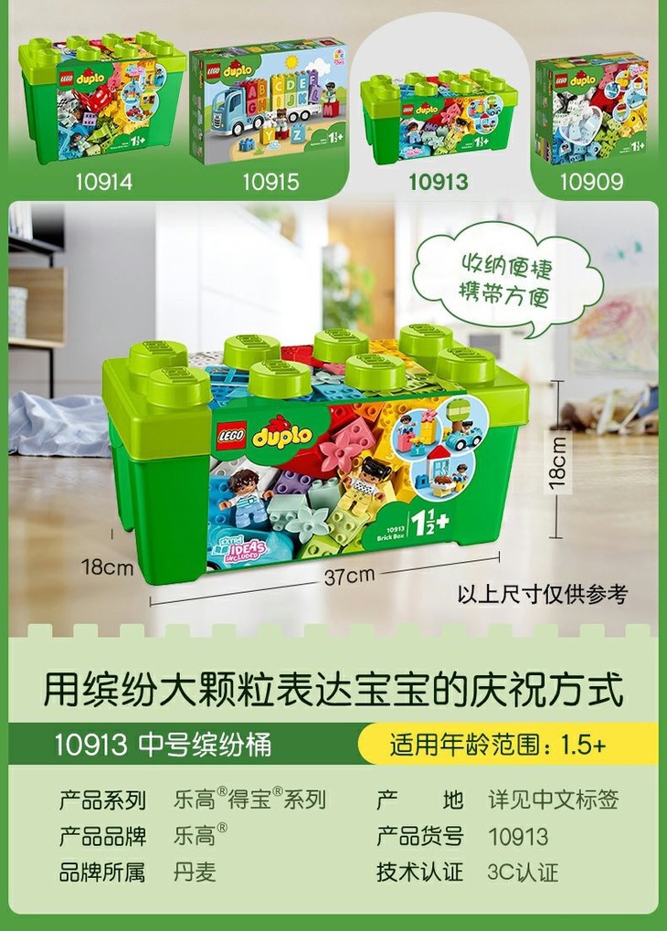 2020新品乐高积木得宝系列10913中号缤纷桶