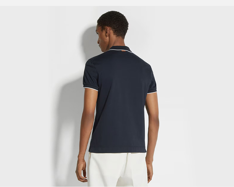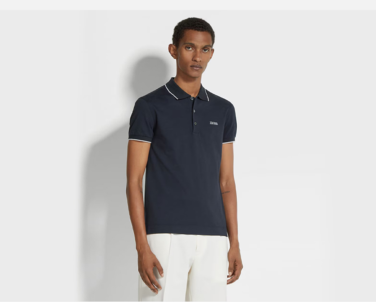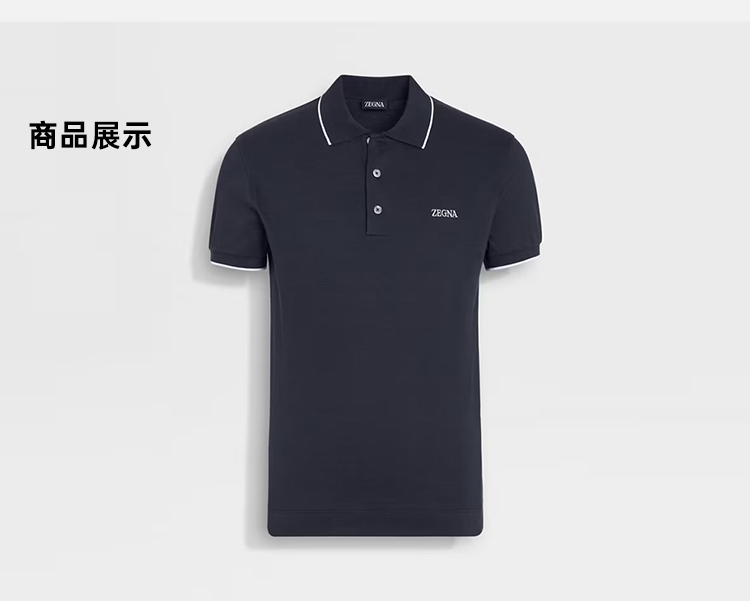 【二】ZEGNA 杰尼亚 男士字母徽标刺绣弹力棉质短袖polo衫 蓝色 E7358A5 B746 B09