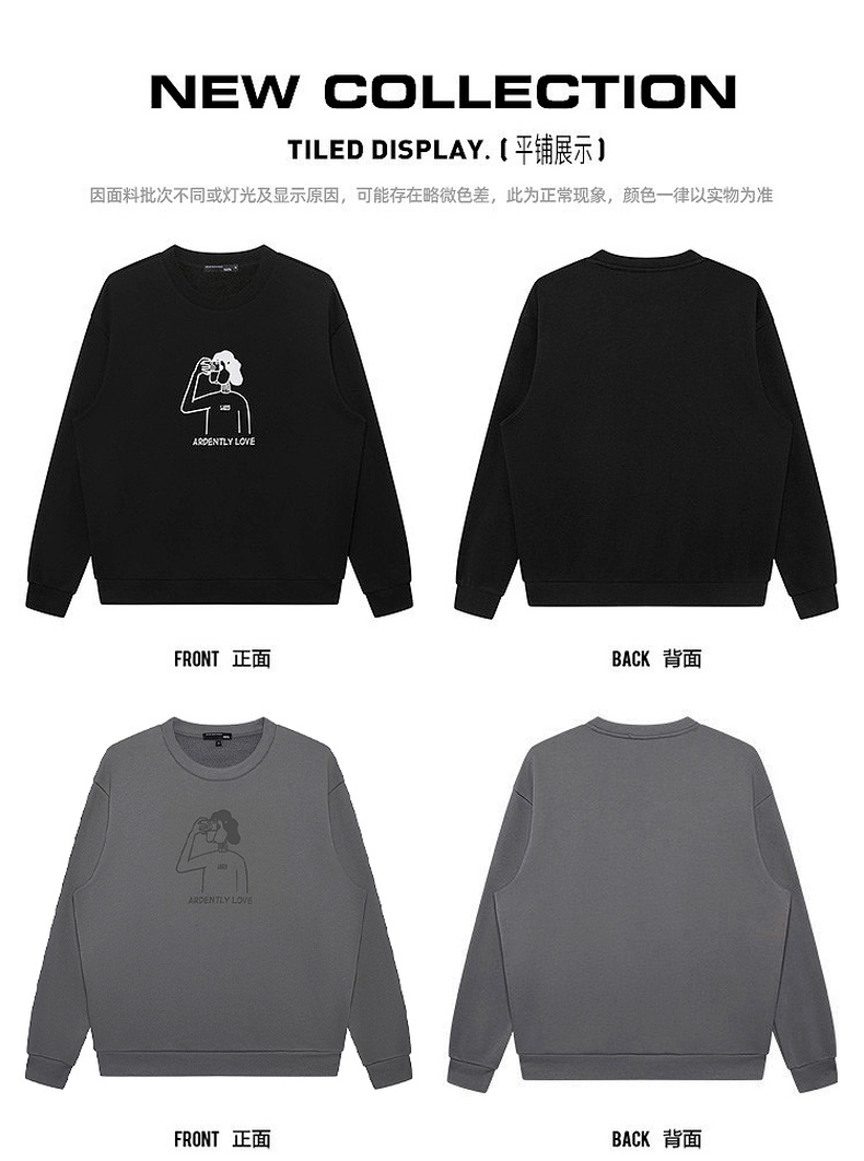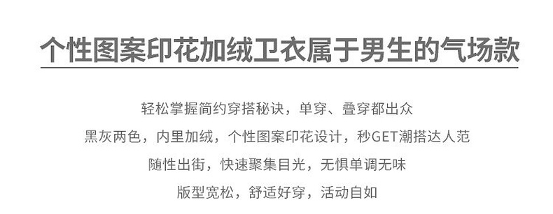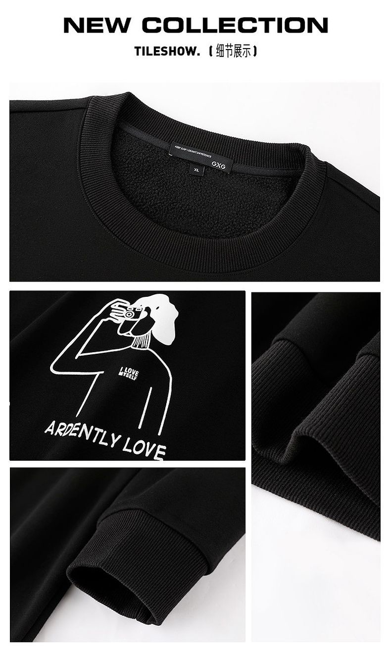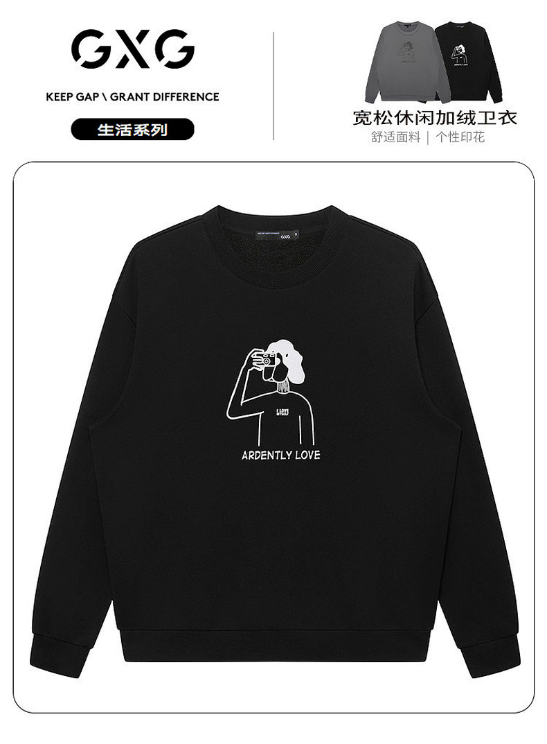 GXG男装冬季对镜自拍潮流印花情侣款圆领加绒保暖卫衣K&C