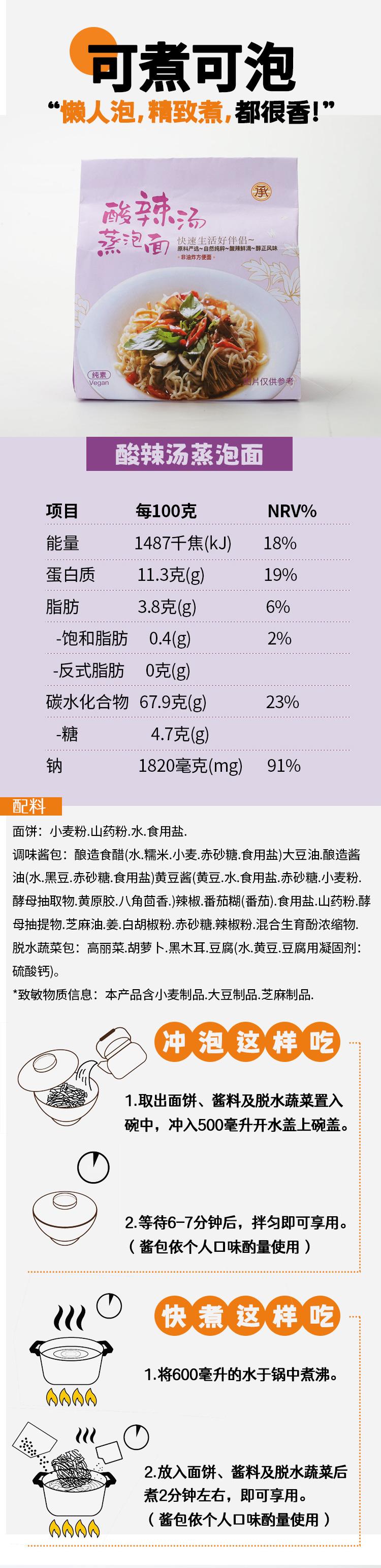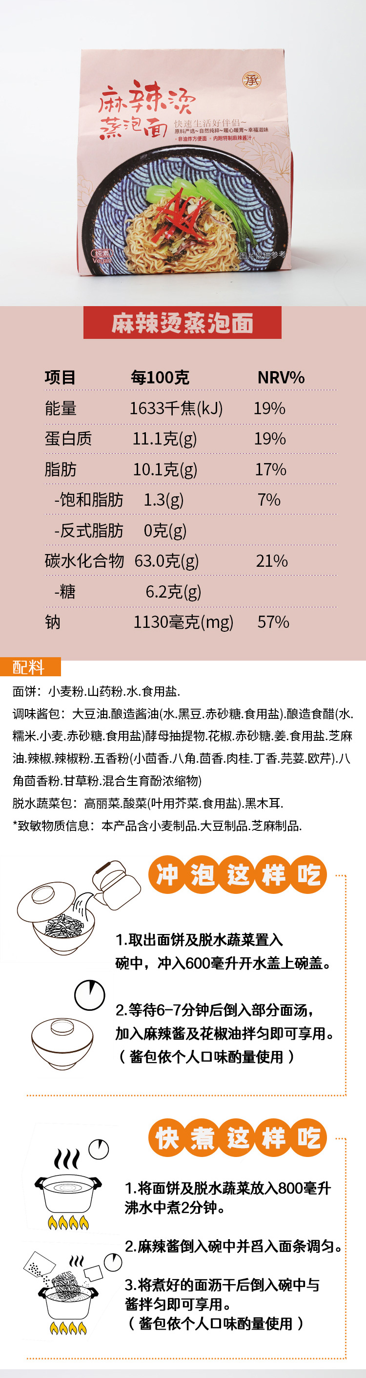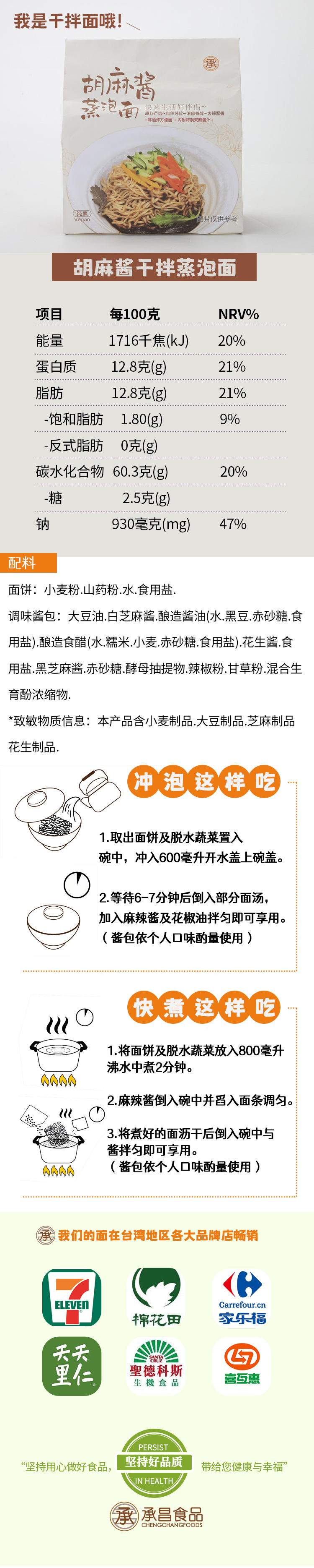 承昌 纯素蒸泡面 420g/袋