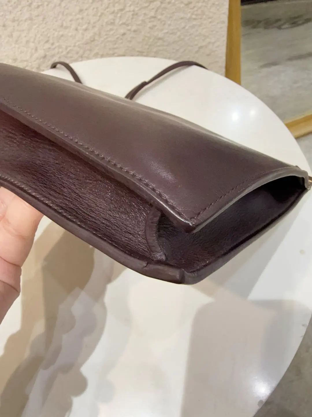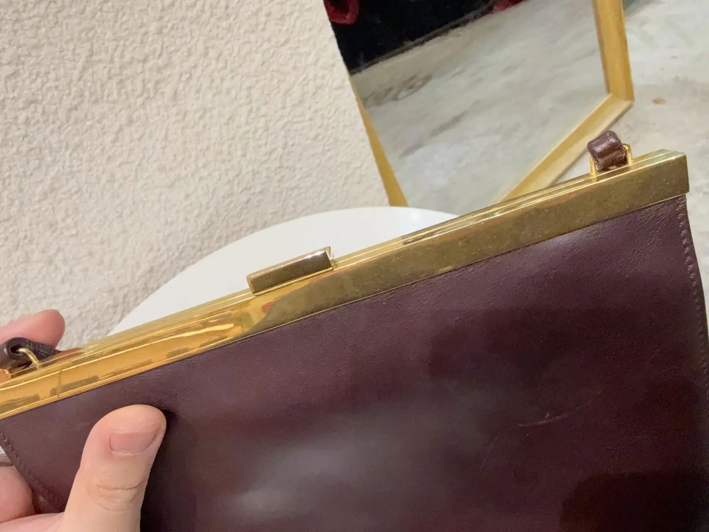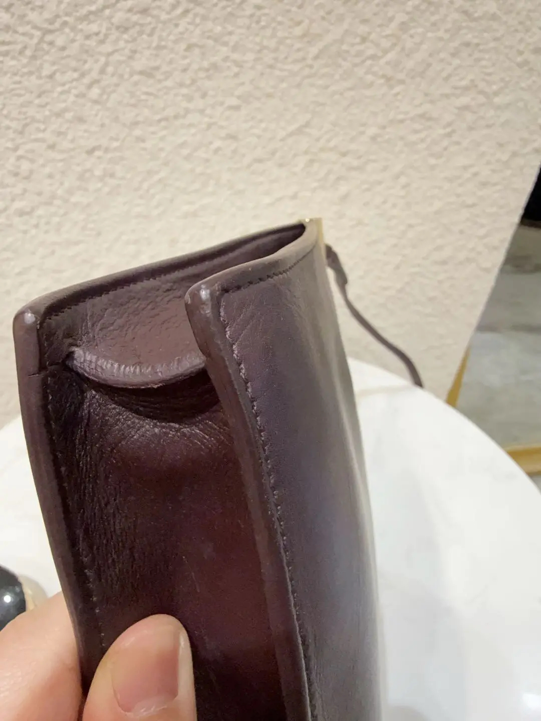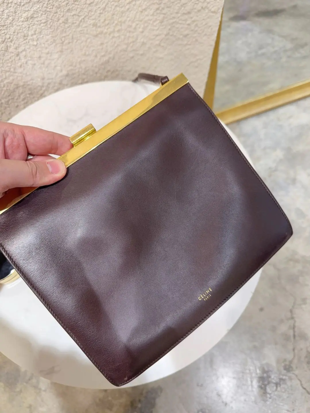 【商品详情】正品二手 CELINE mini clasp 酒红色 牛皮 夹子包👜 93新 22*20。包身正常使用感。简约高级 致敬经典