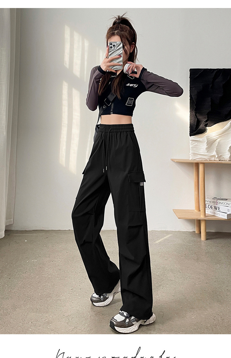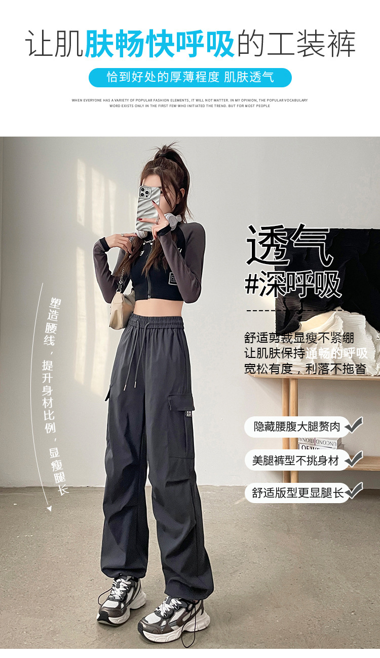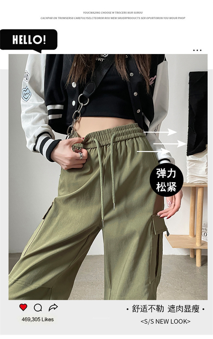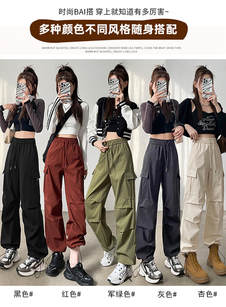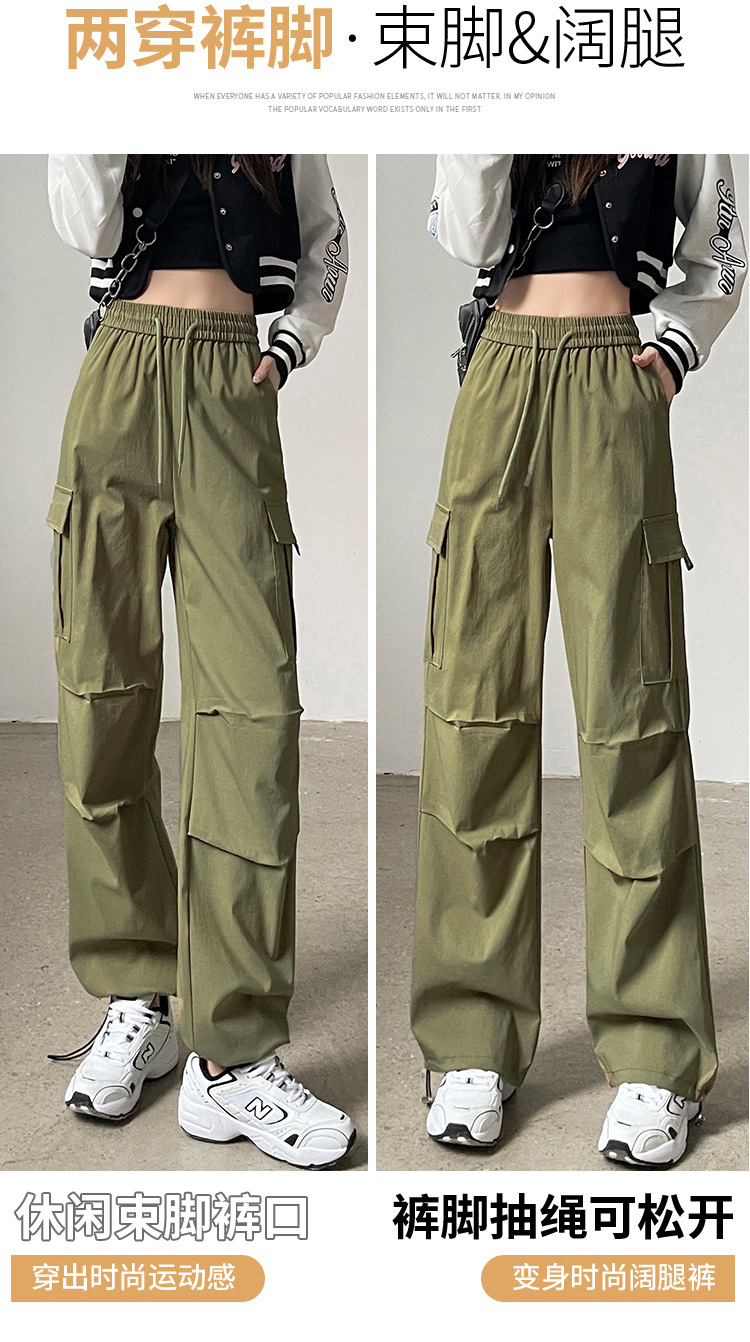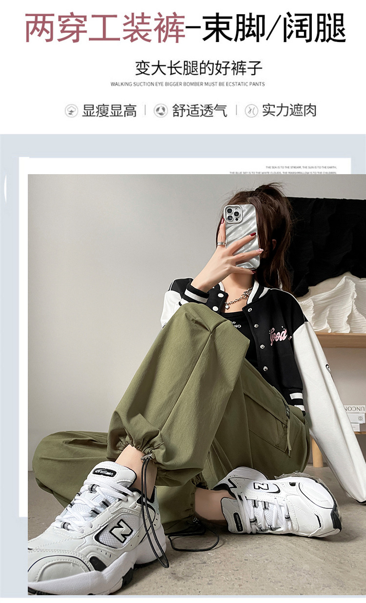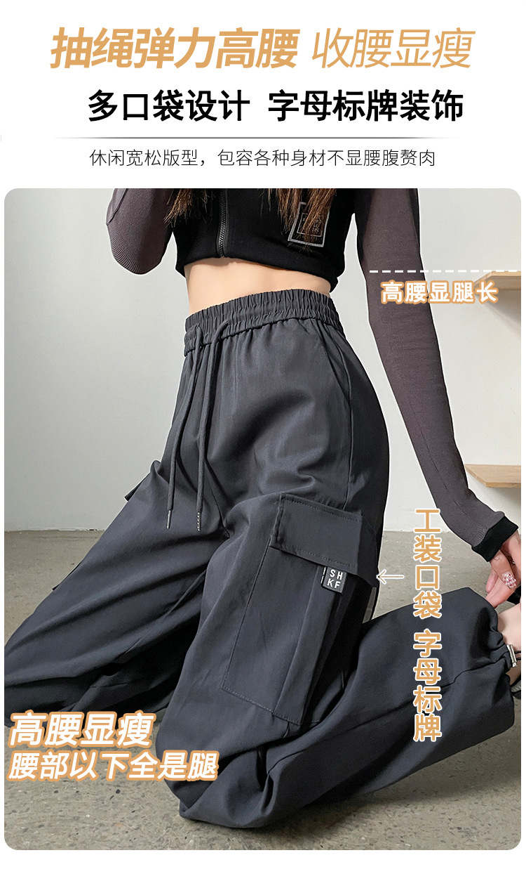 「美式工装运动裤!休闲+运动两穿」女2024春季潮酷抽绳两穿辣妹风高腰宽松阔腿裤下装