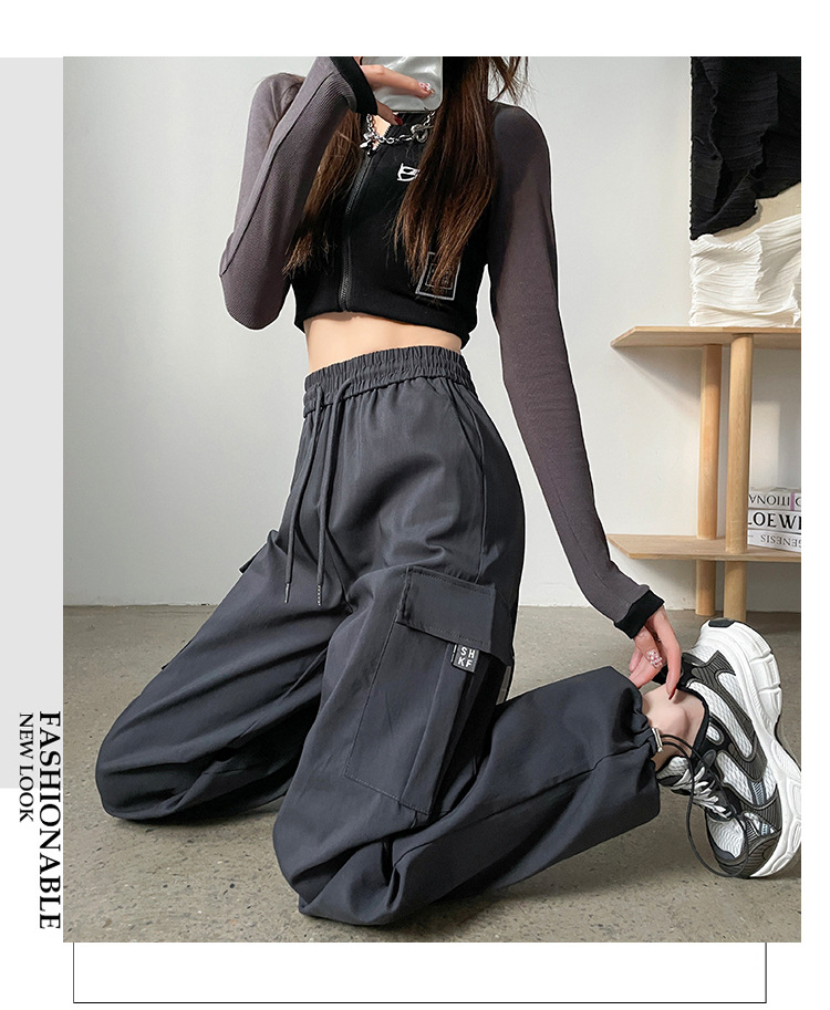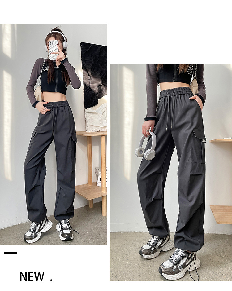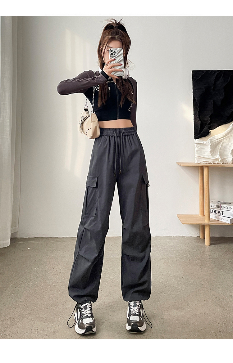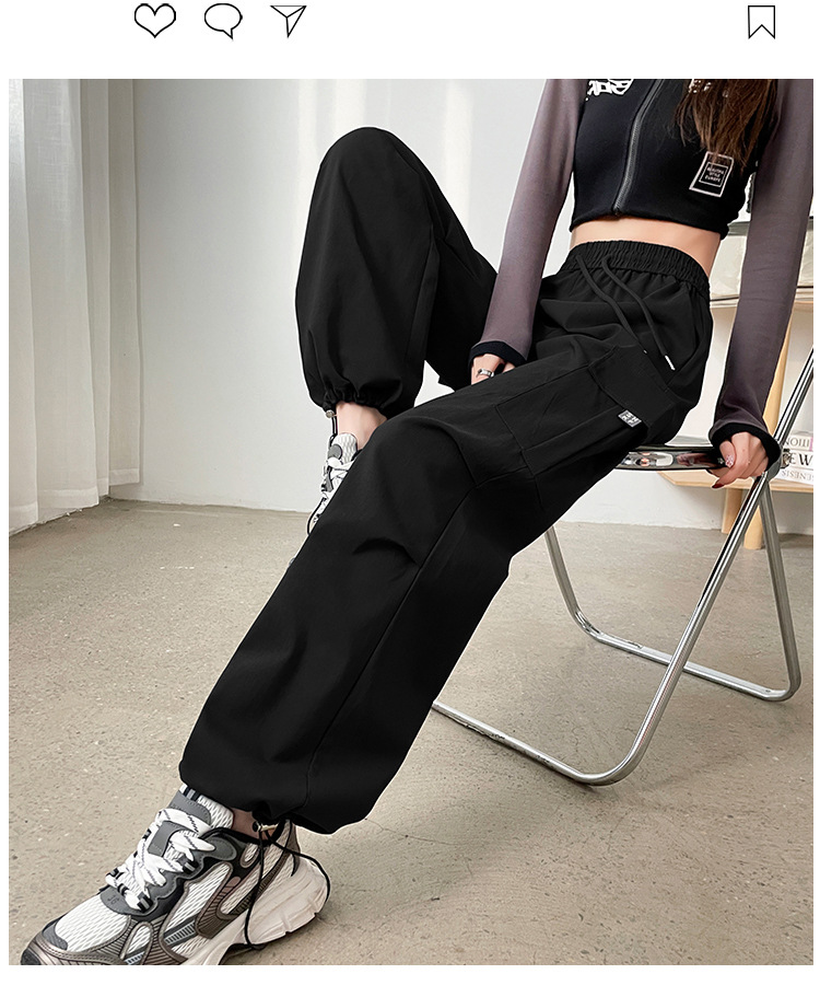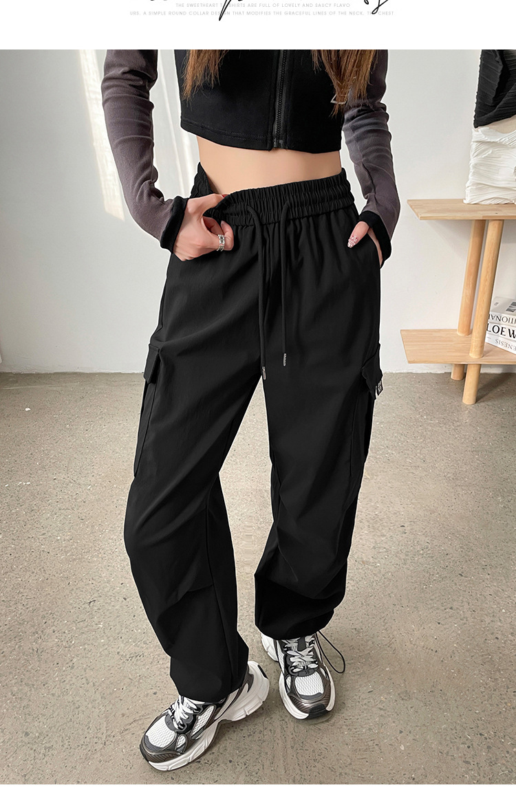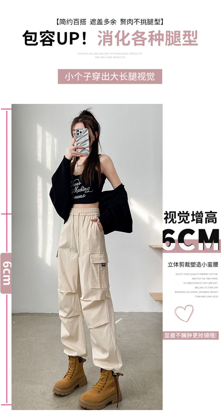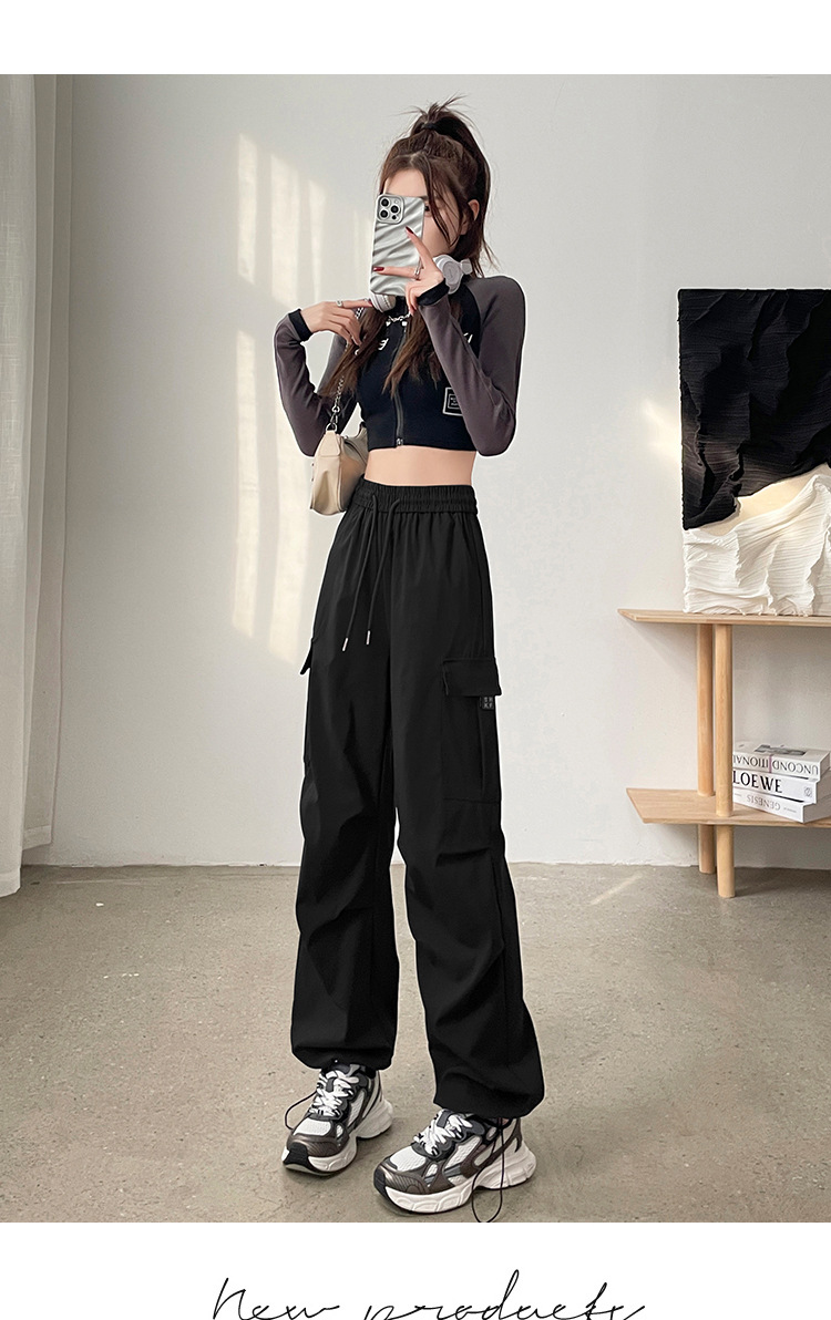 「美式工装运动裤!休闲+运动两穿」女2024春季潮酷抽绳两穿辣妹风高腰宽松阔腿裤下装