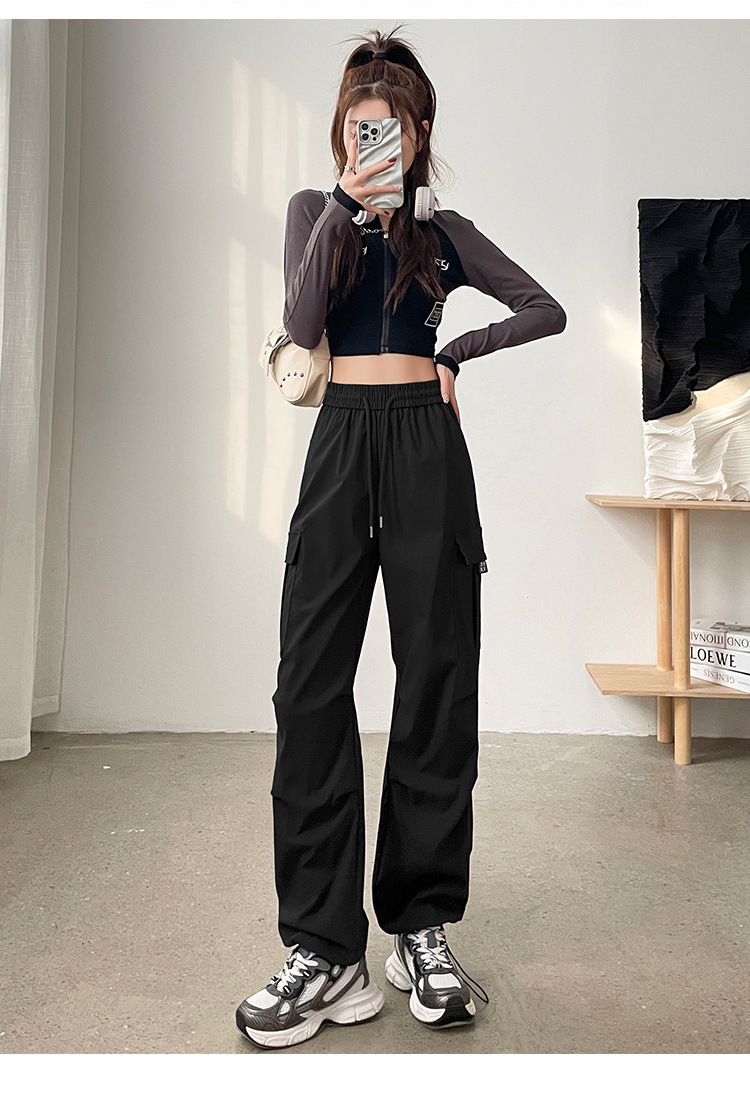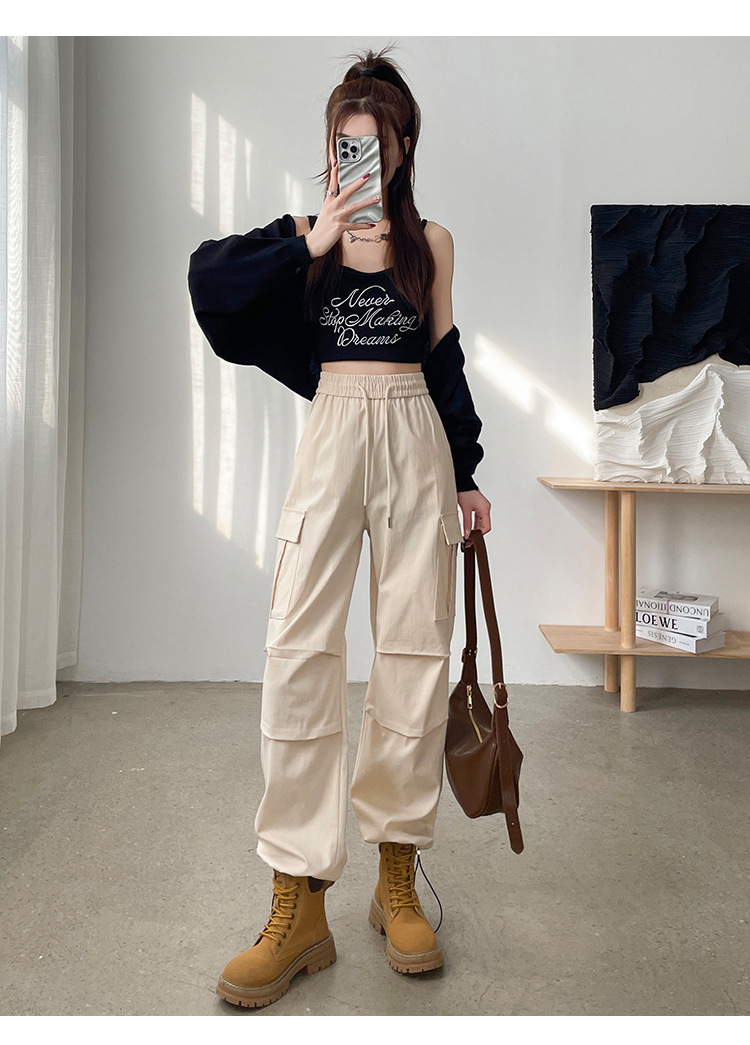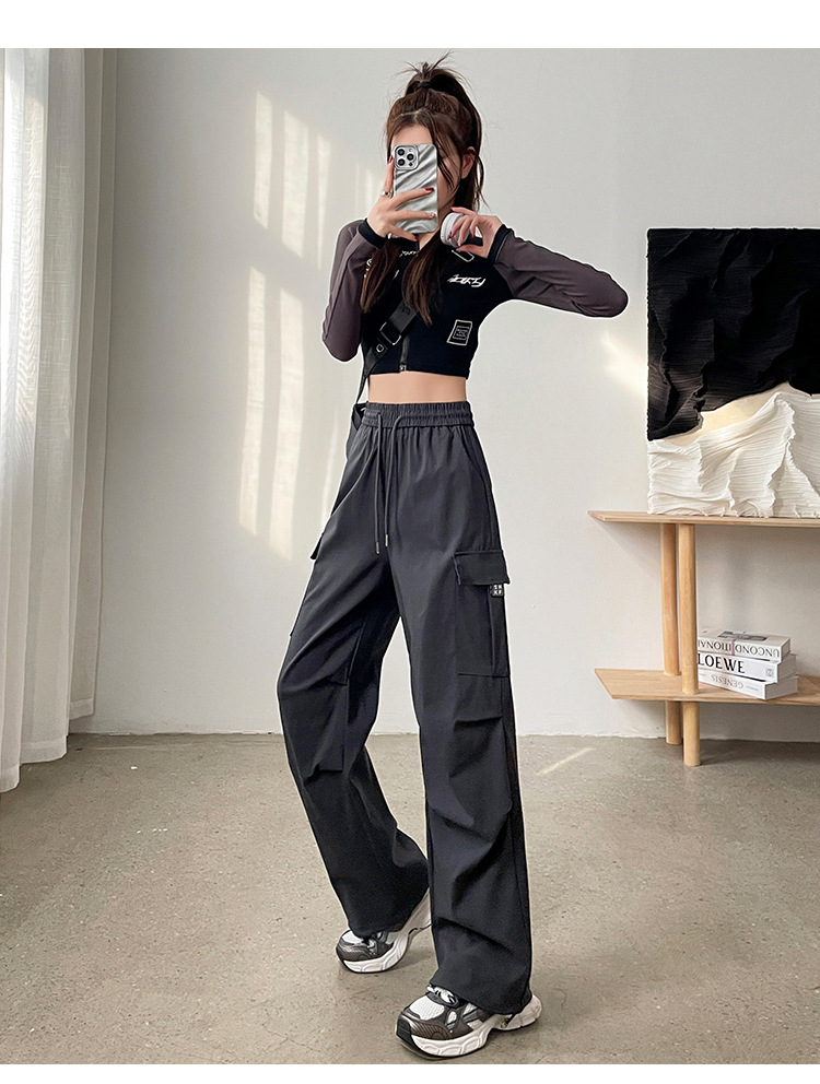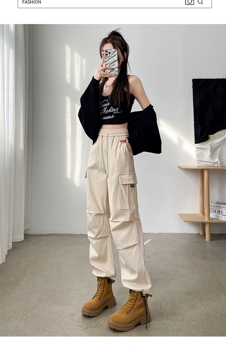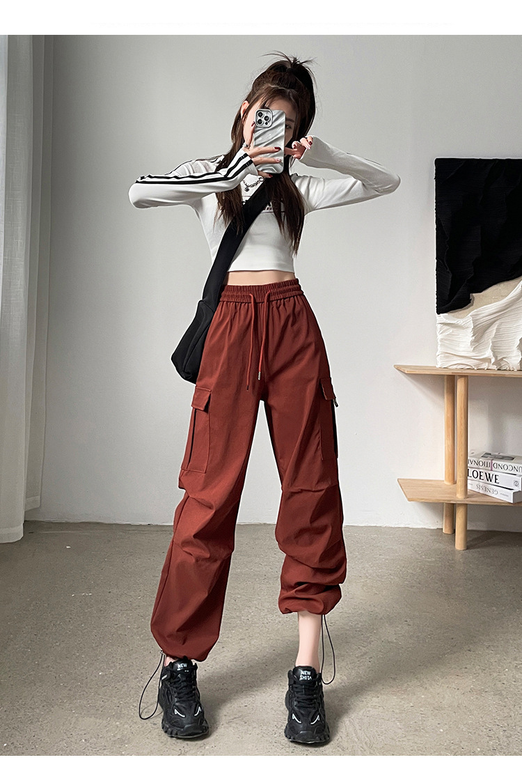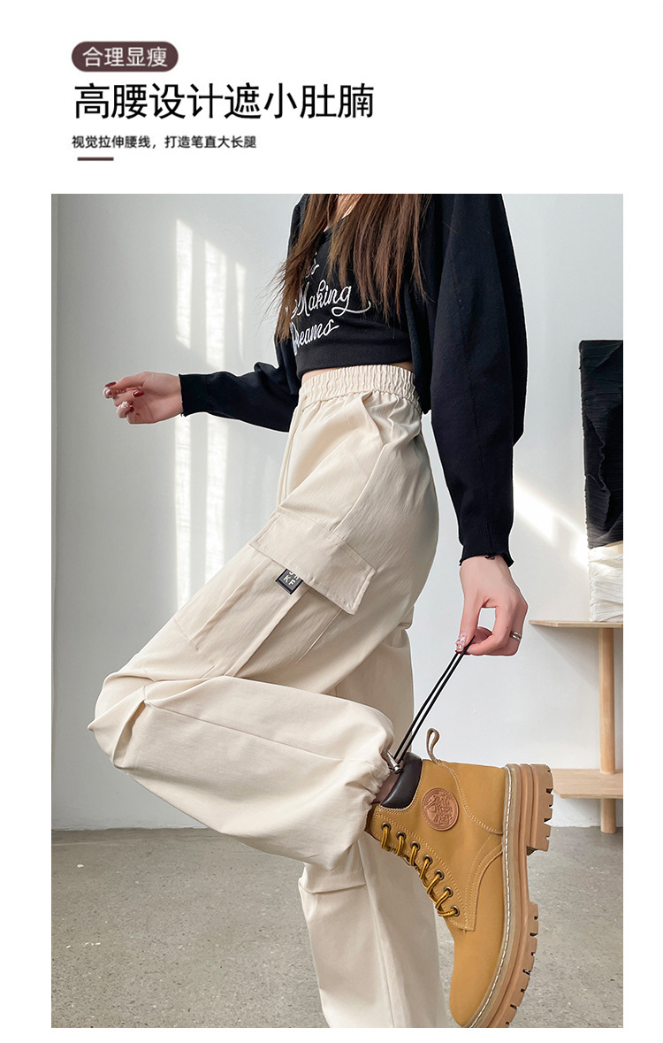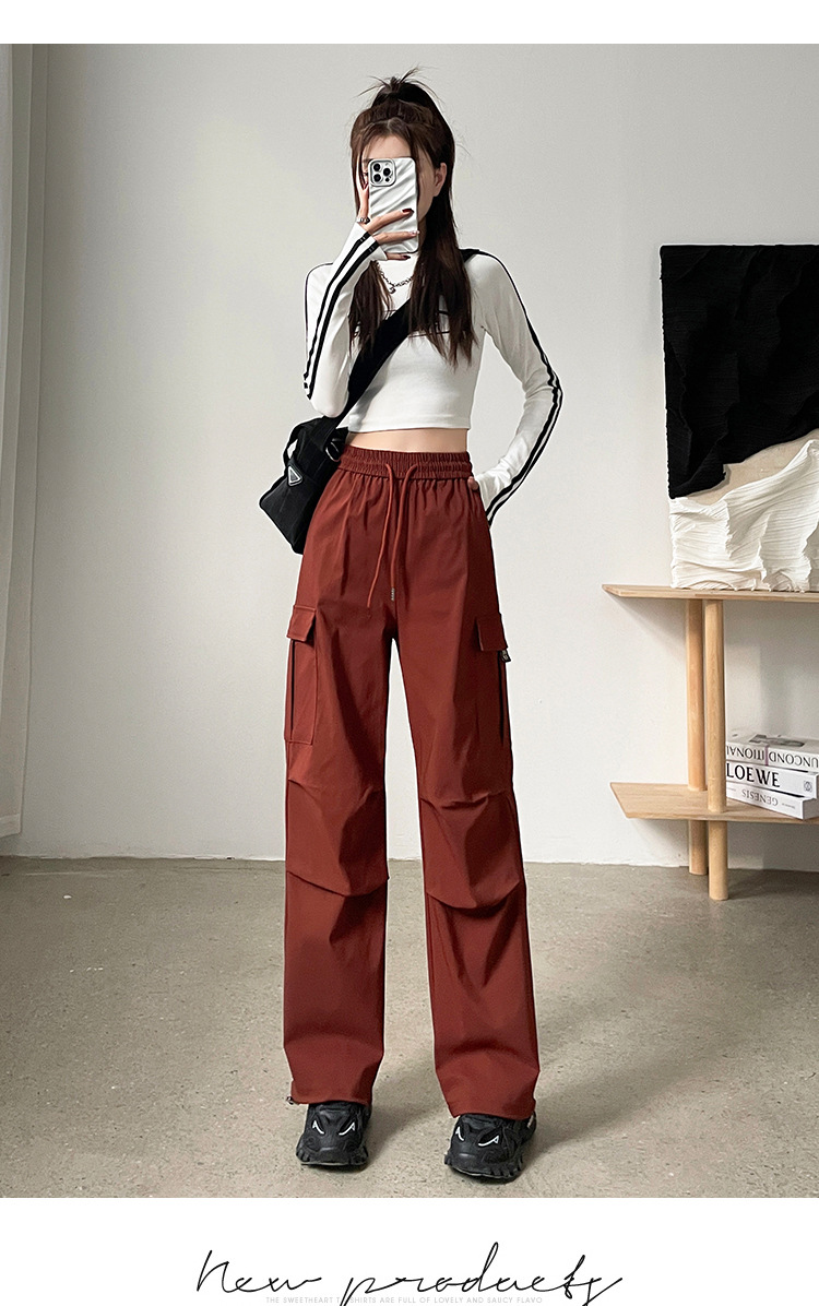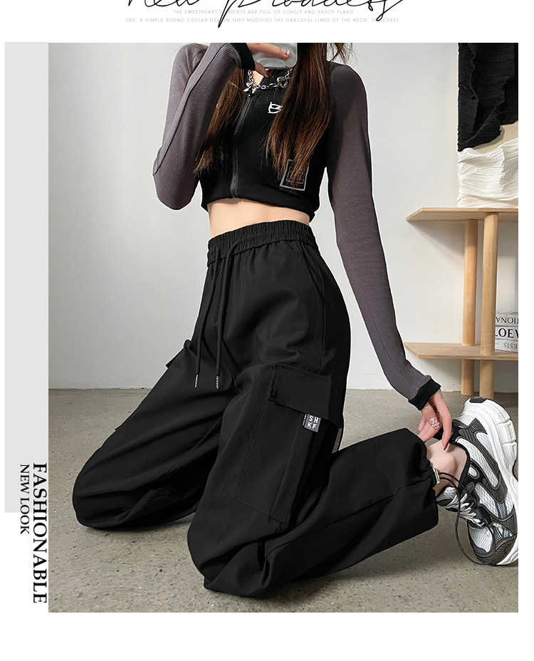「美式工装运动裤!休闲+运动两穿」女2024春季潮酷抽绳两穿辣妹风高腰宽松阔腿裤下装