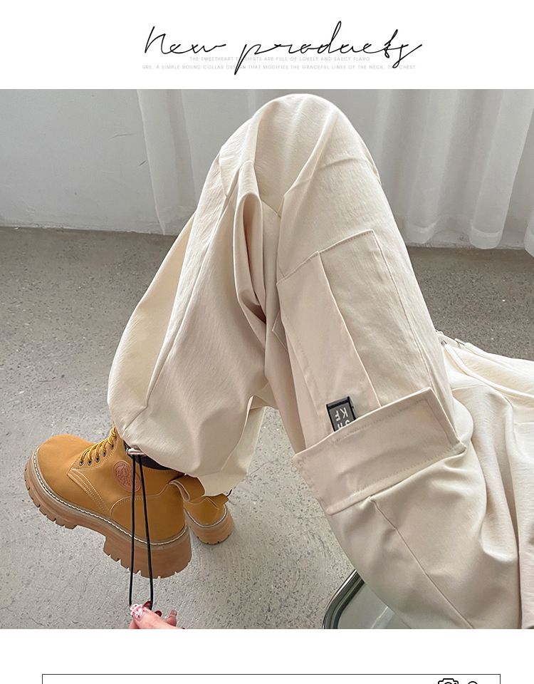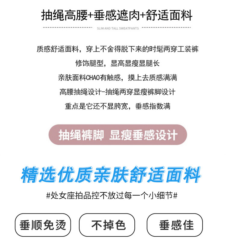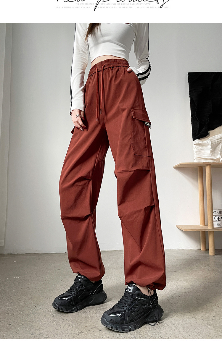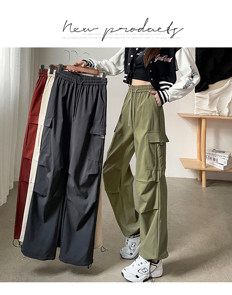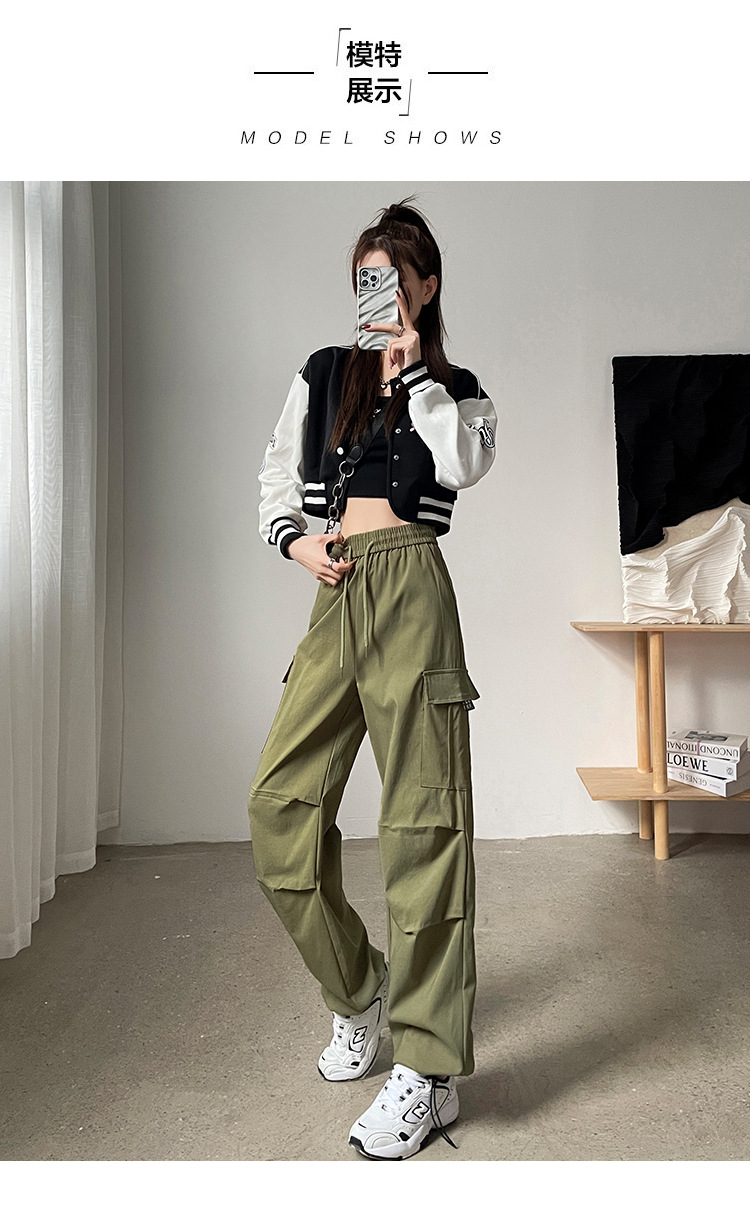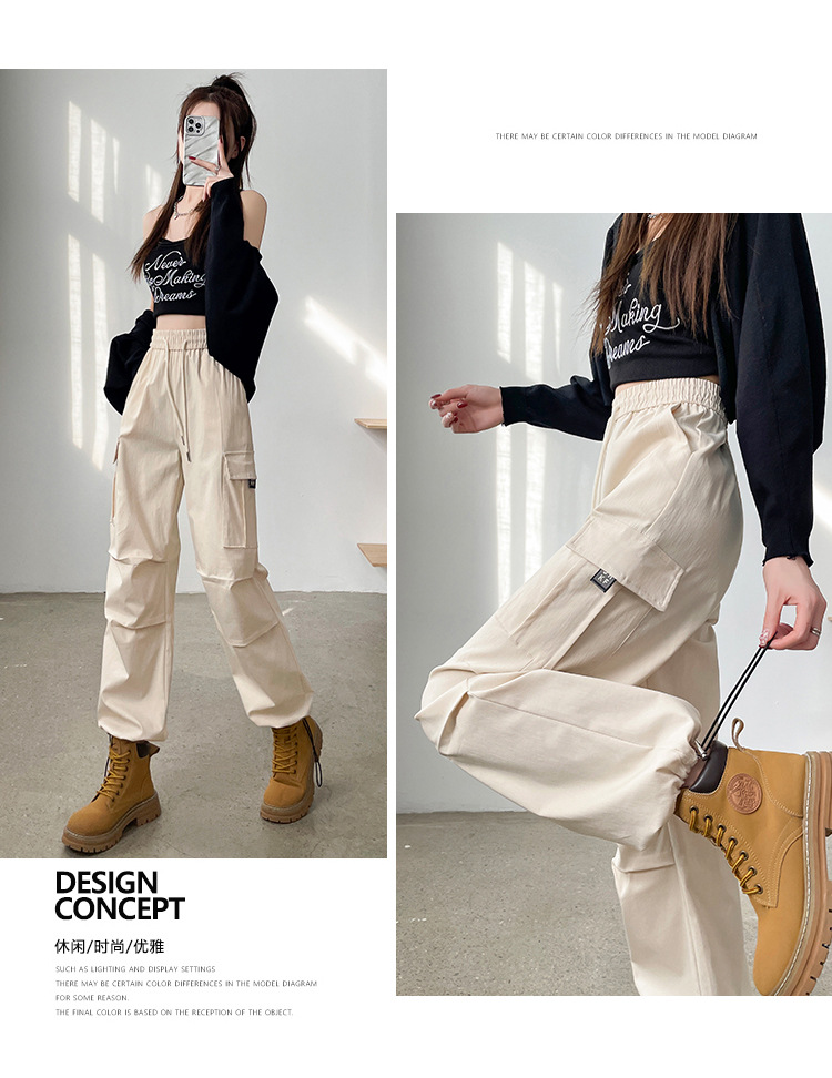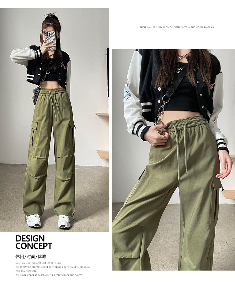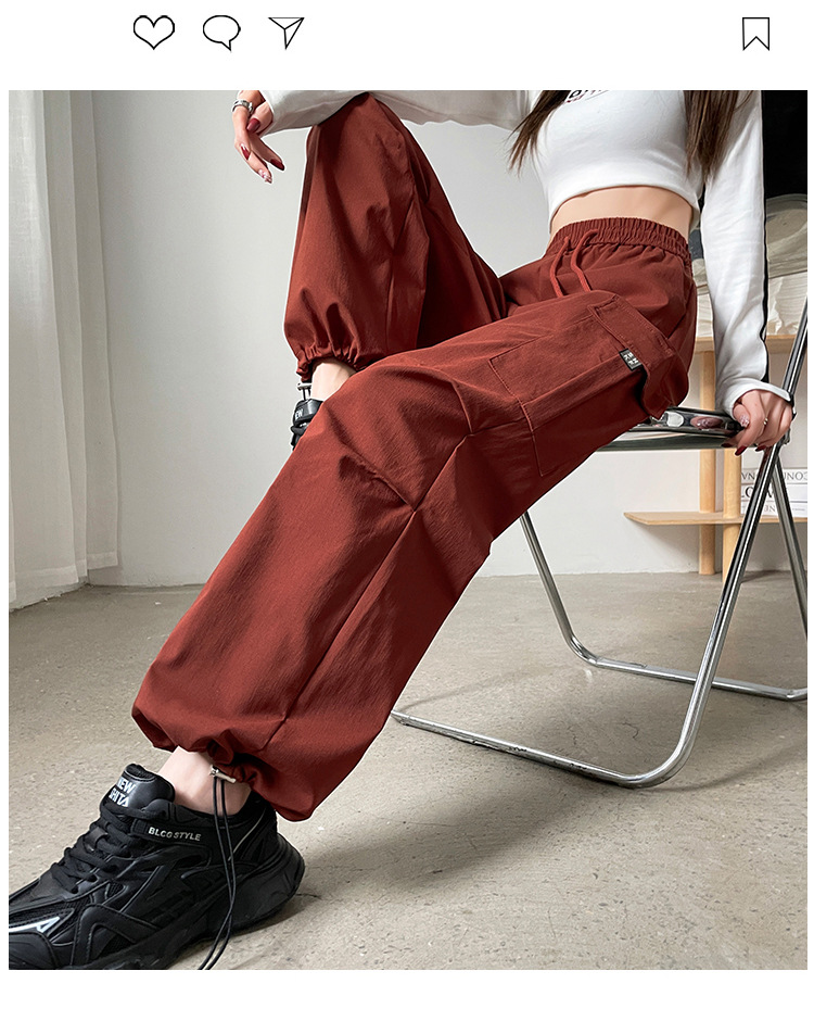 「美式工装运动裤!休闲+运动两穿」女2024春季潮酷抽绳两穿辣妹风高腰宽松阔腿裤下装