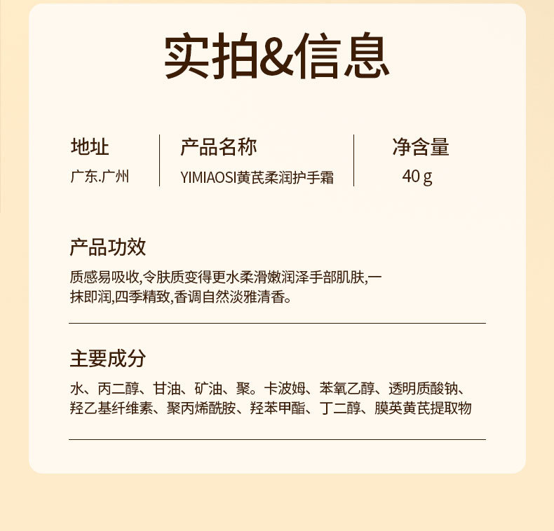 「7.9到手3支!便携装」YIMIAOSI黄芪柔润护手霜40g保湿滋润小支便携