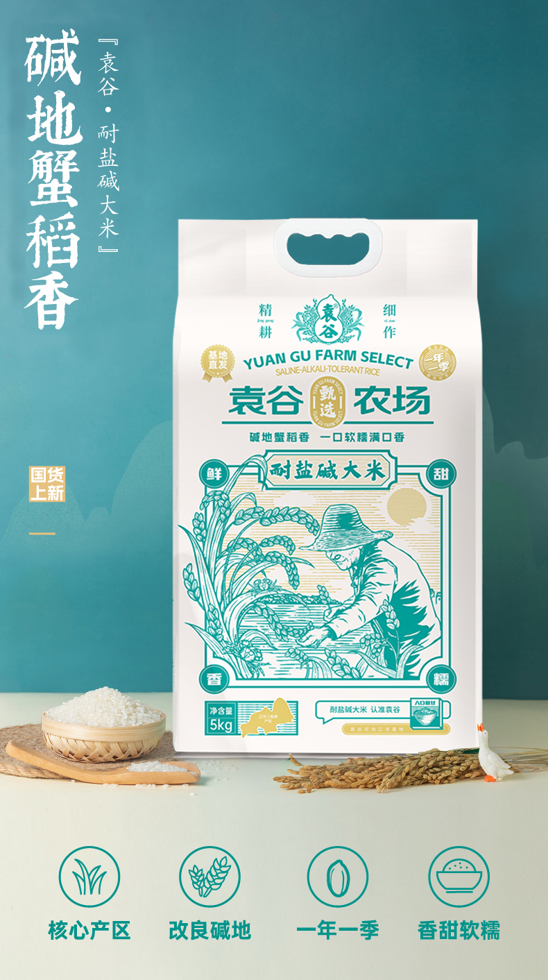 袁谷隆平芯米耐盐碱大米5kg东北大米盘锦粳米10斤真空装当季新米