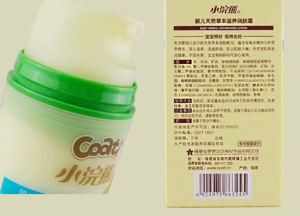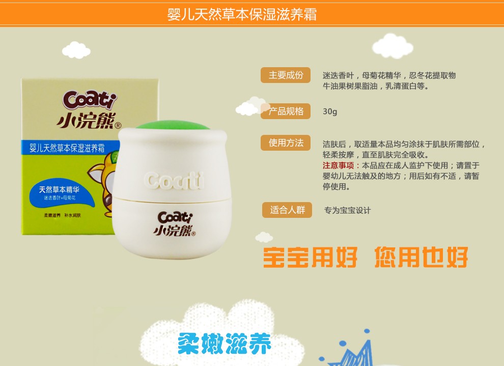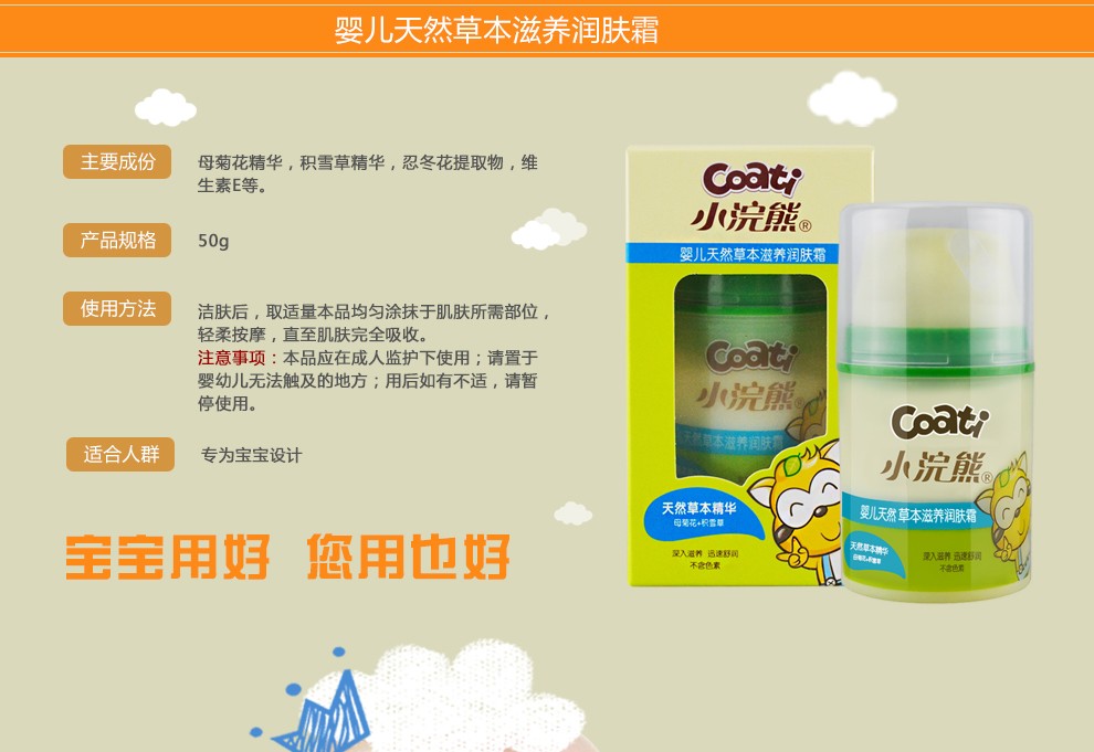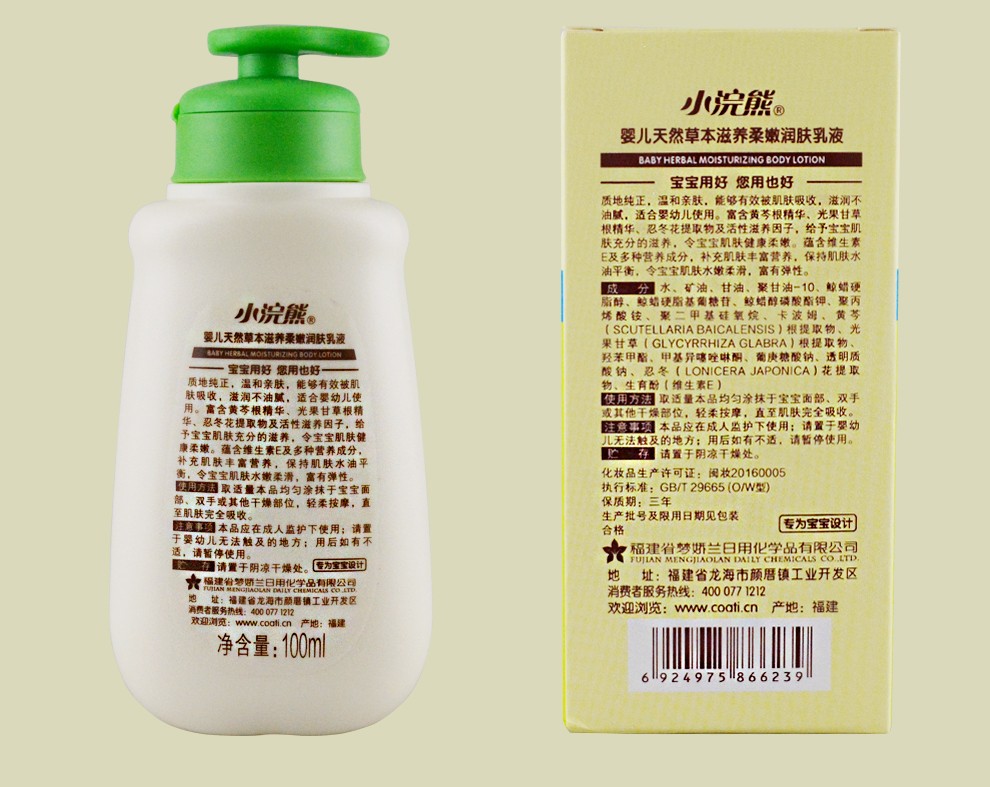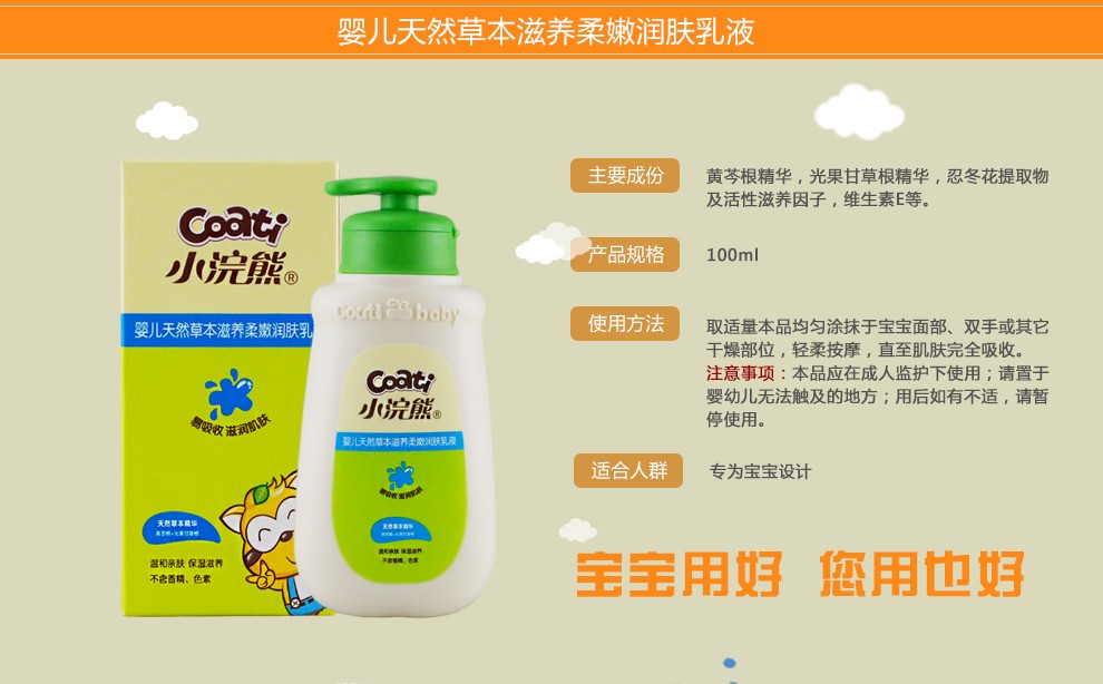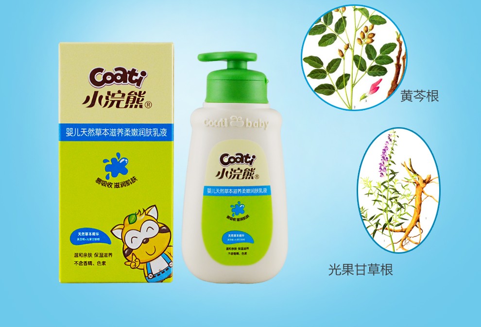 小浣熊婴儿天然草本滋养柔嫩润肤乳液100ml*2瓶
