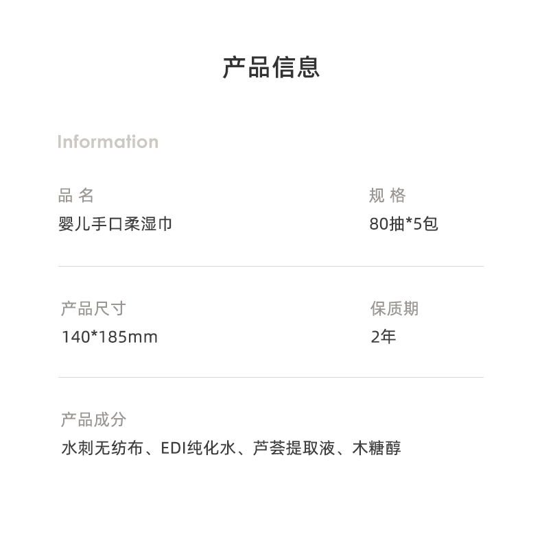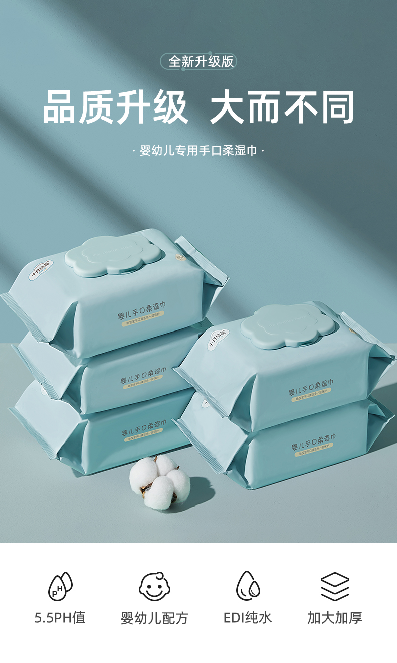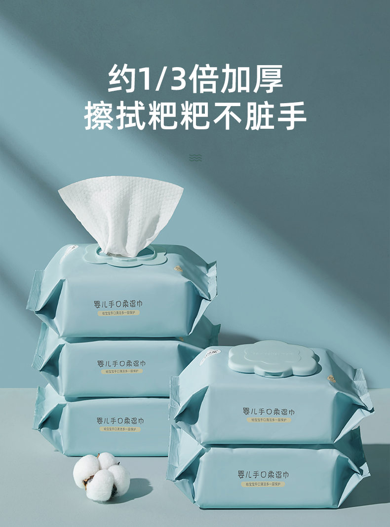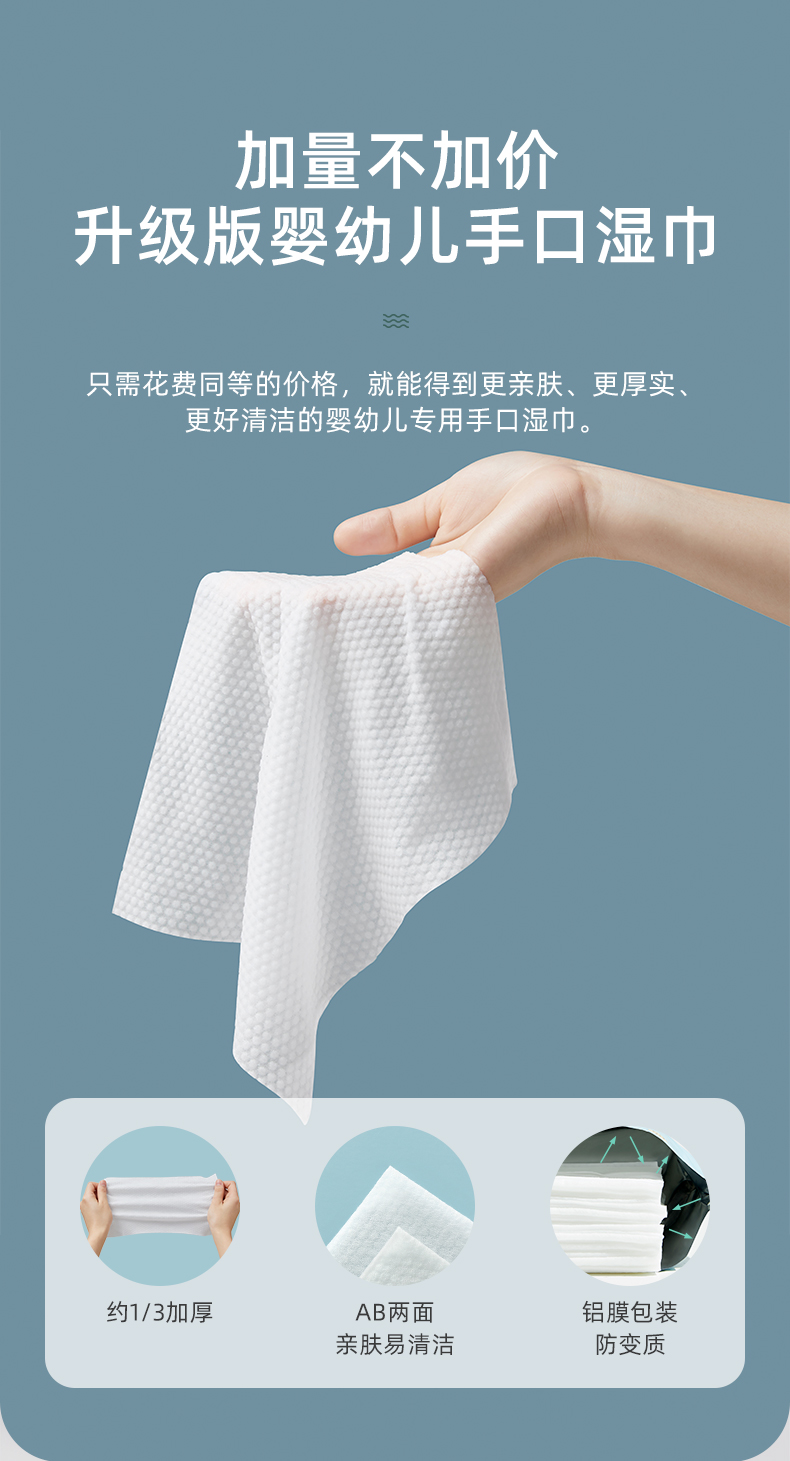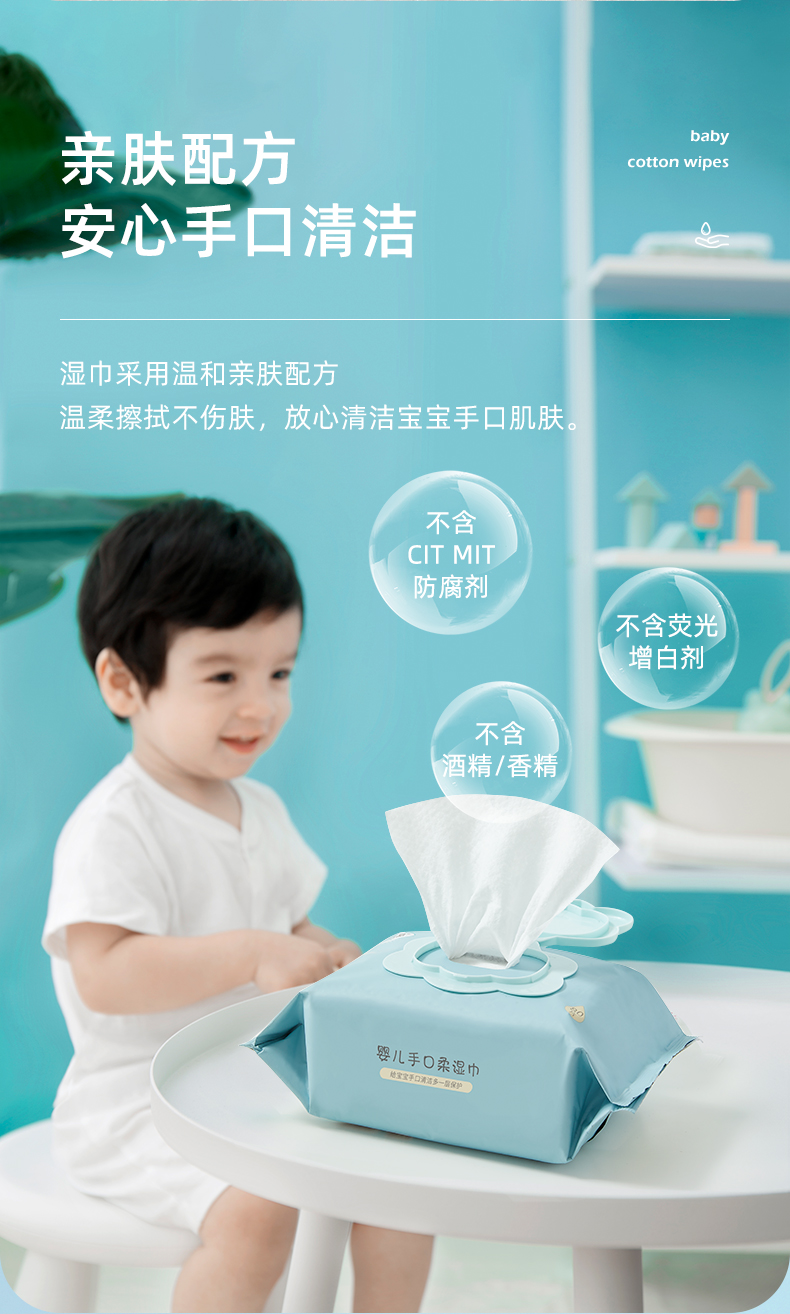 婴儿湿巾新生手口专用屁 宝宝幼儿童湿纸巾80抽5包大包装