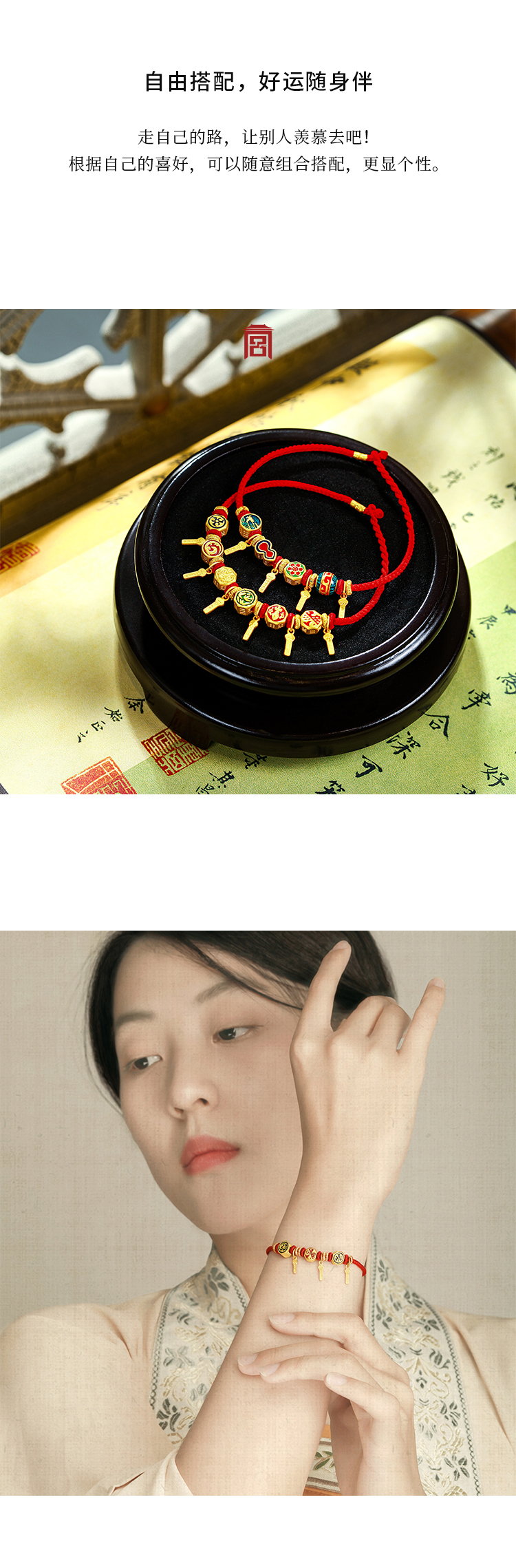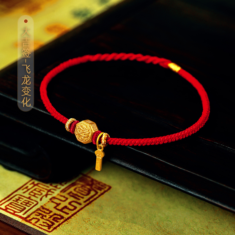 老客户专属上上签-飞龙变化足金转运珠红绳手串新年礼