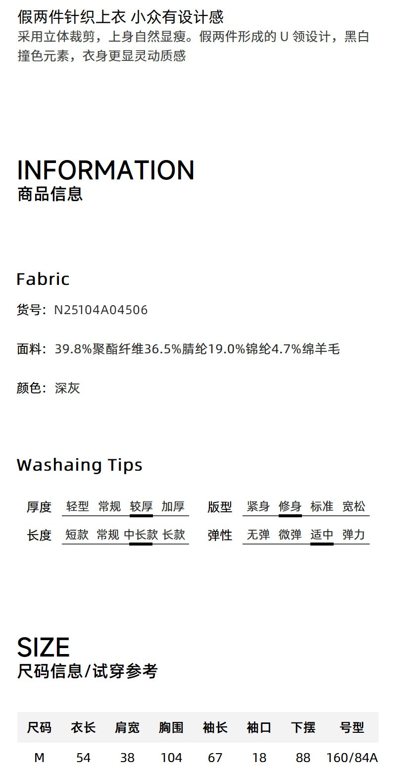 NEELLY纳俪商场同款冬季新款设计感假两件针织衫女修身打底毛衣N25104A04506