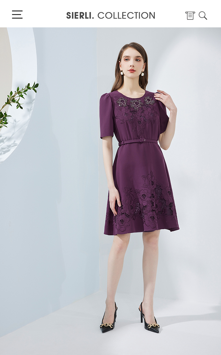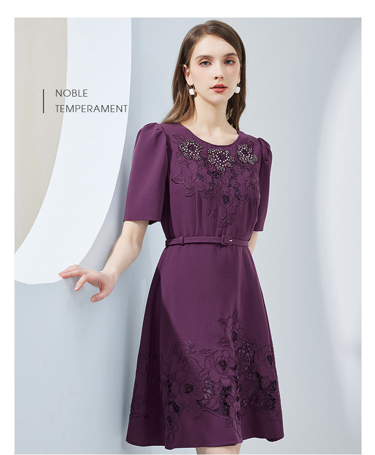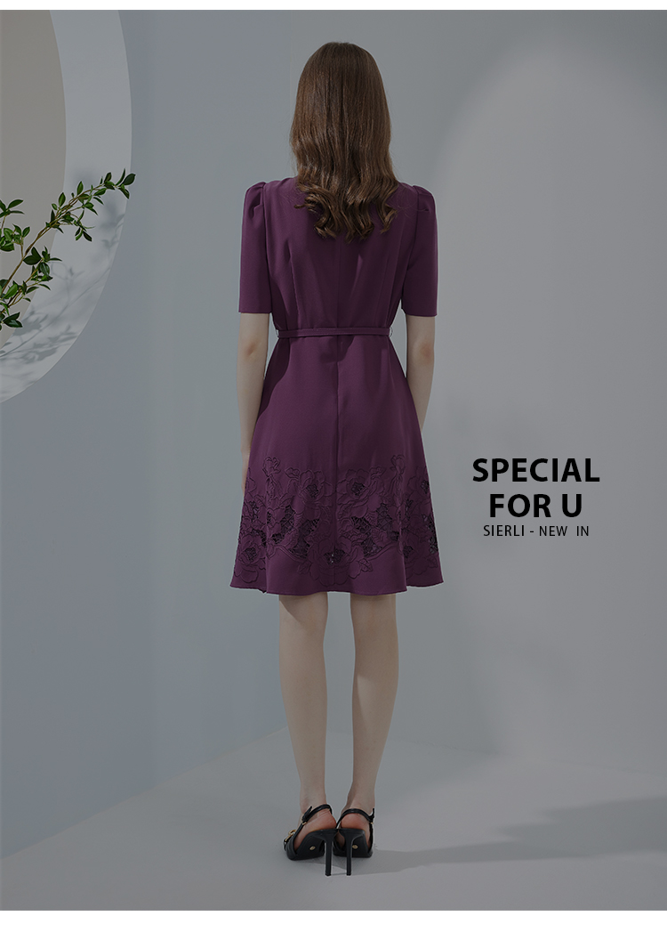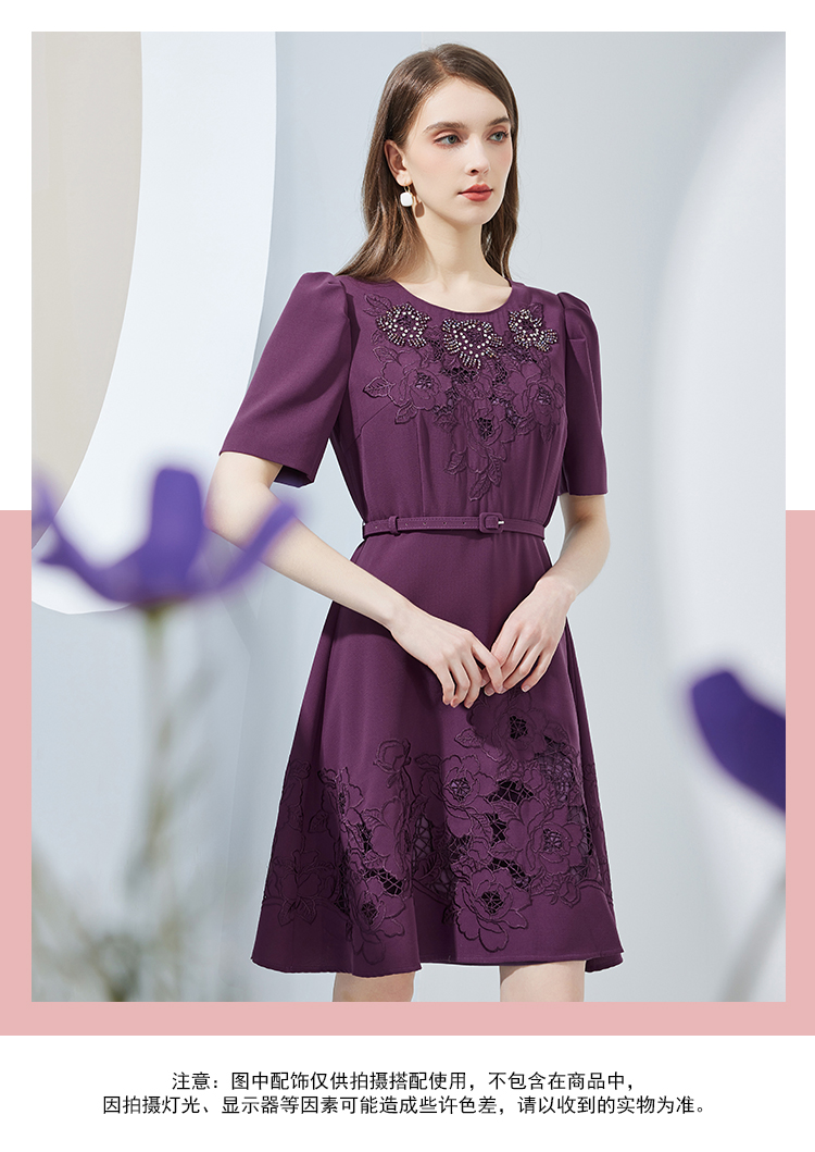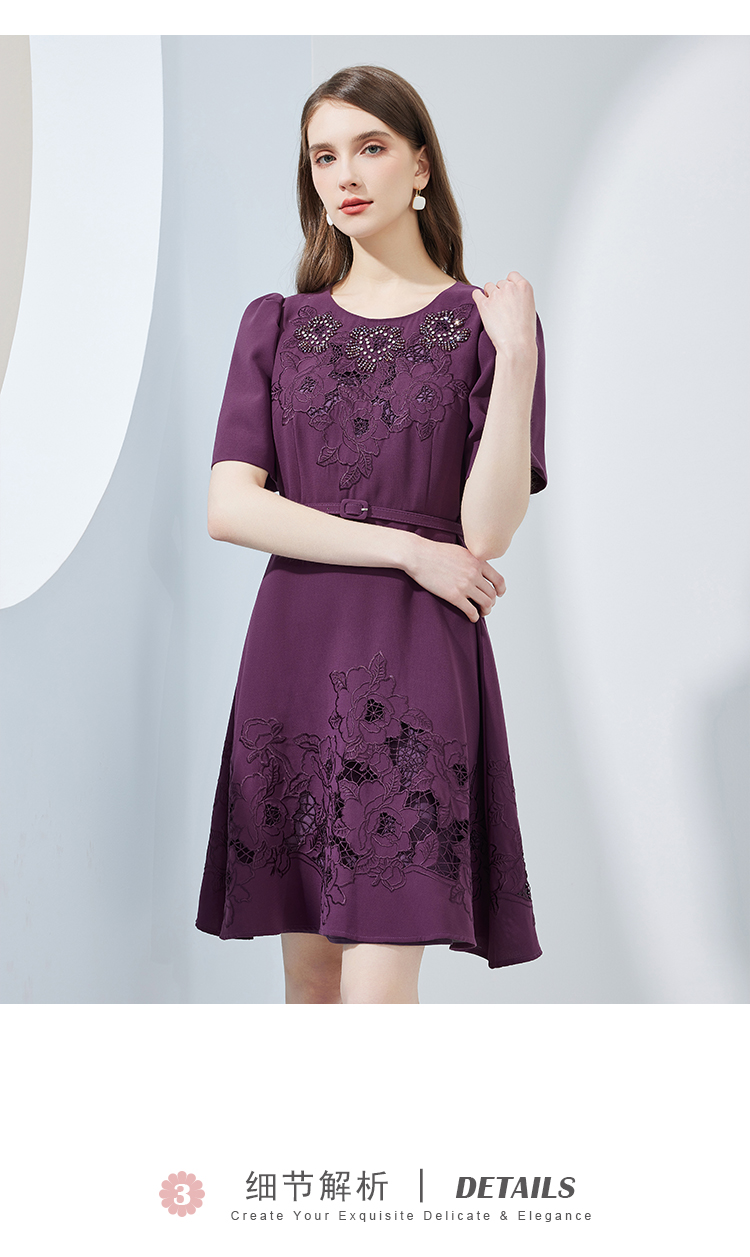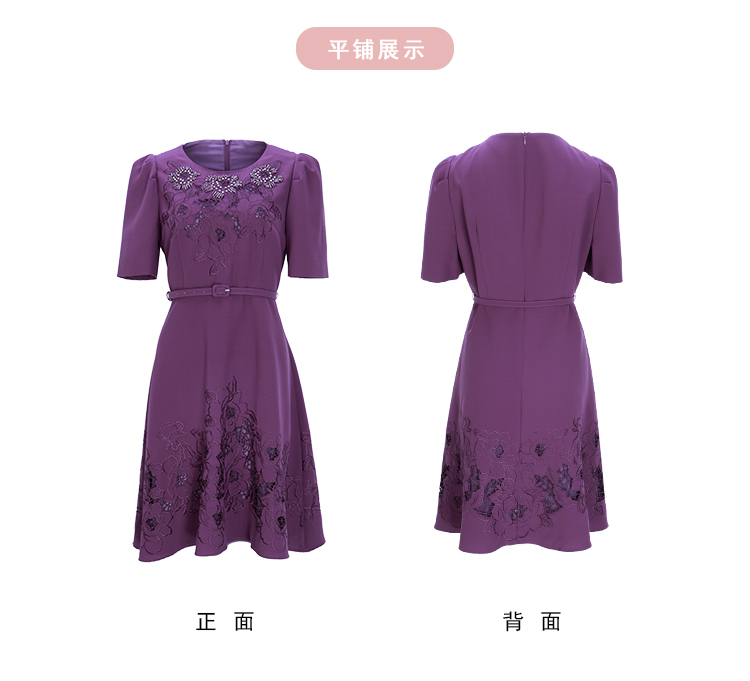 QF83B瑟俪高级定位绣花及钉珠连衣裙