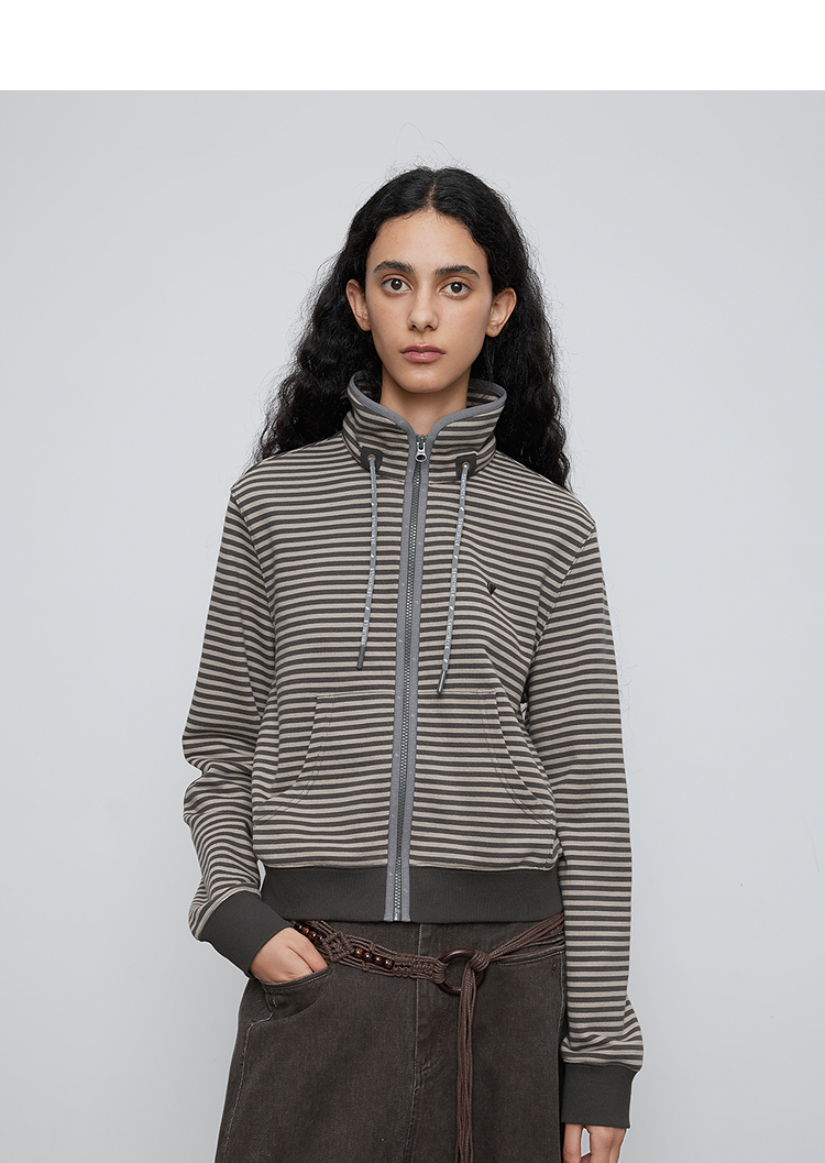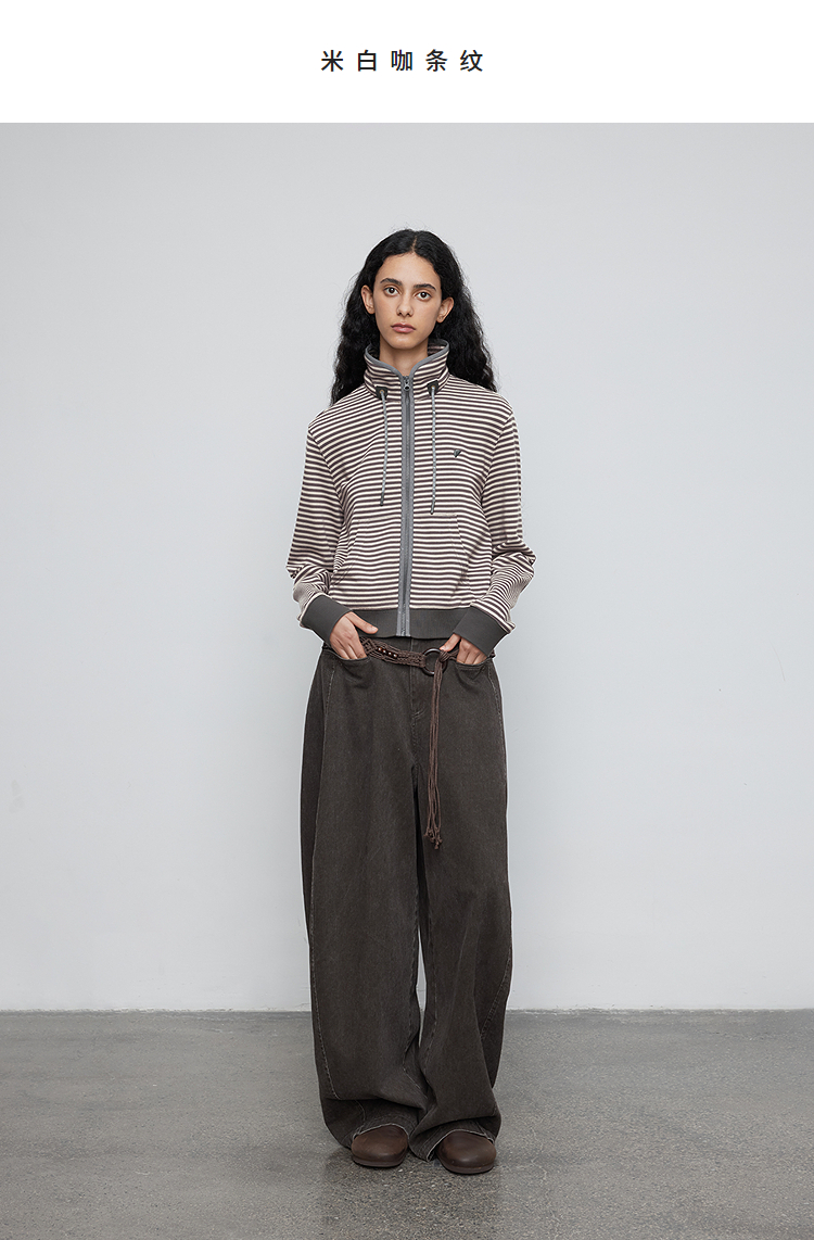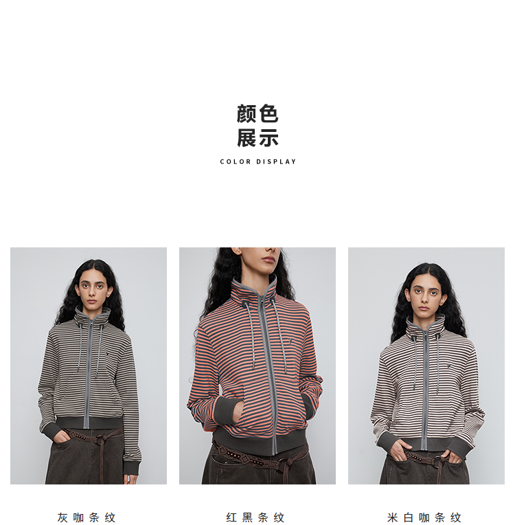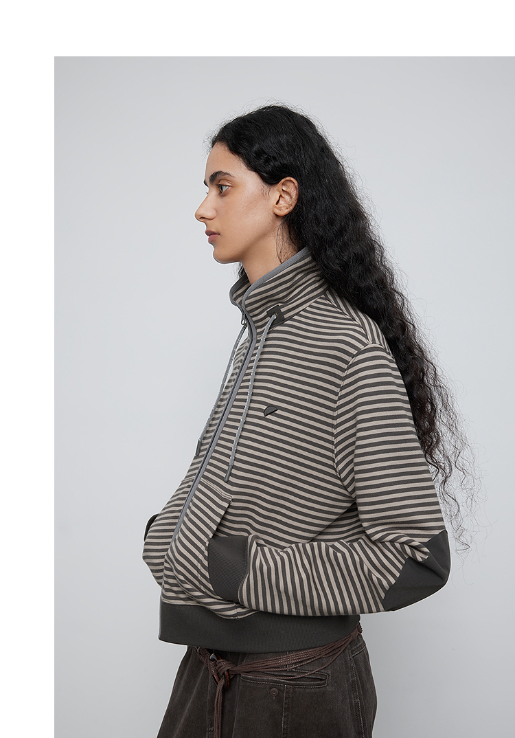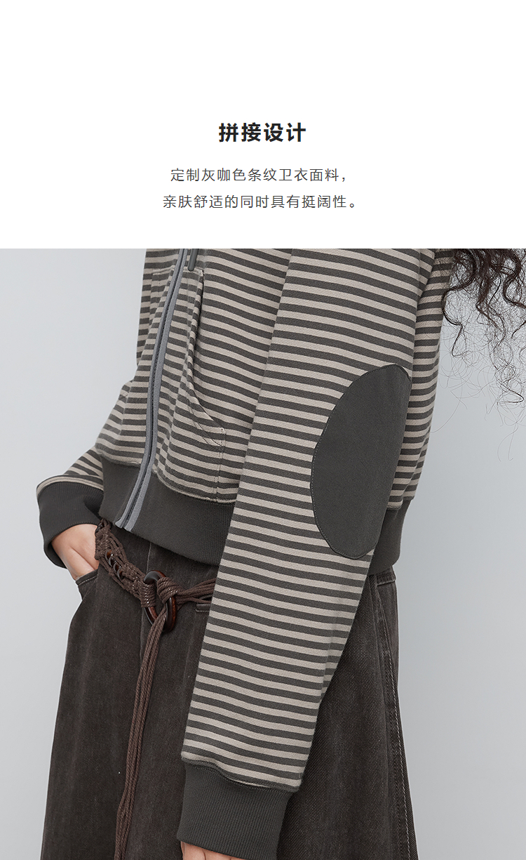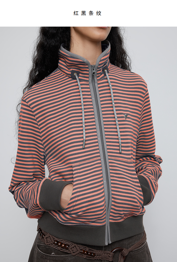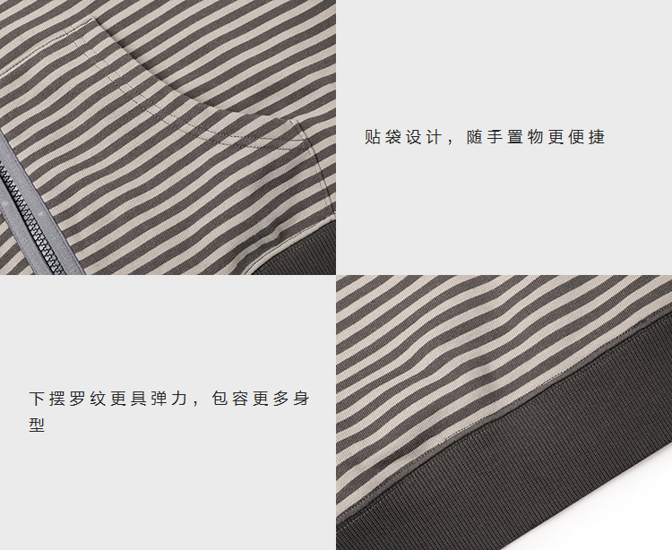 半圆/Q5151824/加绒加厚条纹长袖卫衣外套