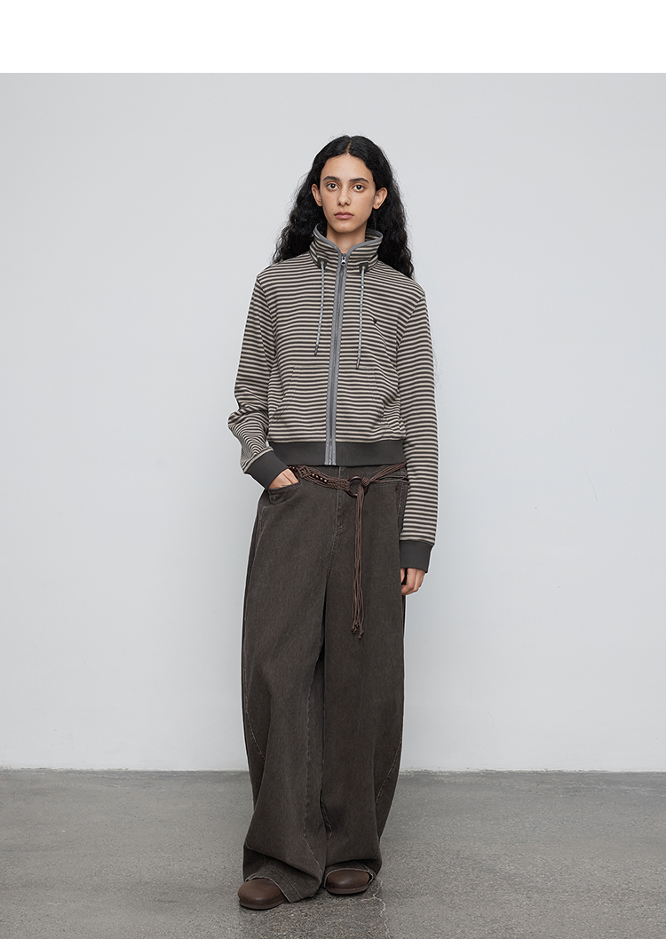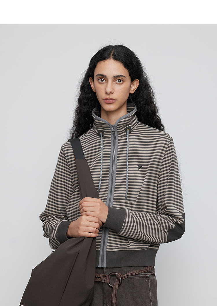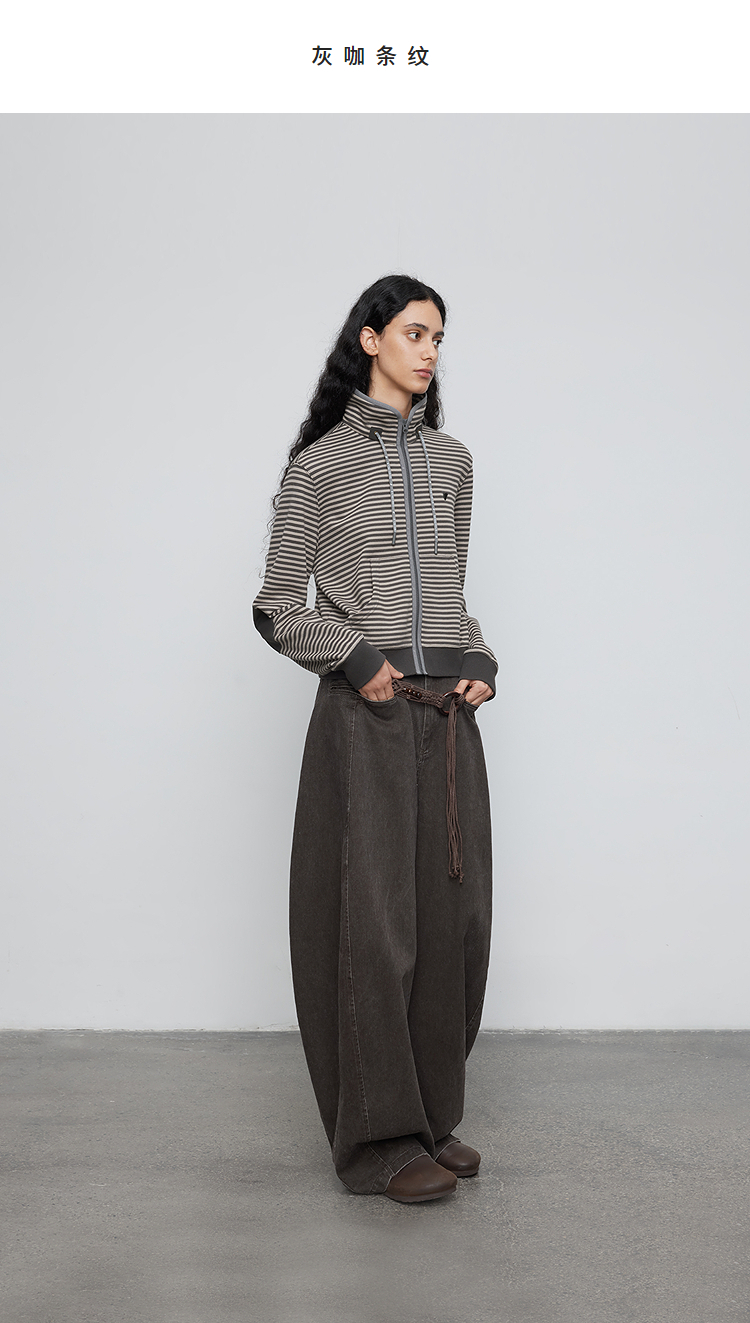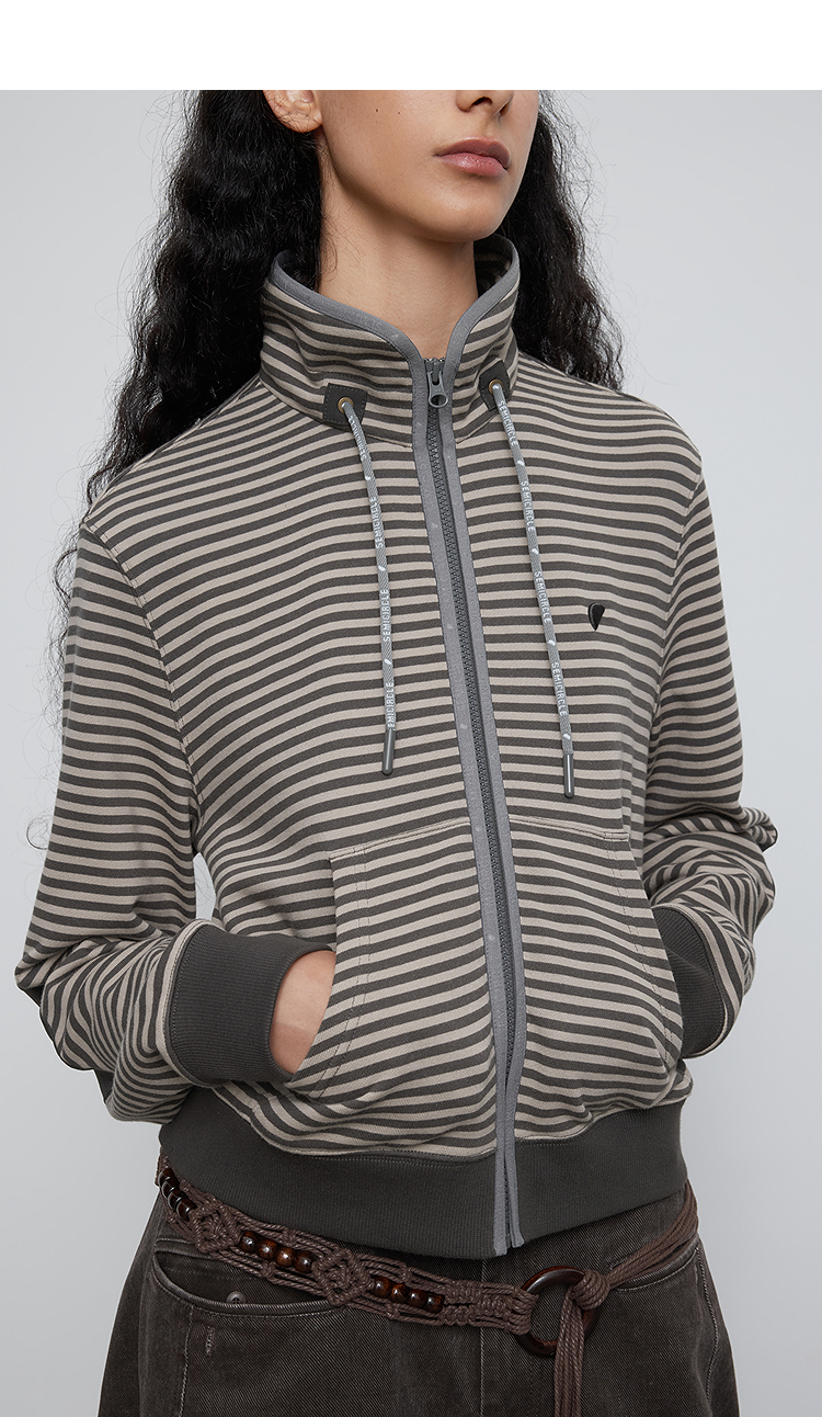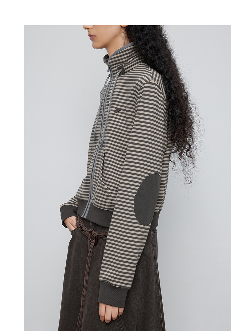 半圆/Q5151824/加绒加厚条纹长袖卫衣外套