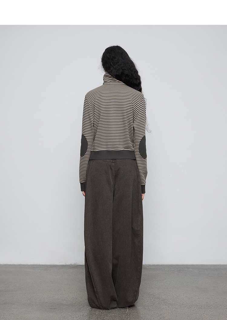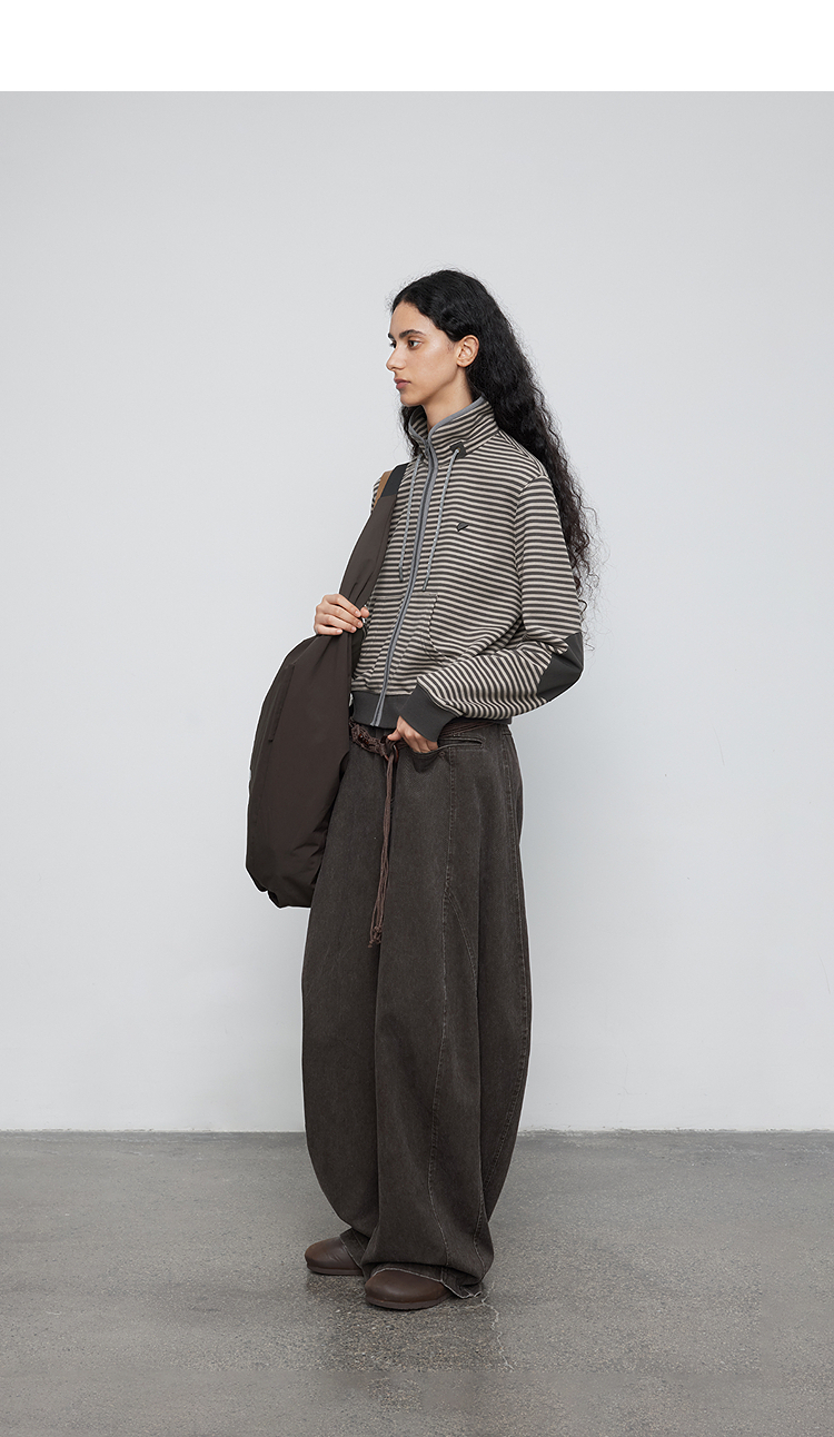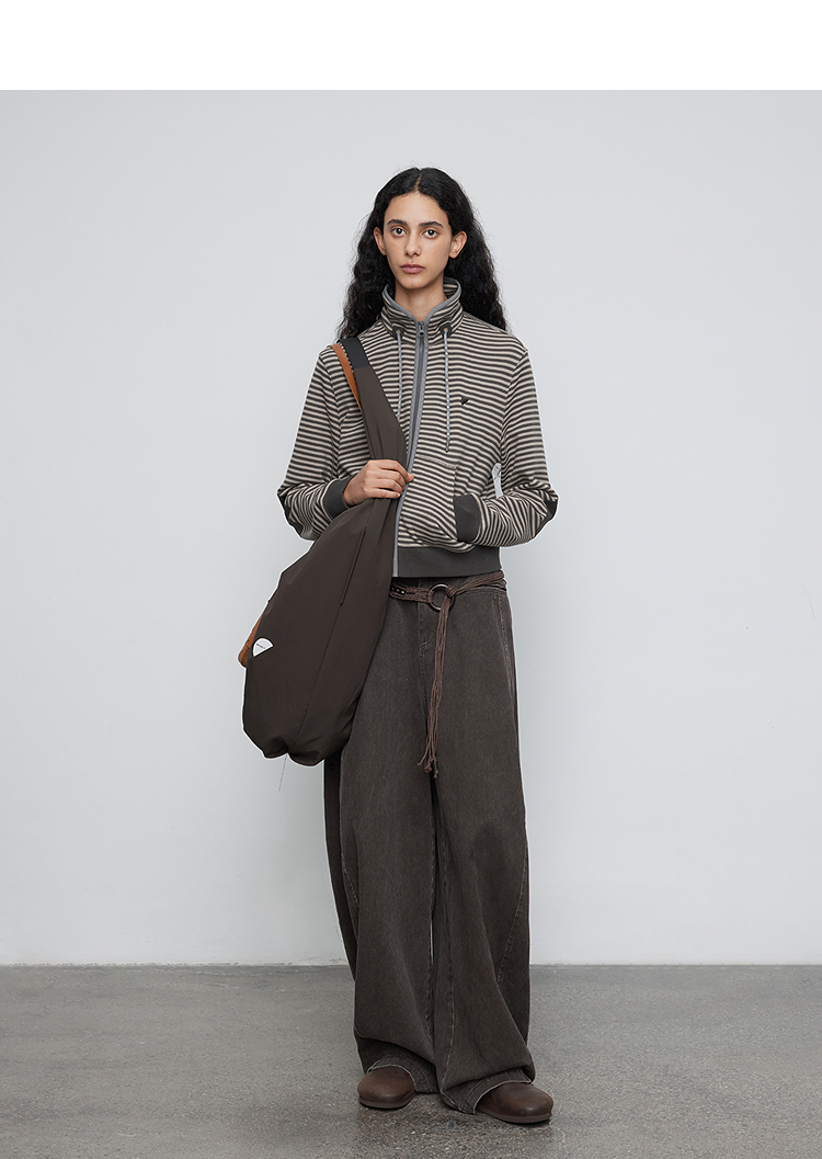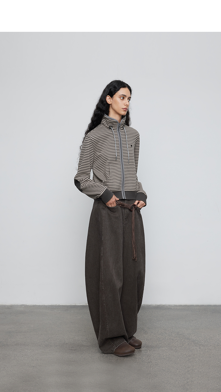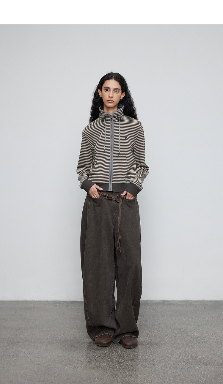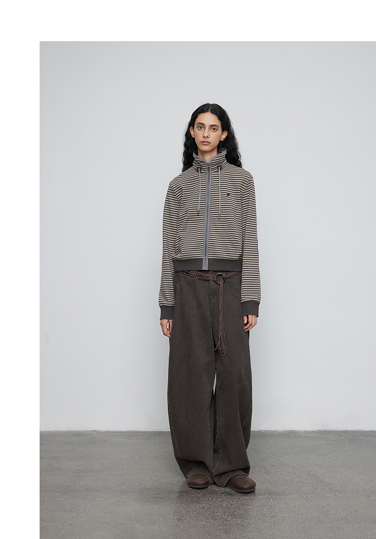 半圆/Q5151824/加绒加厚条纹长袖卫衣外套