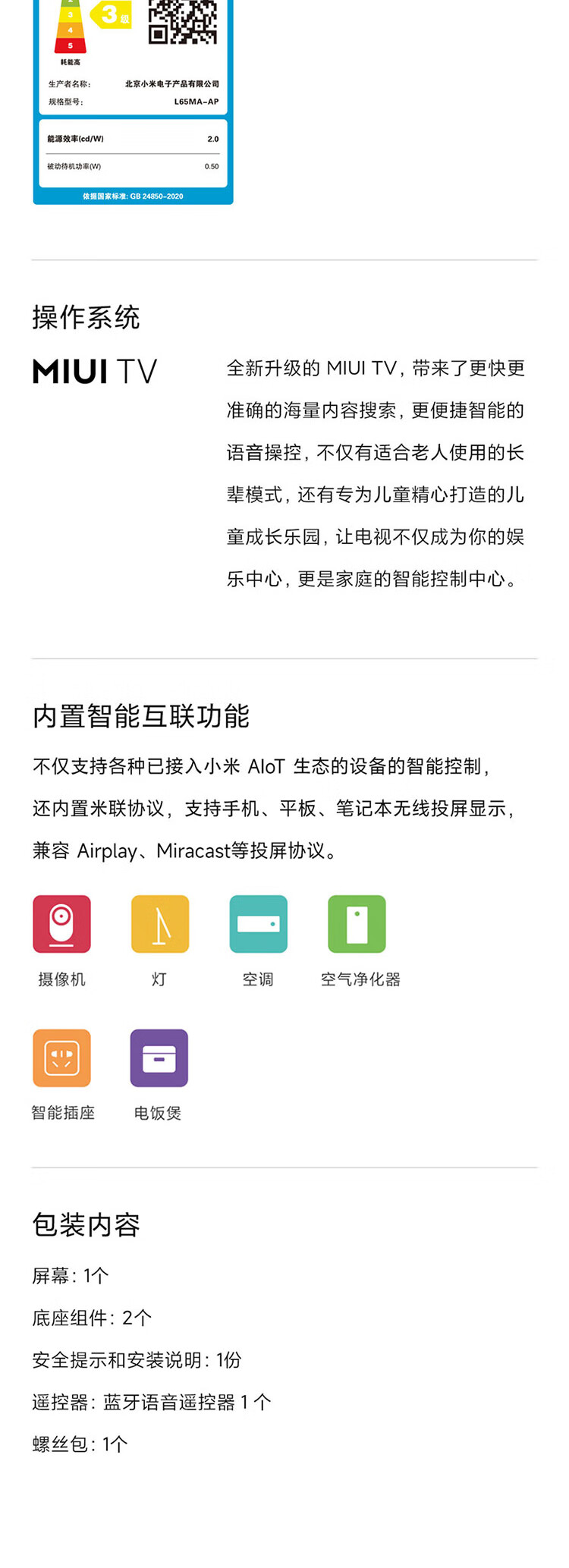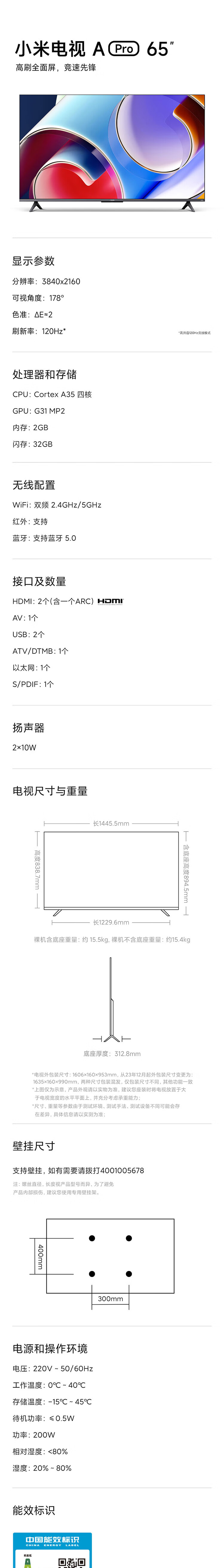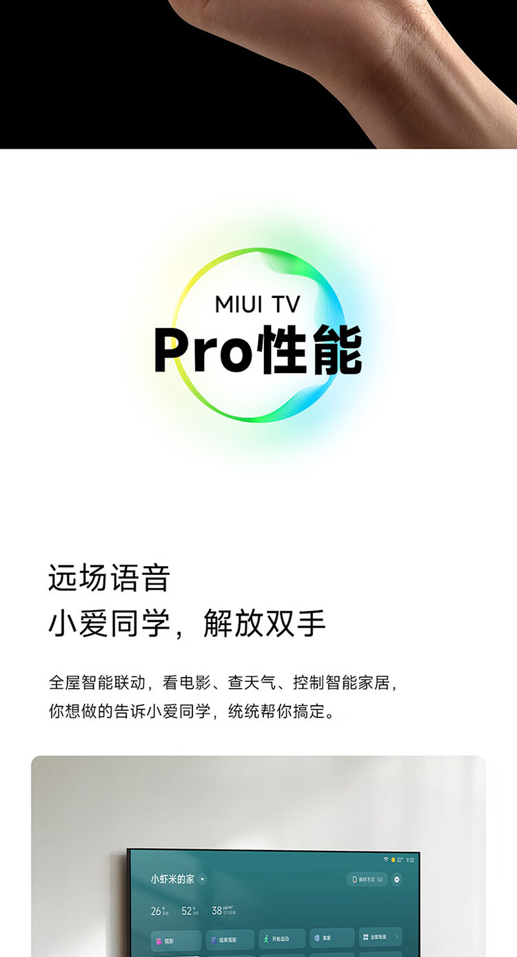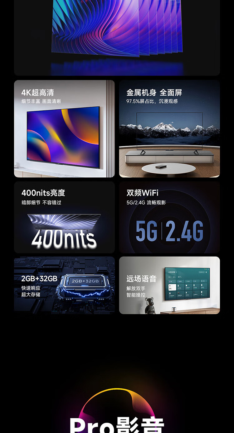 小米电视65英寸 A Pro 65 120Hz高刷2+32GB 4K金属全面屏远场语音护眼液晶平板电视机 65英寸 A Pro 护眼电视