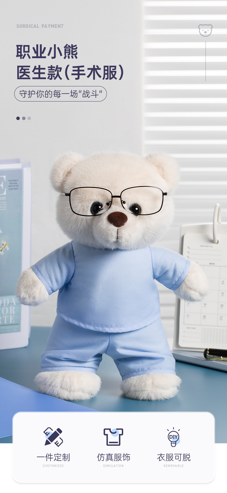 【实付满199送钥匙扣】【医生手术服小熊】可定制创意毛绒小熊公仔儿童玩具服装可脱玩偶送礼礼物