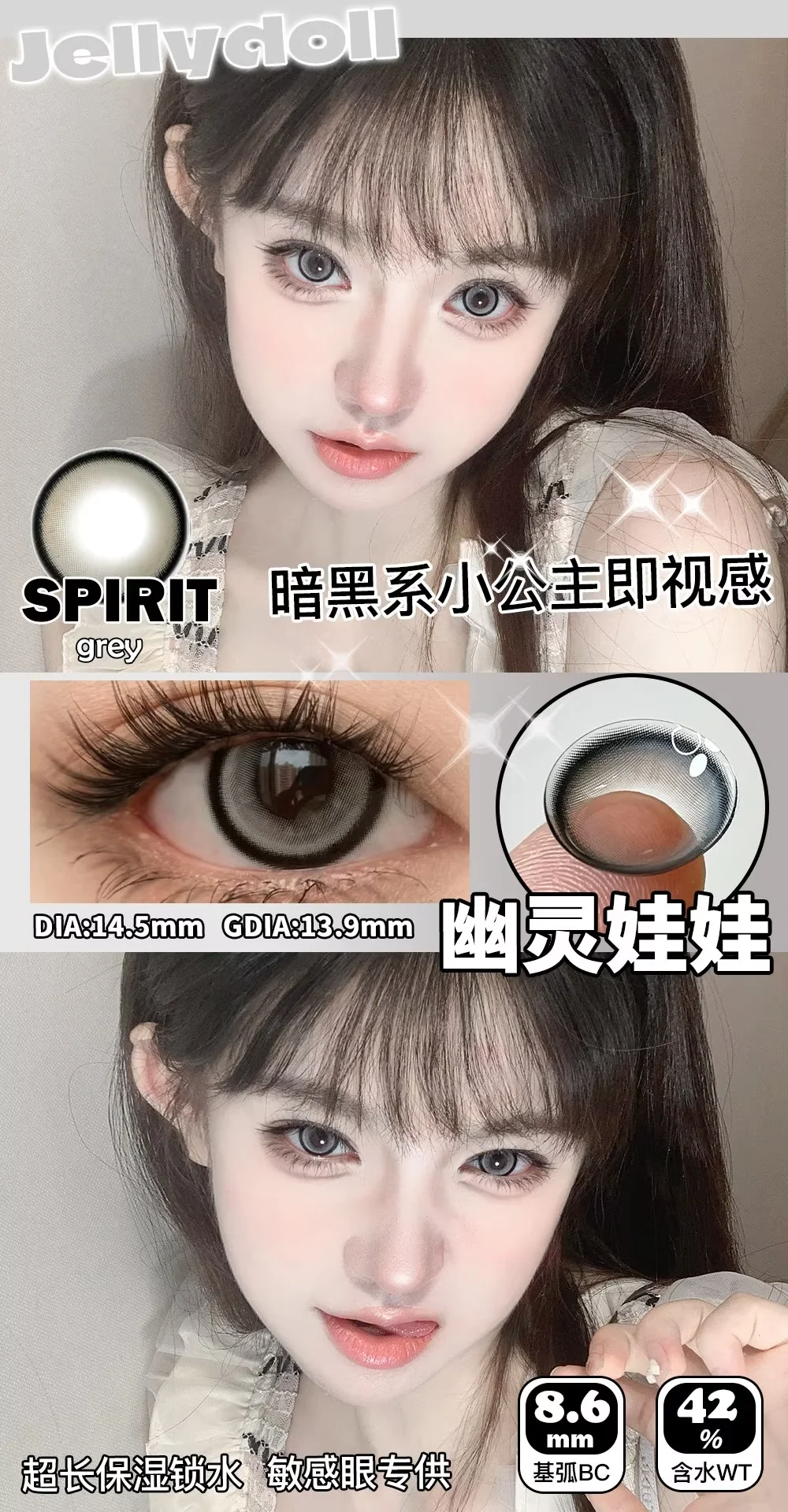Jellydoll 月抛 幽灵娃娃/水晶娃娃 14.5mm 灰/蓝 拍下即为一副两片