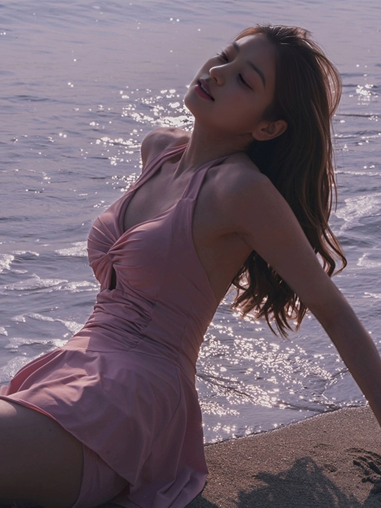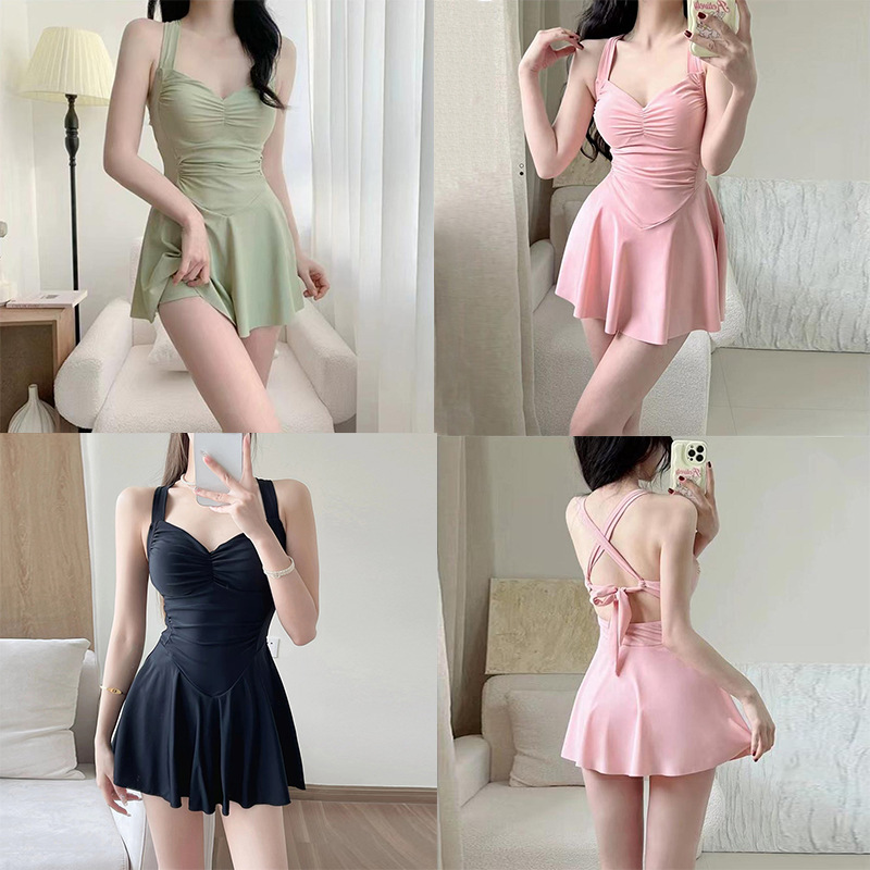 【显瘦修身连体泳衣,露背设计小清新~】连体泳衣女款 吊带露背小清新碎花泳衣 法式显瘦修身泳衣温泉-QQ