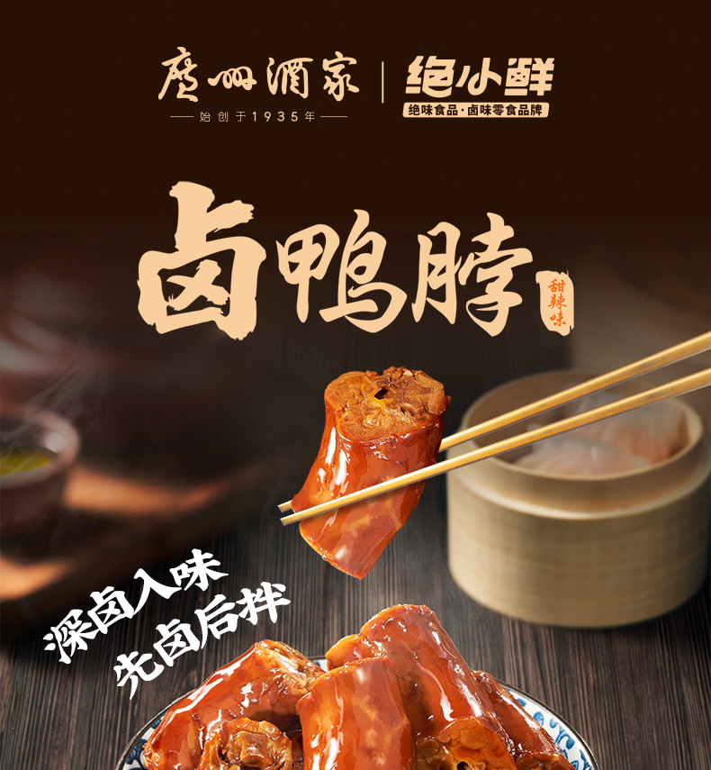 广州酒家 卤鸭脖子鸭锁骨鸭翅根甜辣卤味办公室即食零食解馋小吃