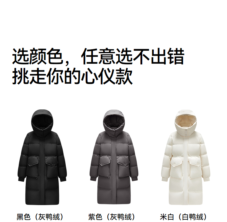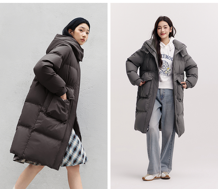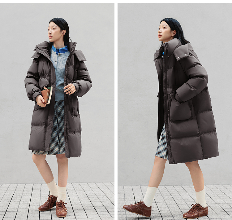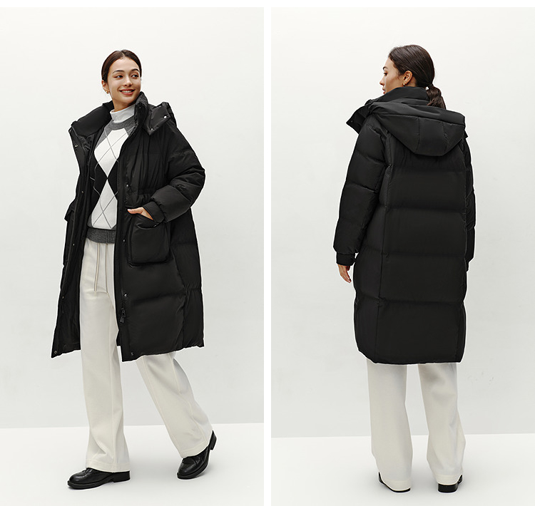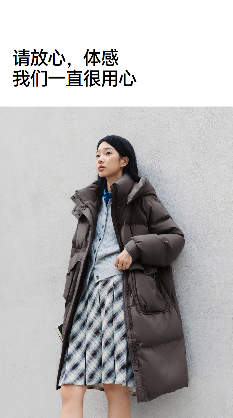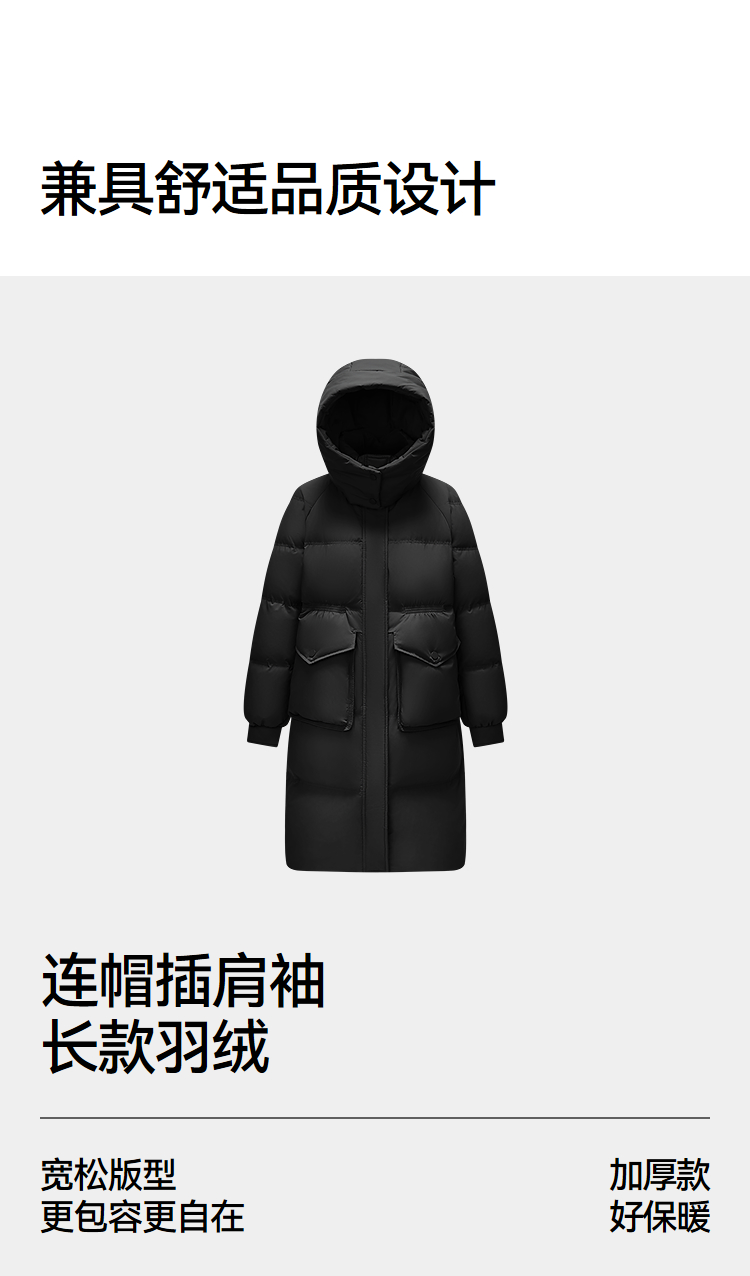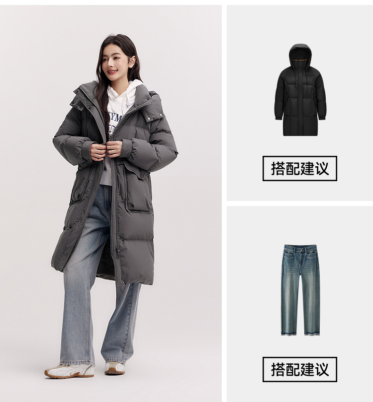 森马羽绒服女冬季长款80绒子纯色连帽宽松插肩袖加厚保暖百搭外套