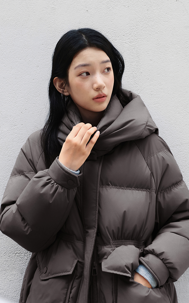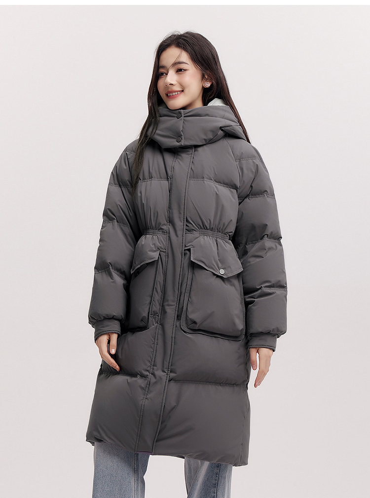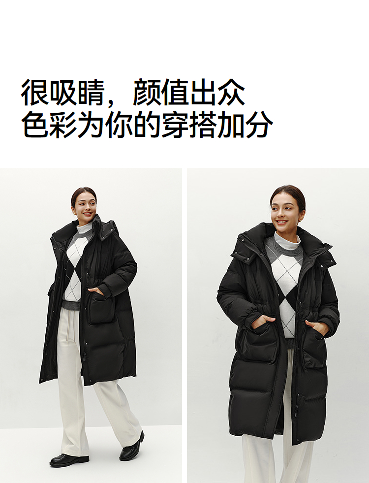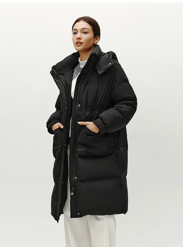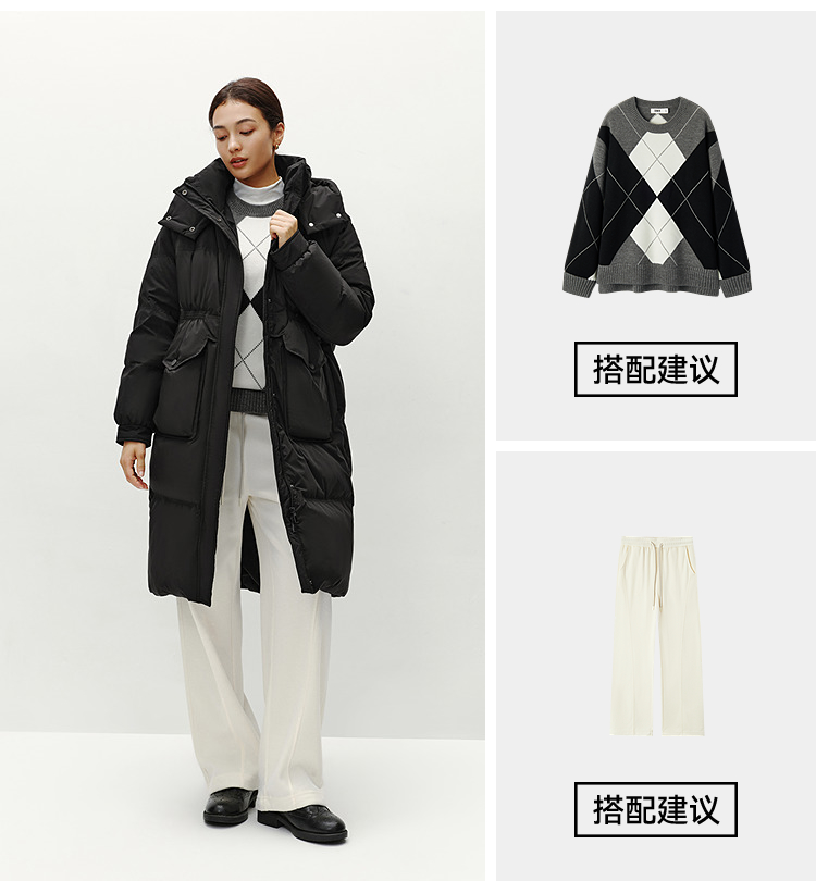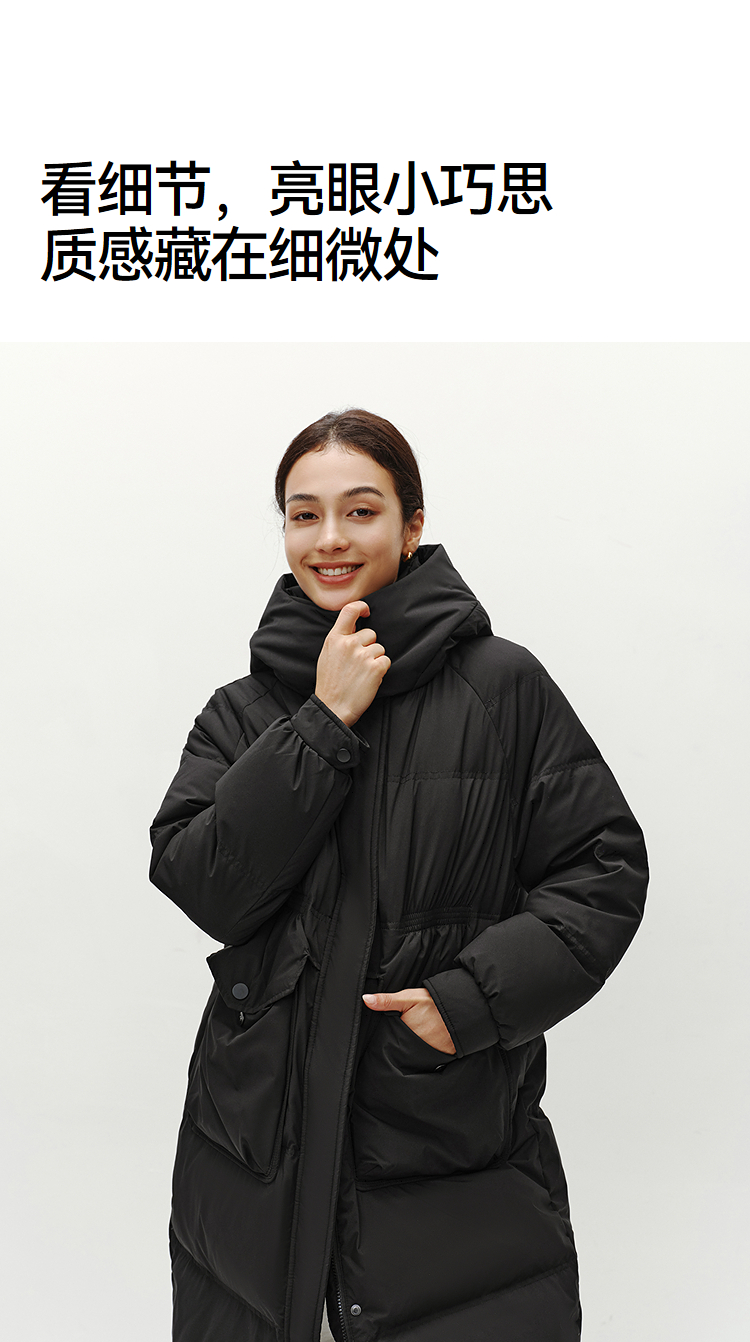 森马羽绒服女冬季长款80绒子纯色连帽宽松插肩袖加厚保暖百搭外套