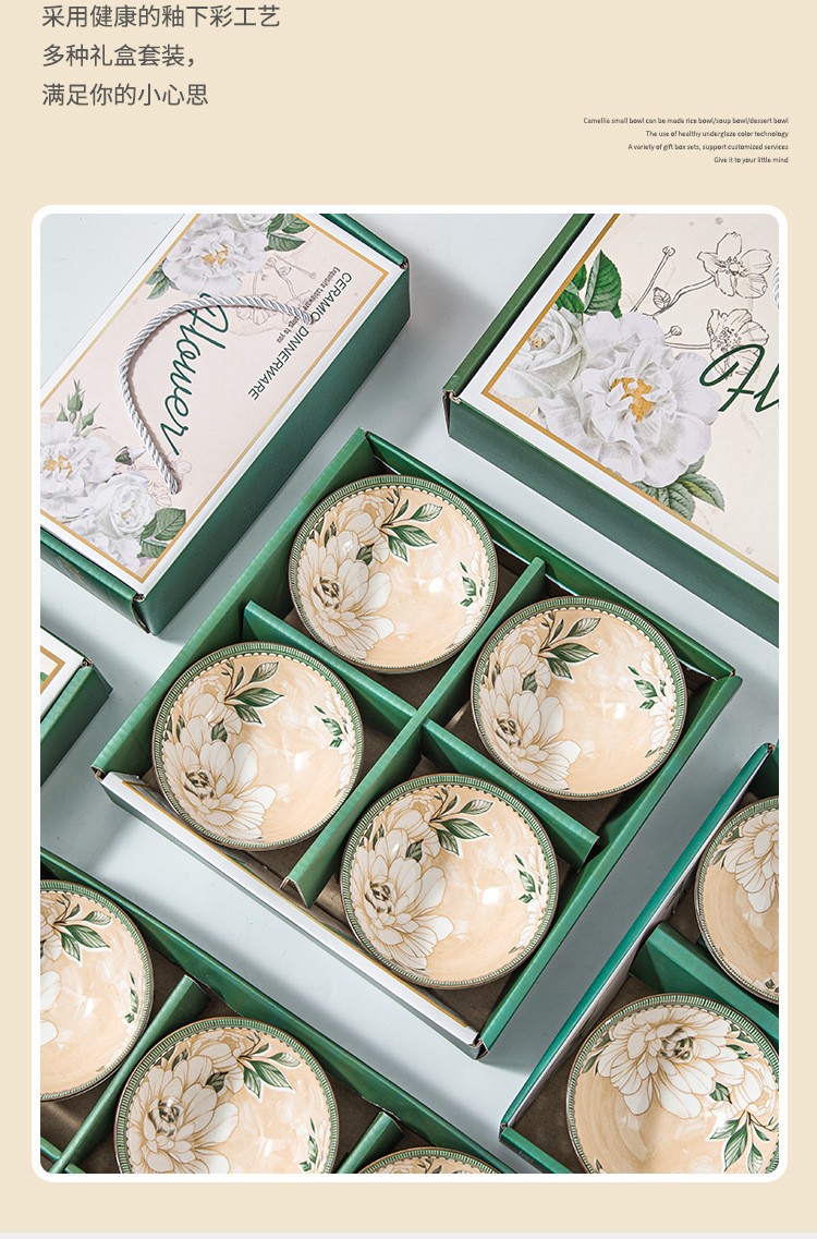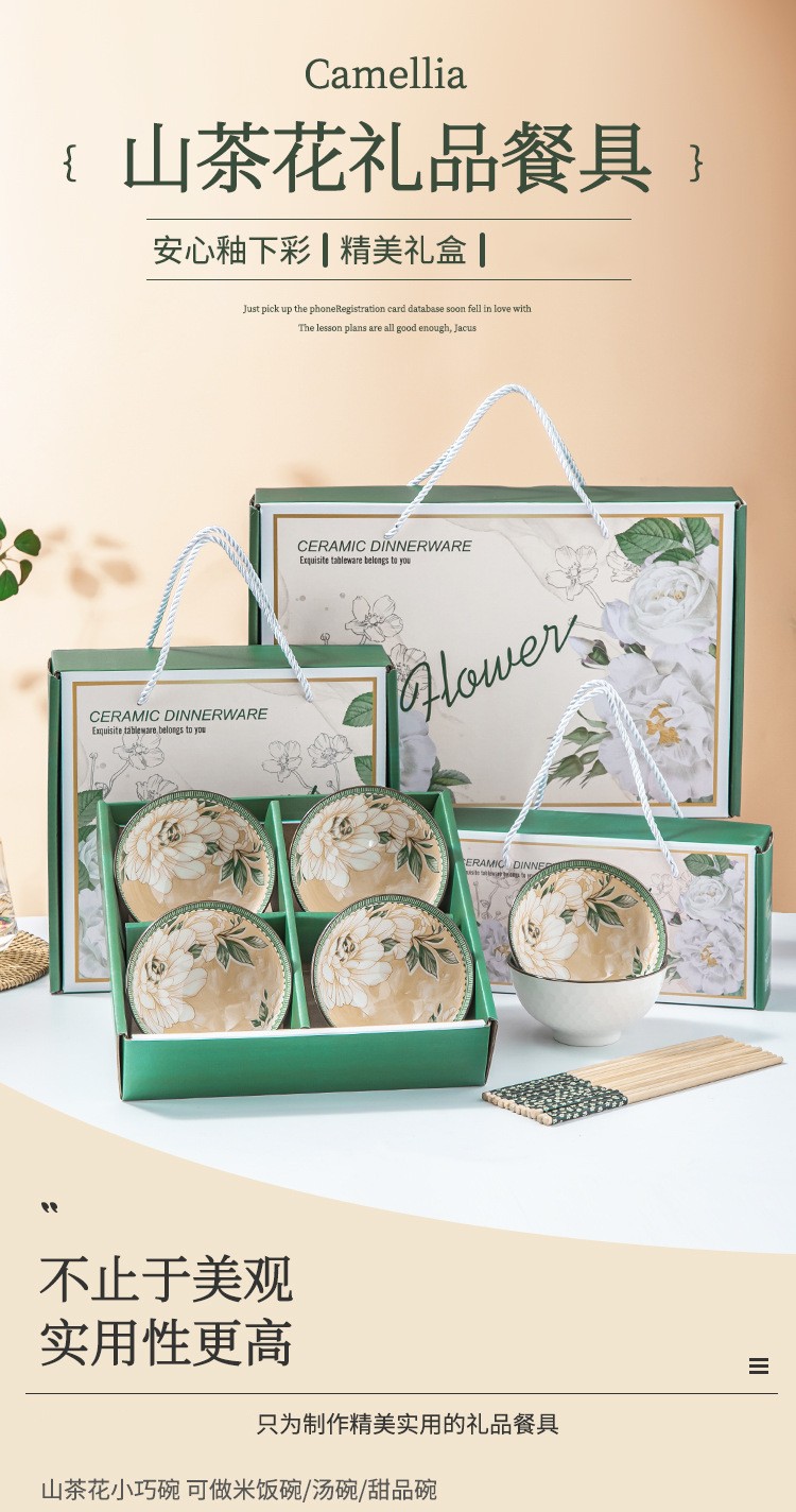 【生活中的仪式感❗️网红山茶花陶瓷餐具】清雅复古,釉下彩工艺不褪色,不止于美观实用性更高,碗筷套装礼盒装,享受慢生活粉丝专属七夕伴手礼新年礼盒年货礼盒