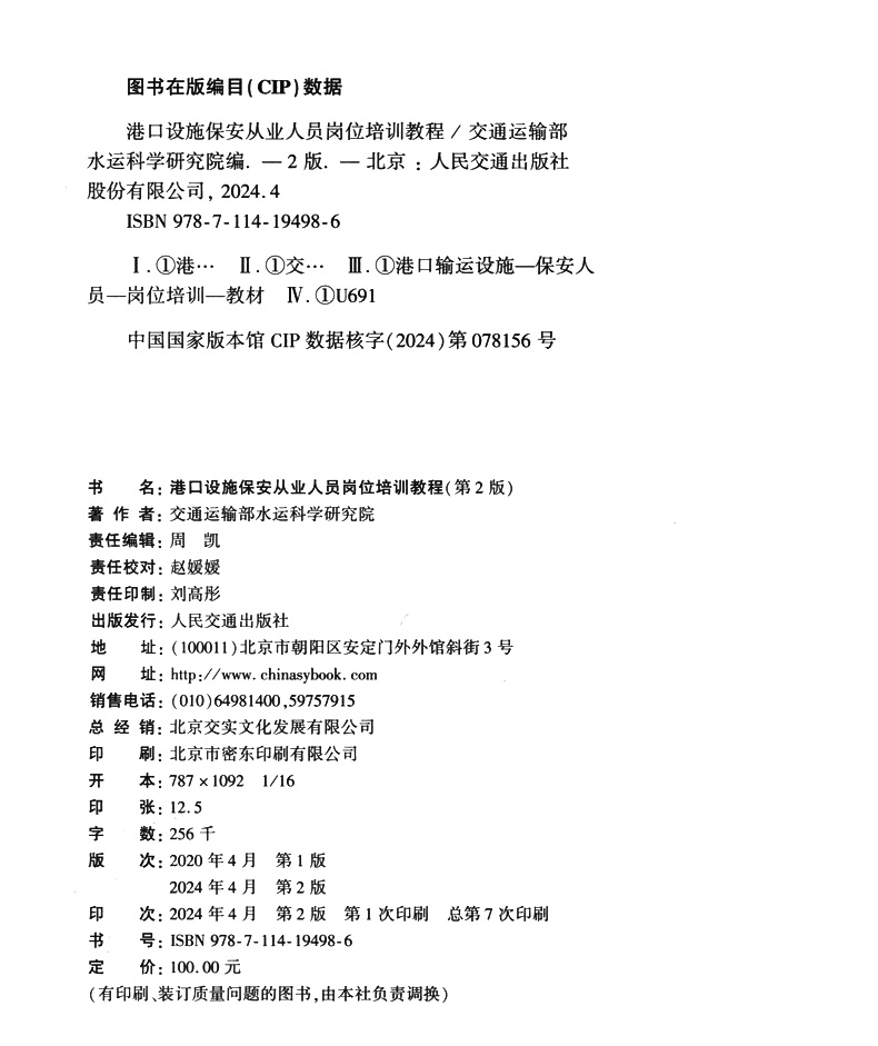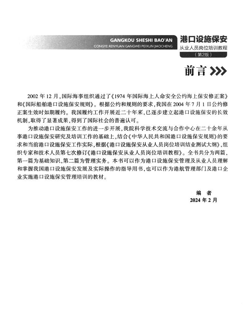 书名:港口设施保安从业人员岗位培训教程(第2版)