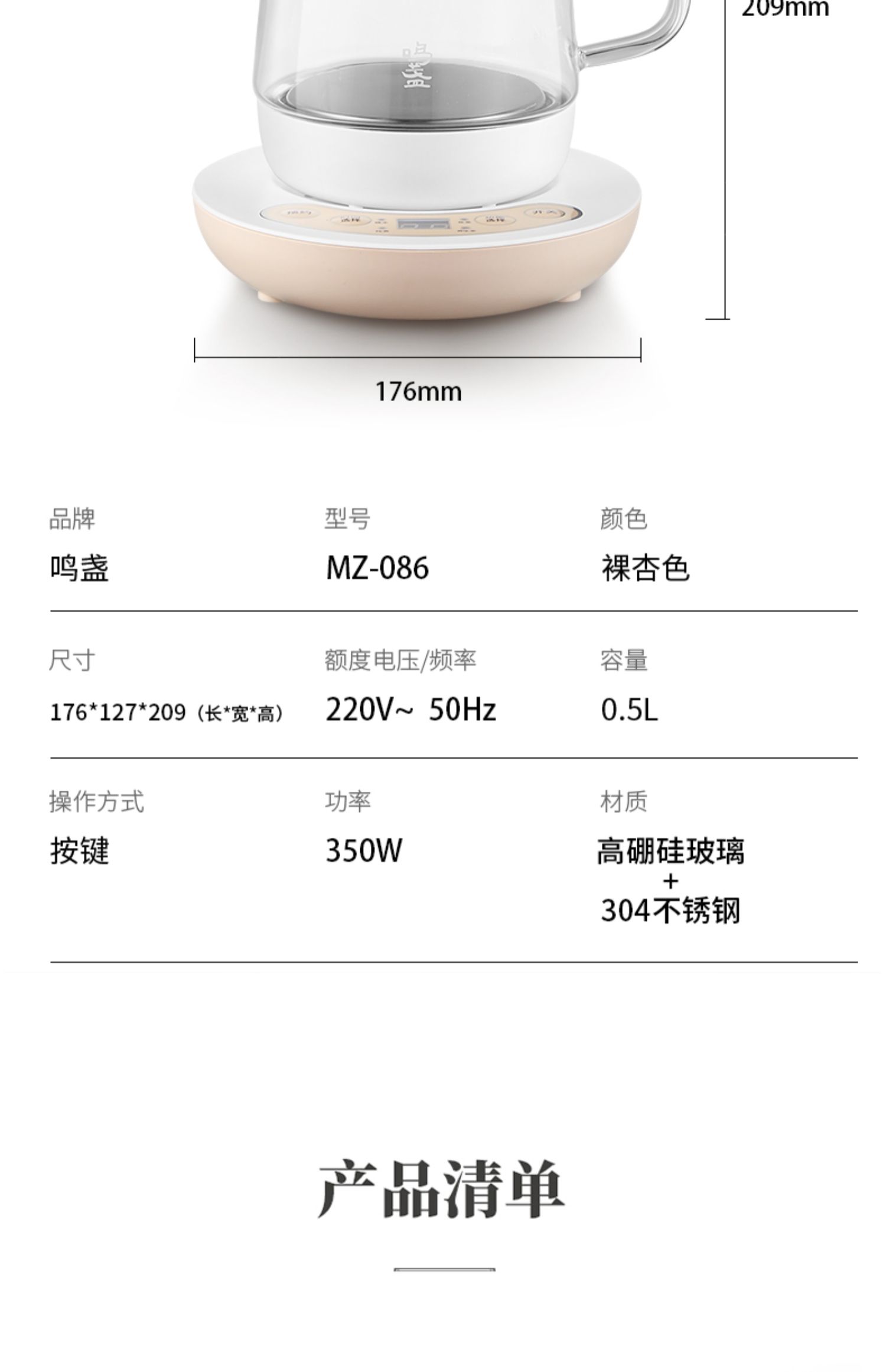 鸣盏迷你养生壶MZ-086【伊藤优选301692】