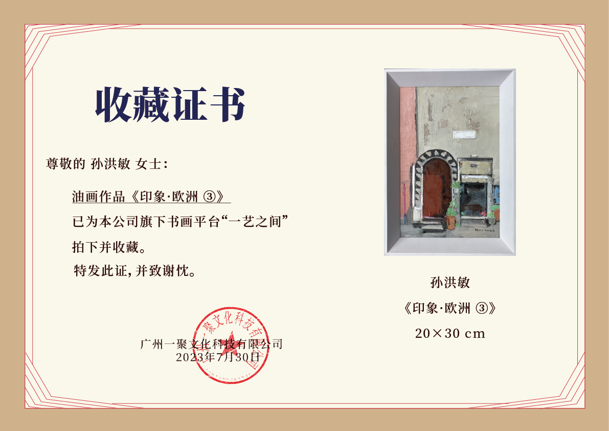 孙洪敏《印象-欧洲3》油画 20CMx30CM 约0.54平尺(已装框)【原作编号YH0013】