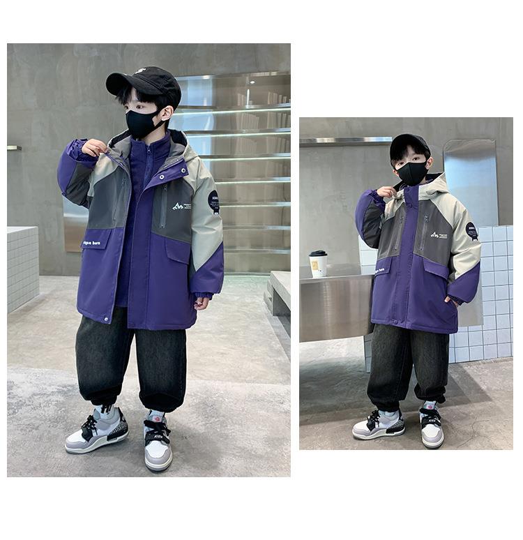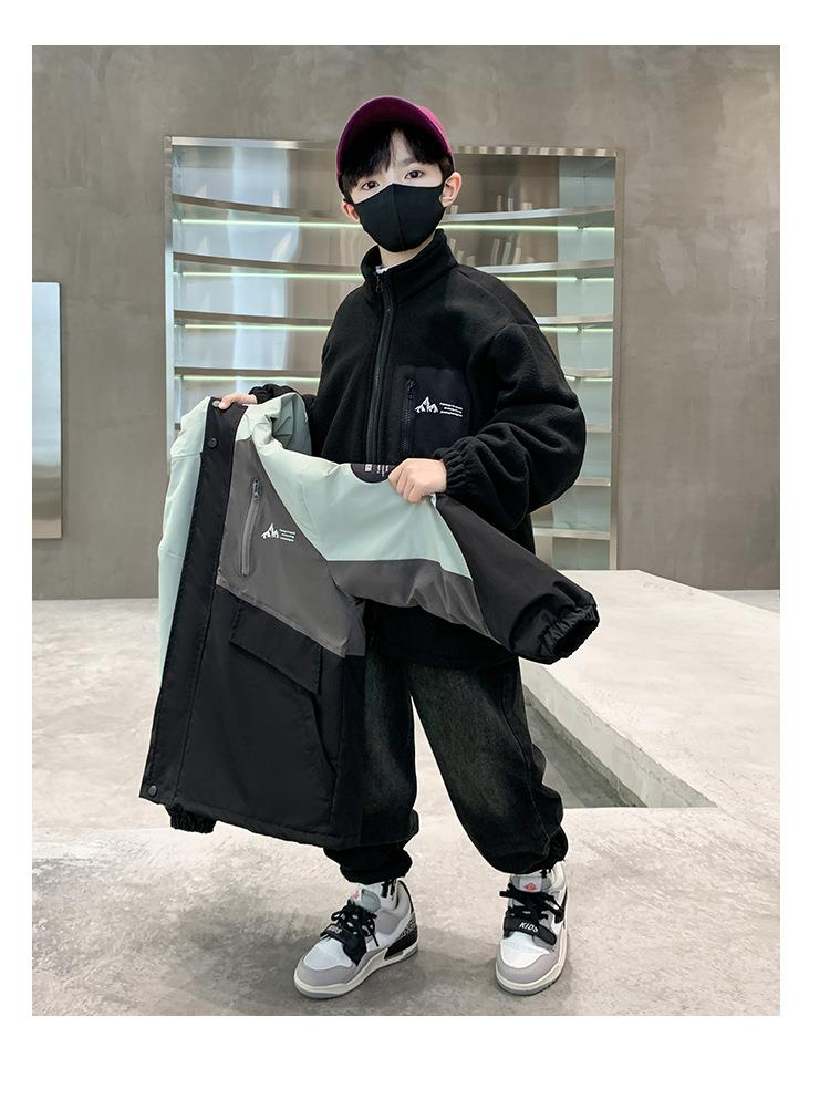 男童冲锋衣三合一可拆卸2025新款中大儿童装秋冬夹棉加厚男孩外套
