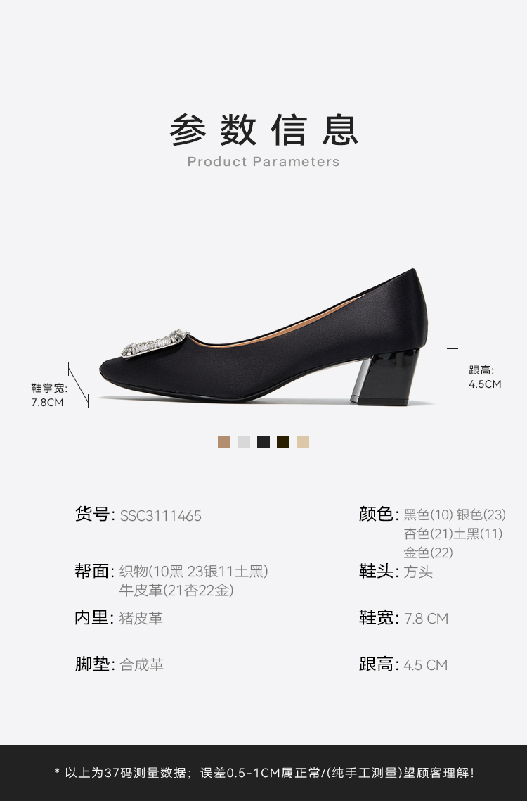 星期六经典方头钻扣粗跟单鞋SSC3111465