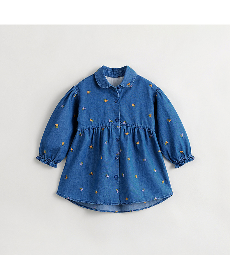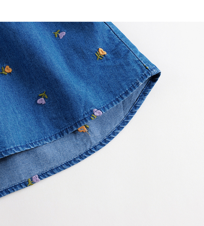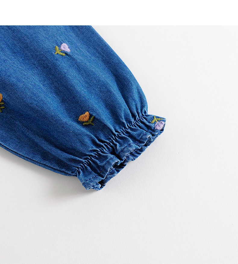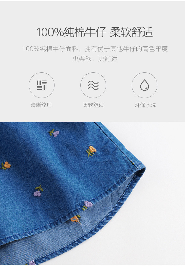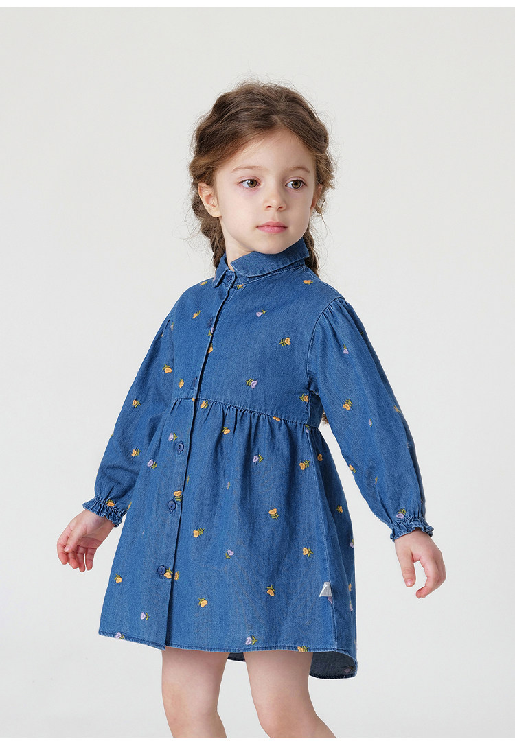 马克珍妮秋装新款 女童满底绣花裙子 儿童纯棉牛仔连衣裙 231709