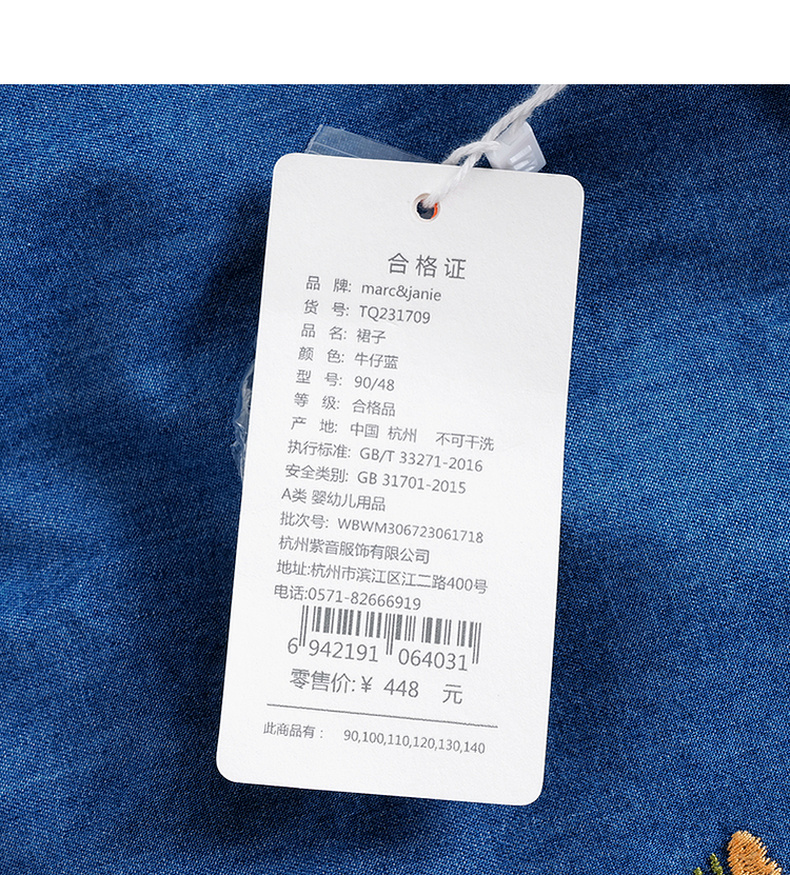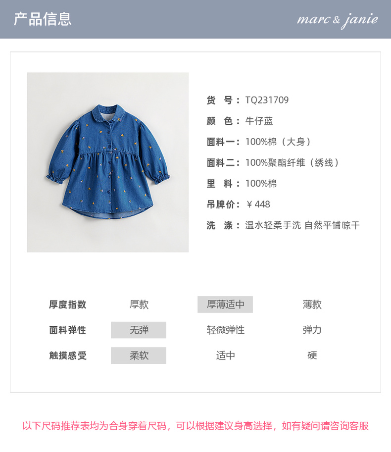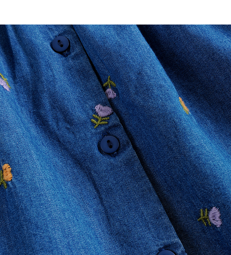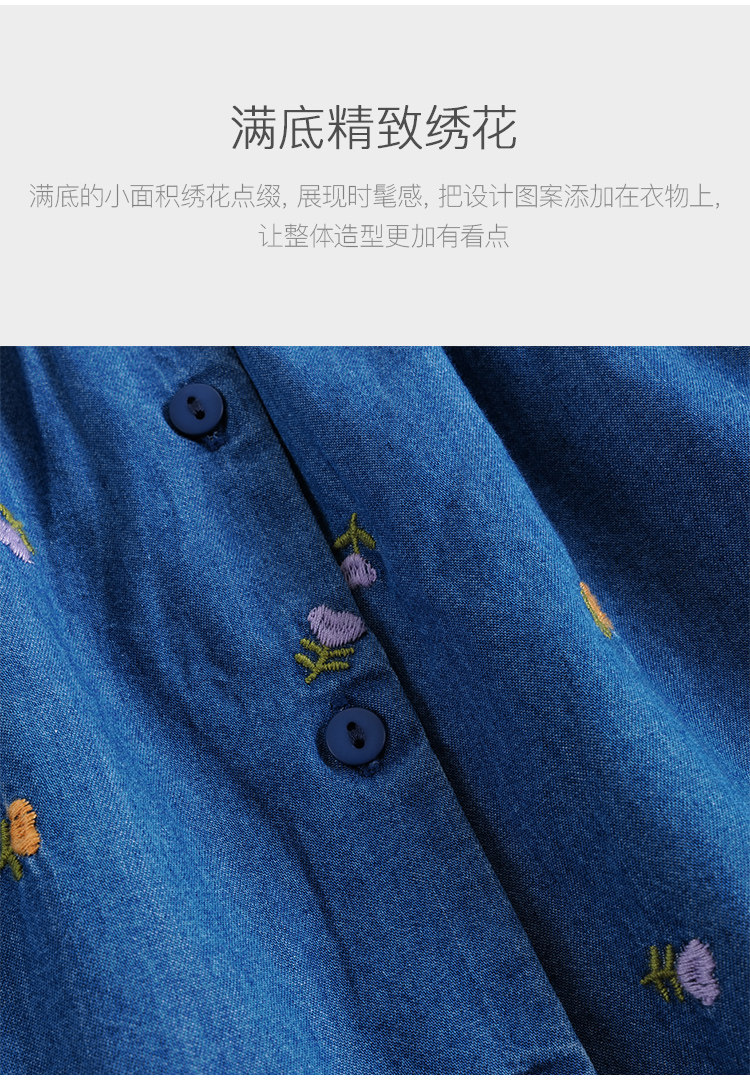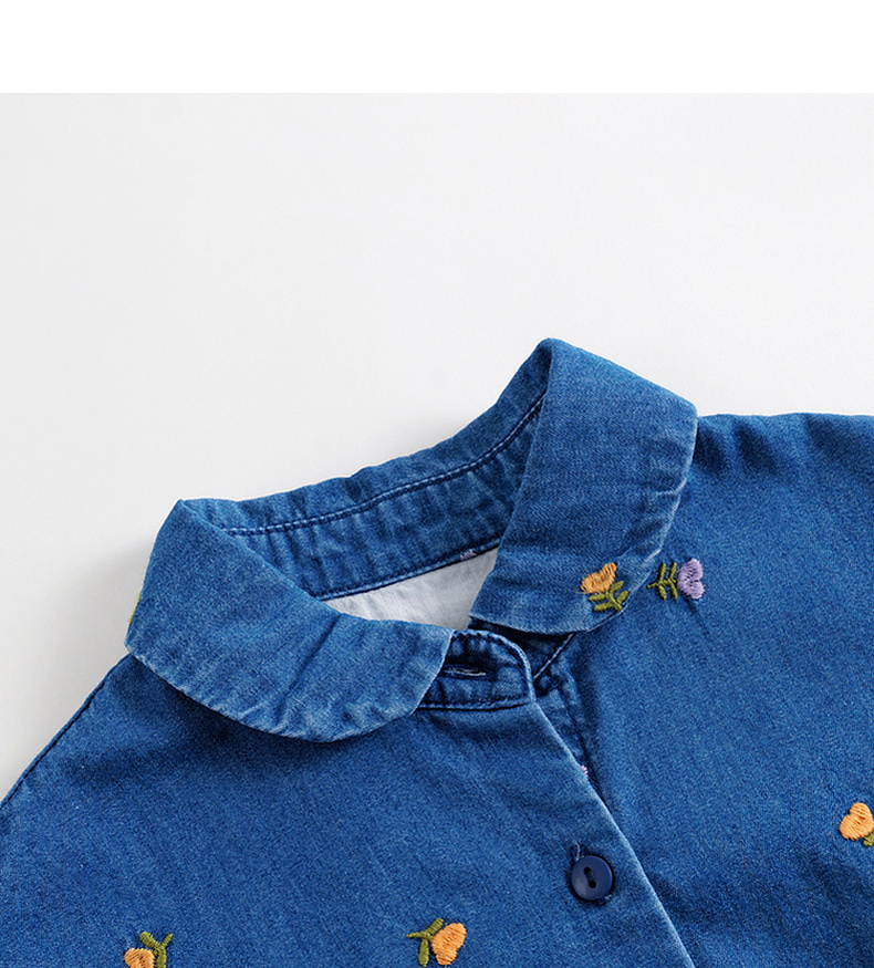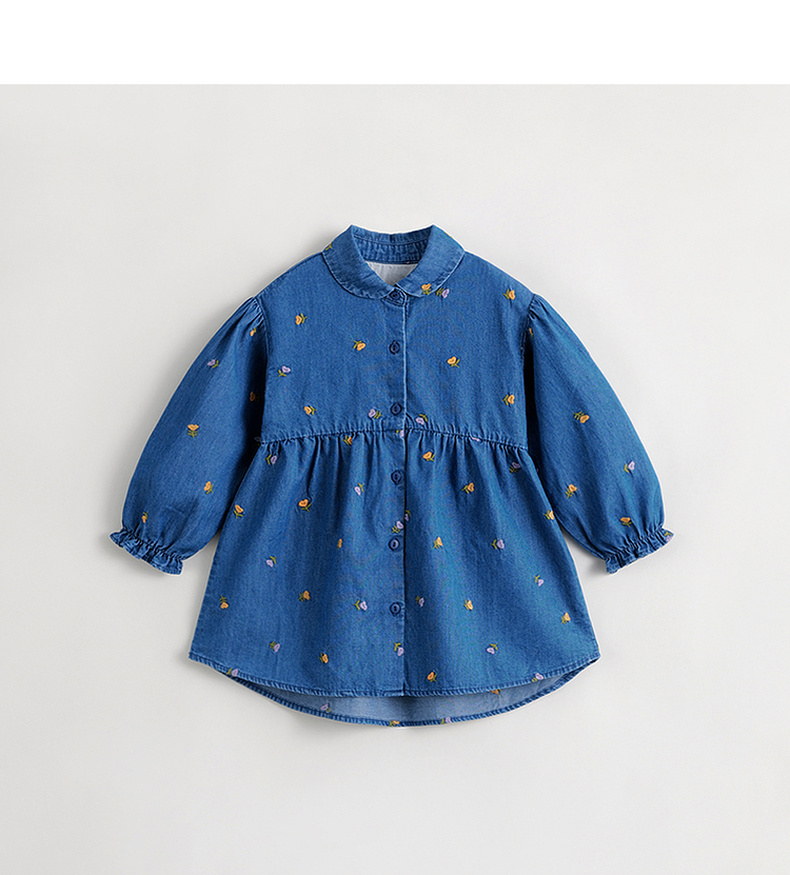 马克珍妮秋装新款 女童满底绣花裙子 儿童纯棉牛仔连衣裙 231709